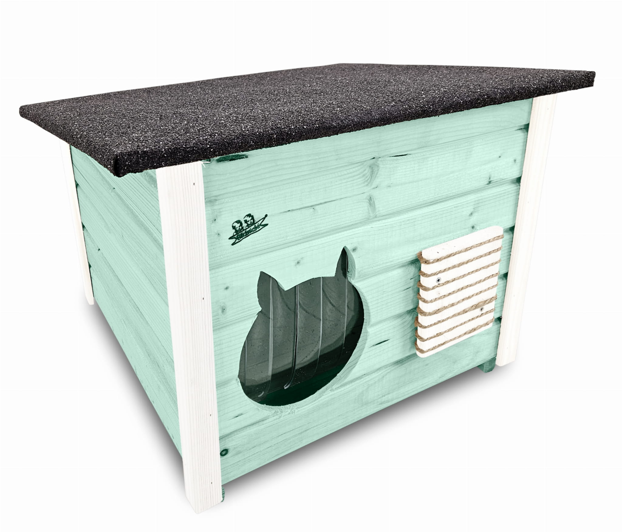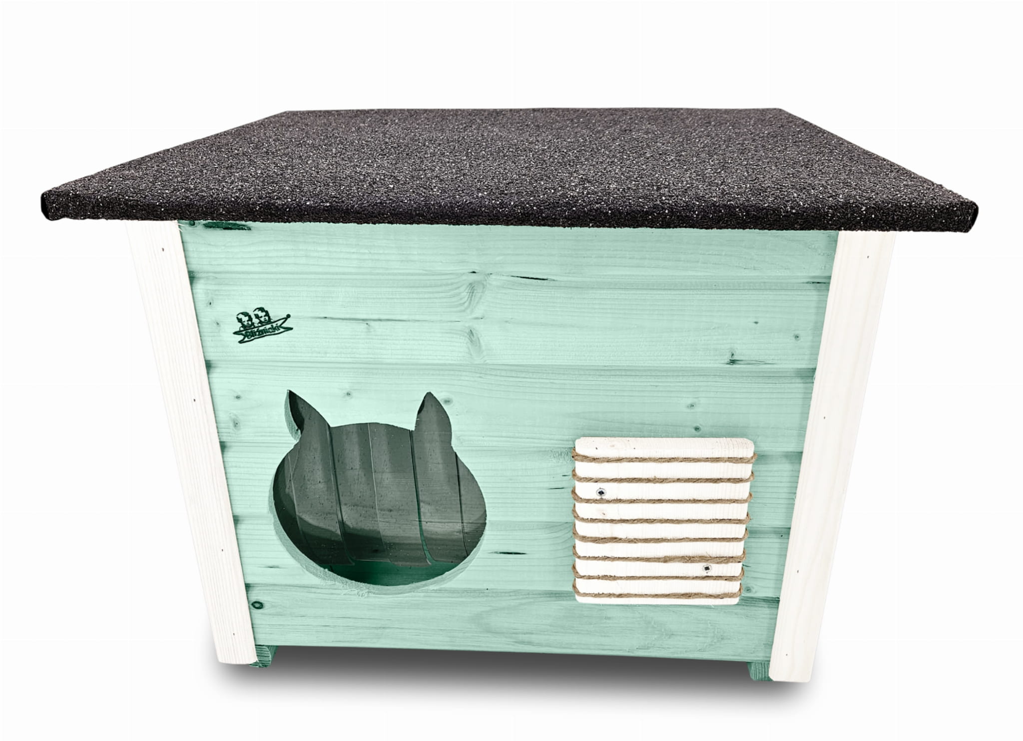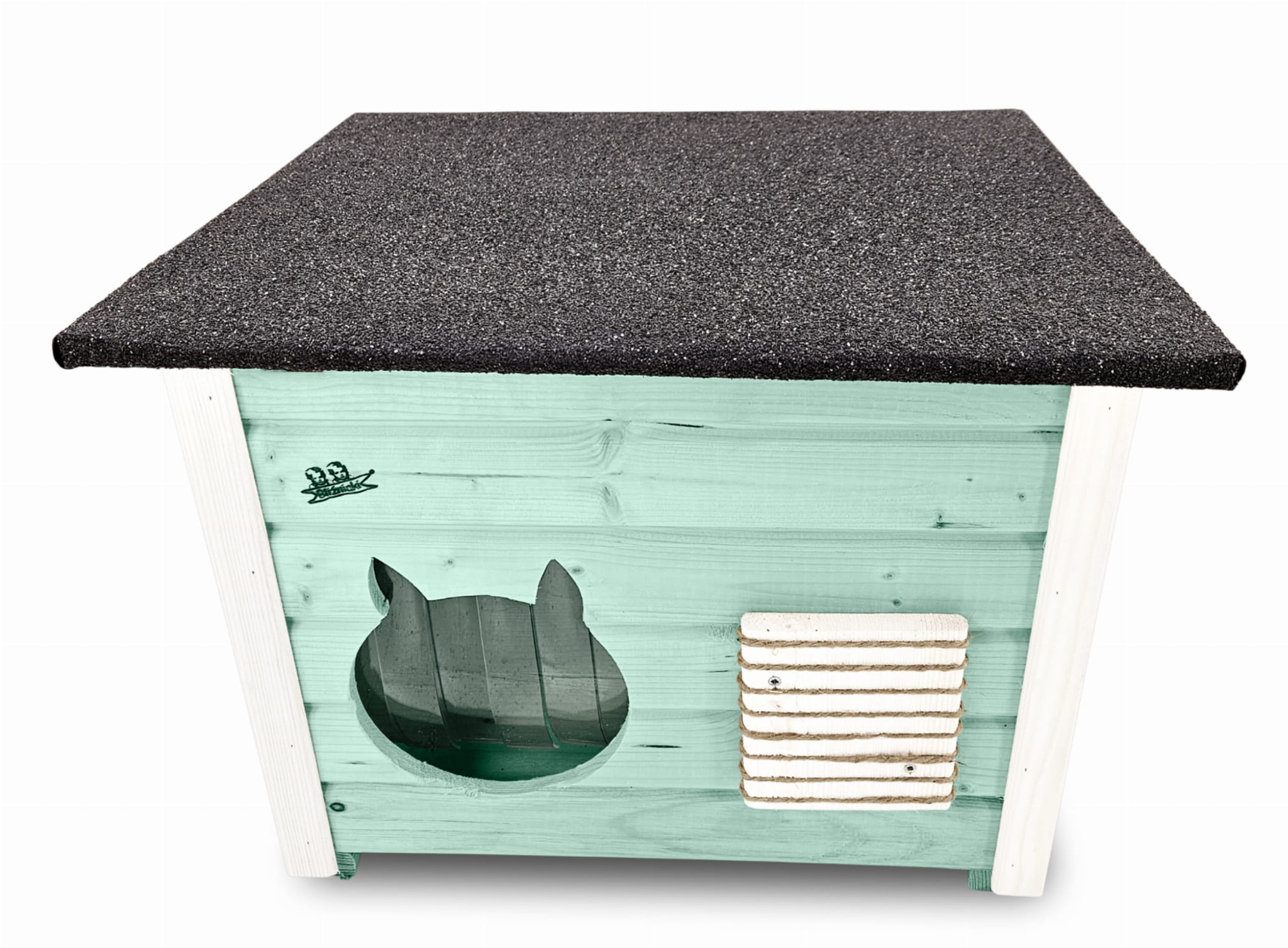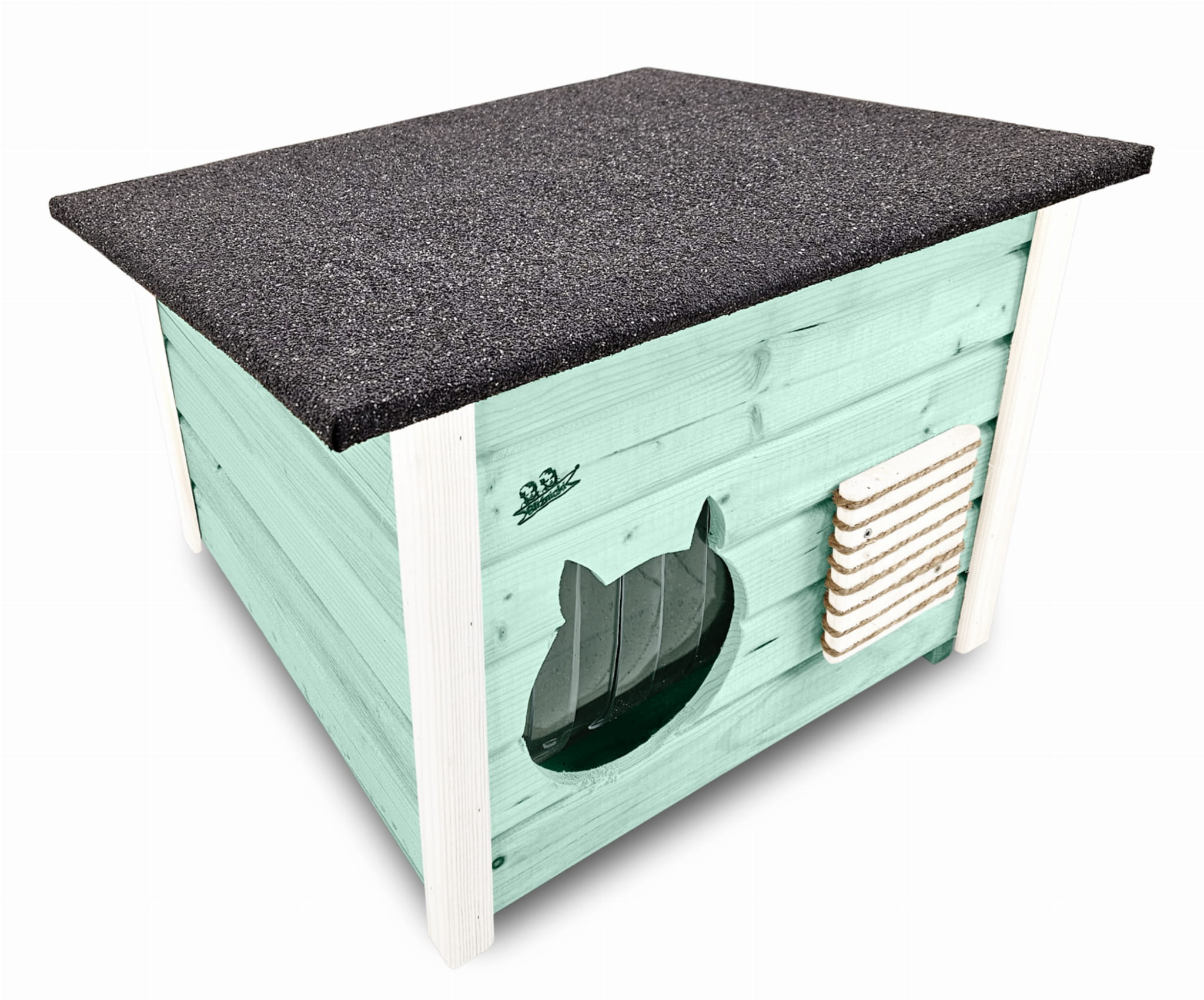 - Budka wyposażona została w drewnianą podłogę- zapewnia to jeszcze większą wygodę kotom i izolację od podłoża