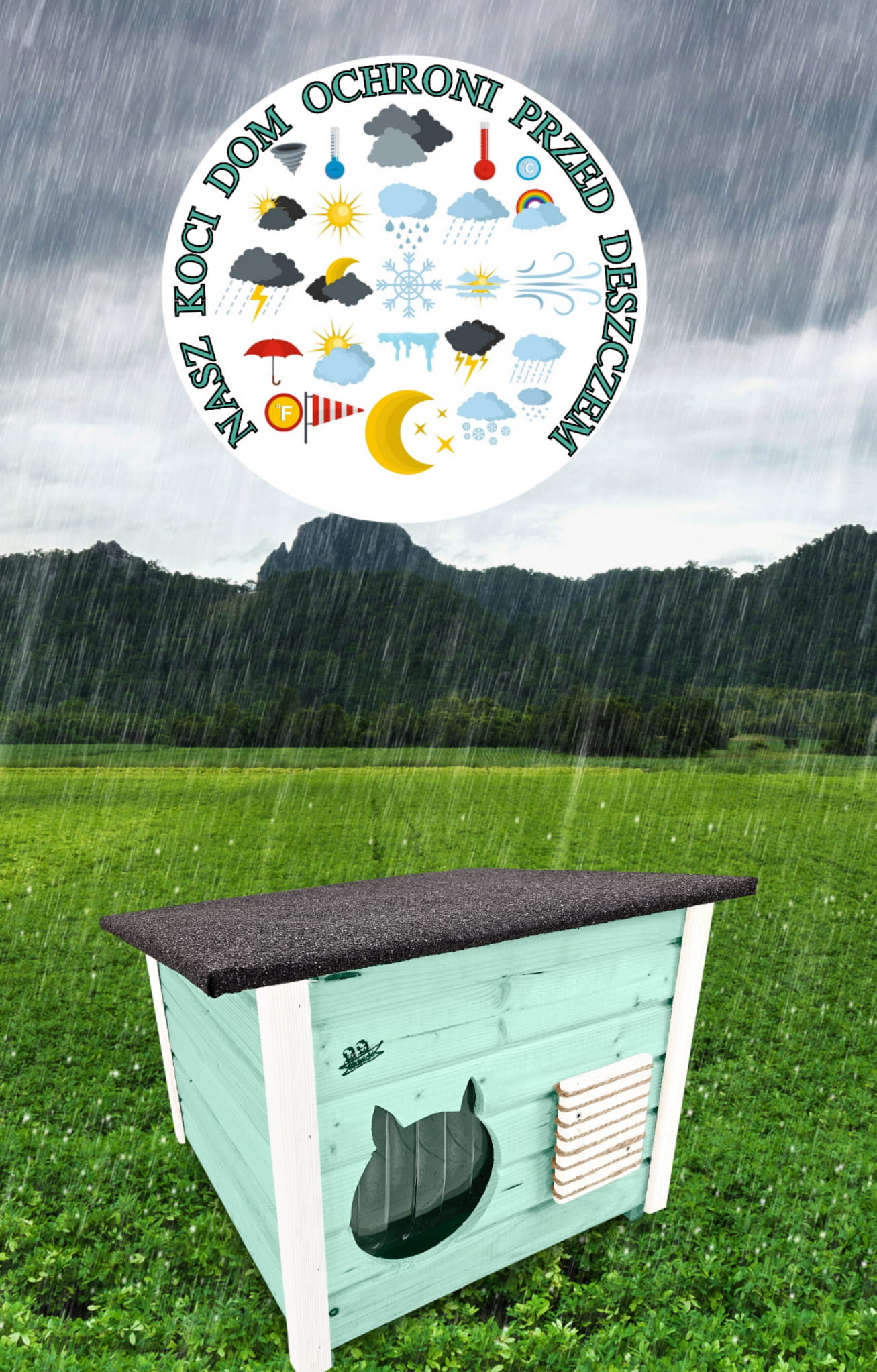 Produkt DOMEK DLA KOTA został zaimpregnowany środkiem na bazie wody, co czyni go dekoracyjnym a także przyjaznym dla przyrody.