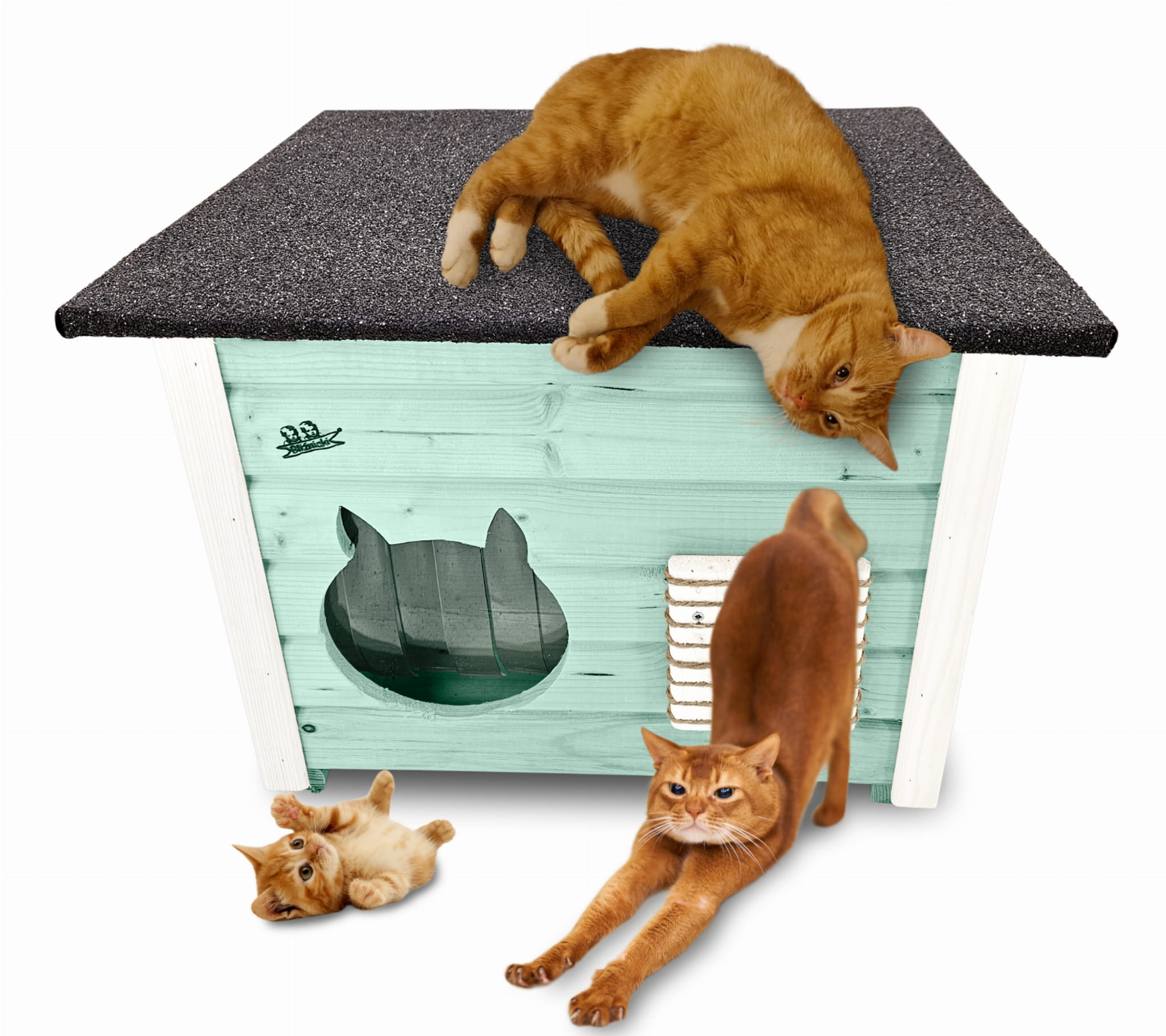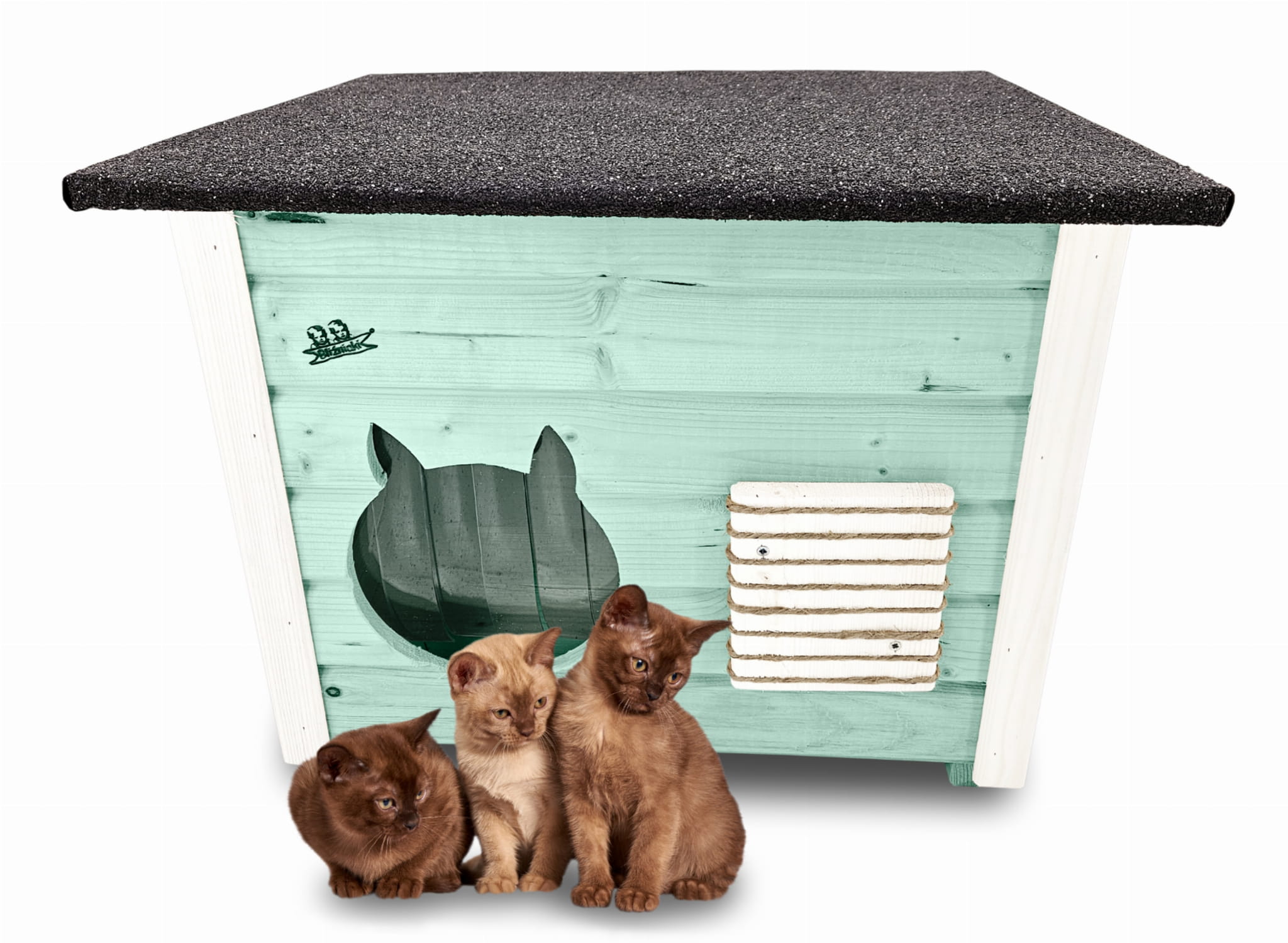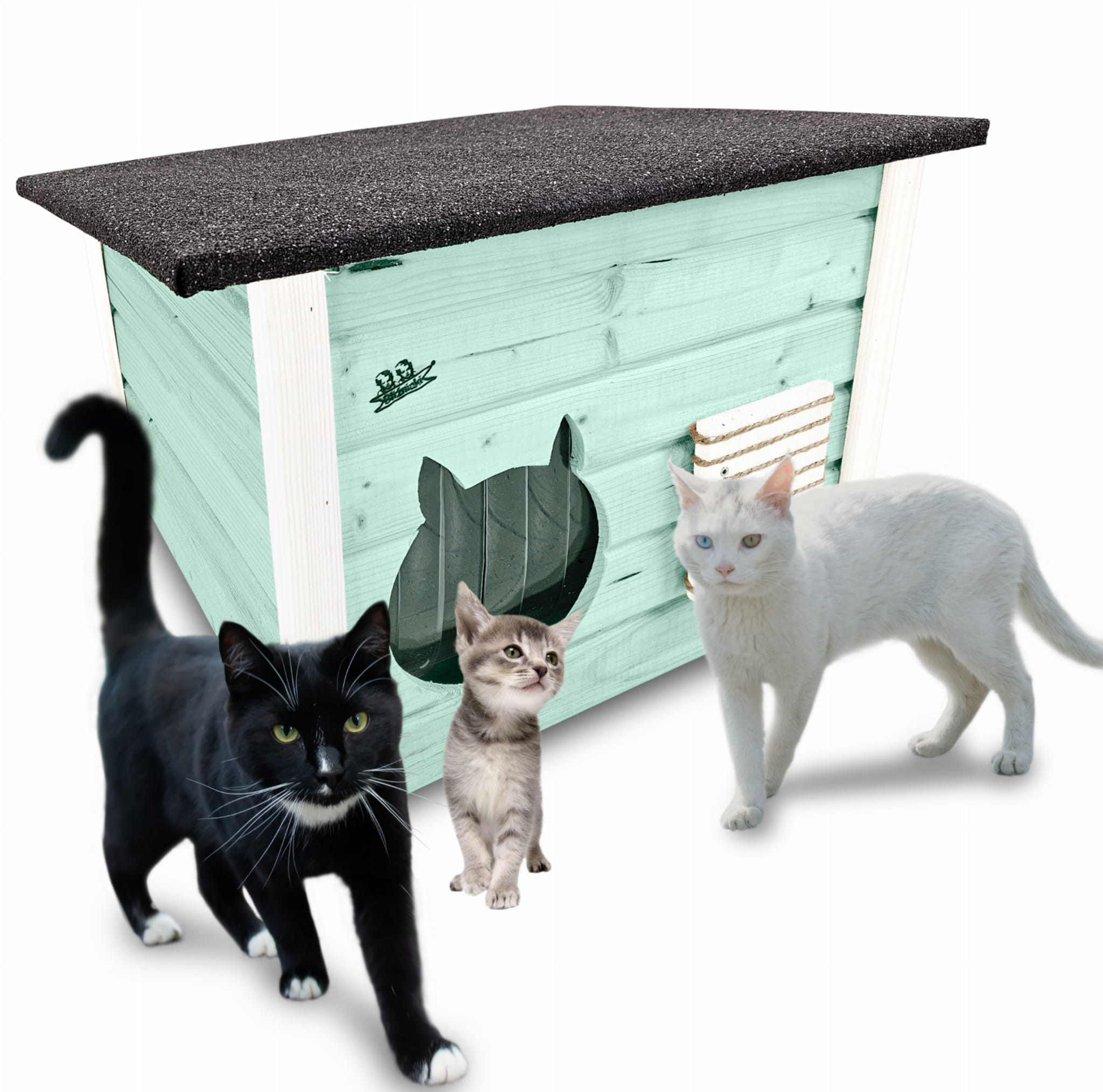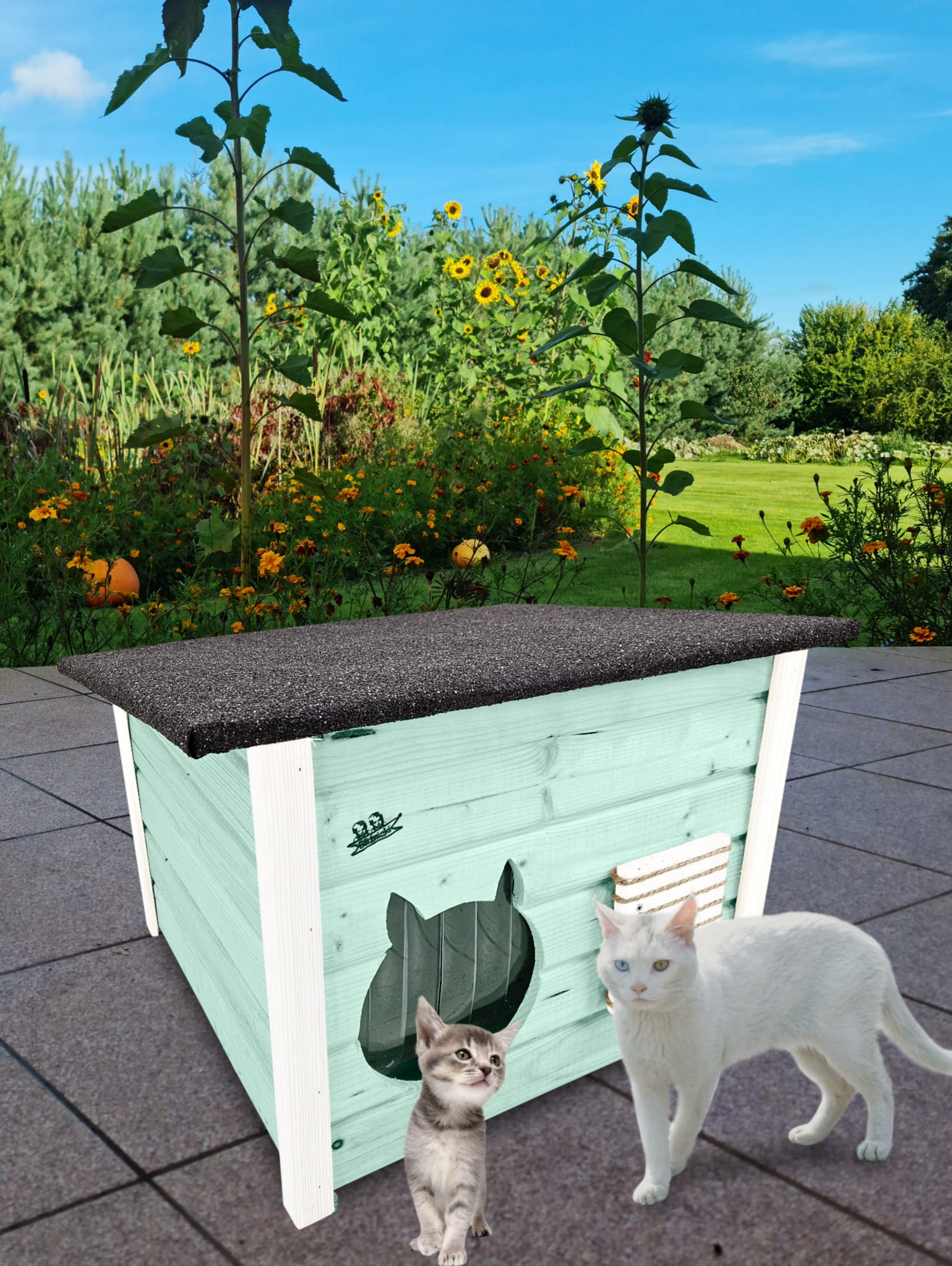 Domek zapewni kotom spokojne, komfortowe miejsce odpoczynku i schronienie przed zimnem oraz upałami.
