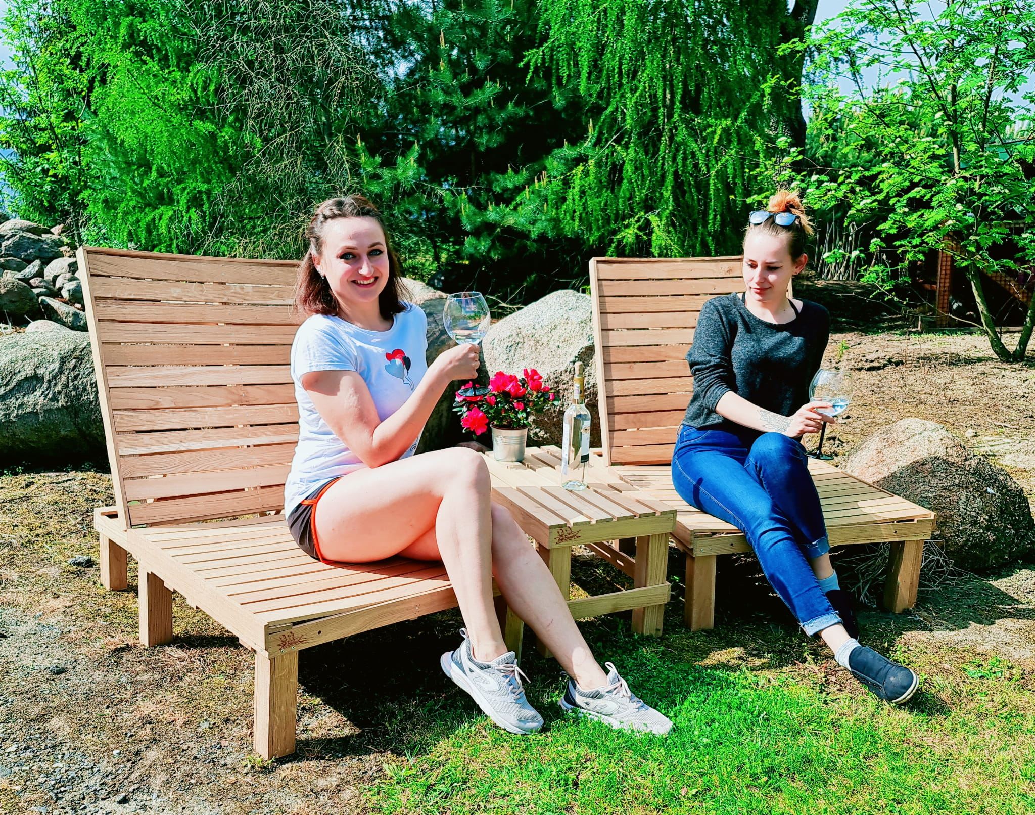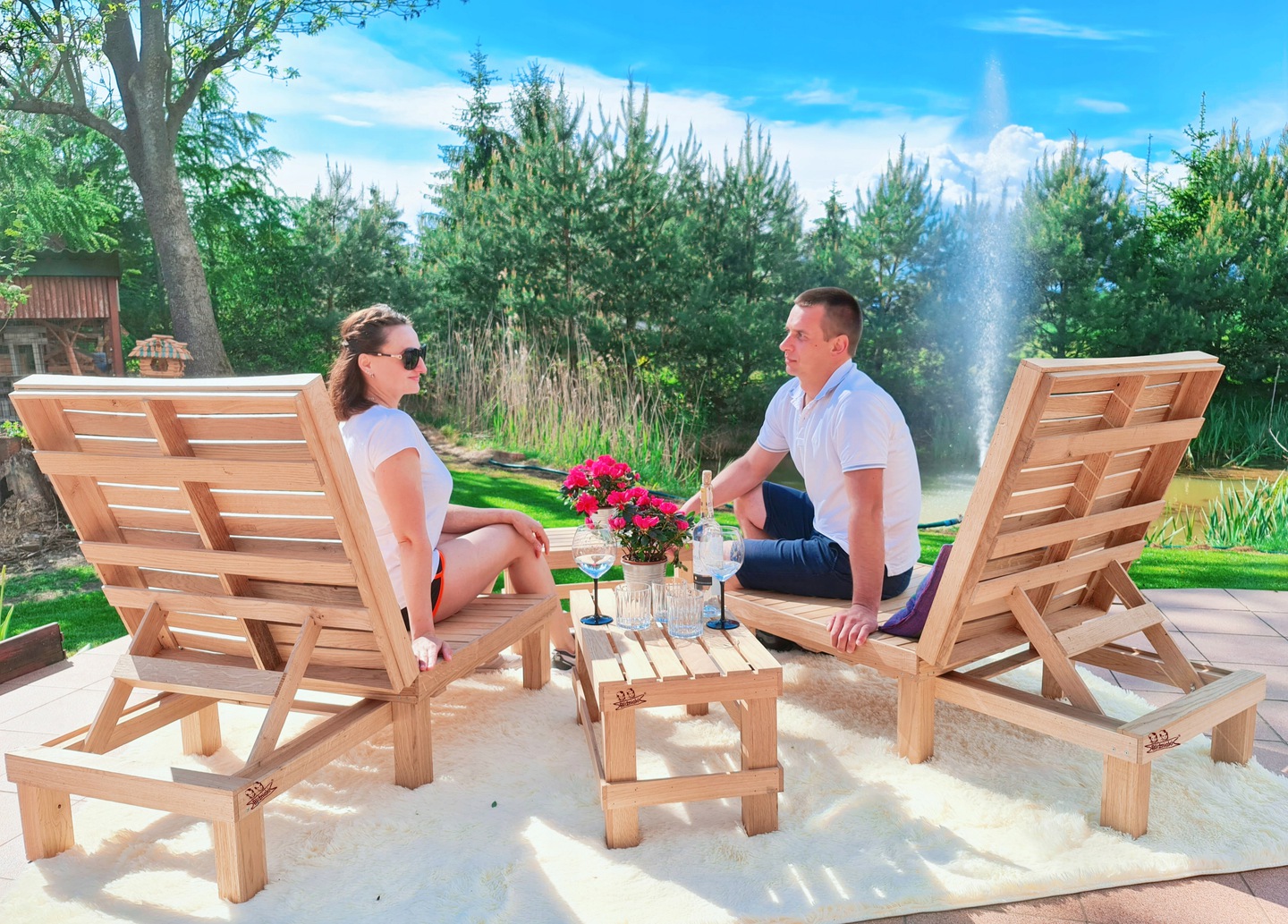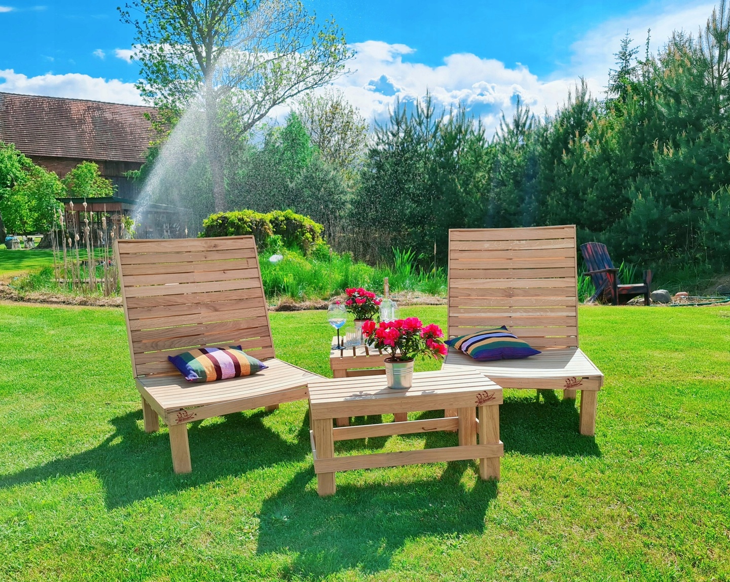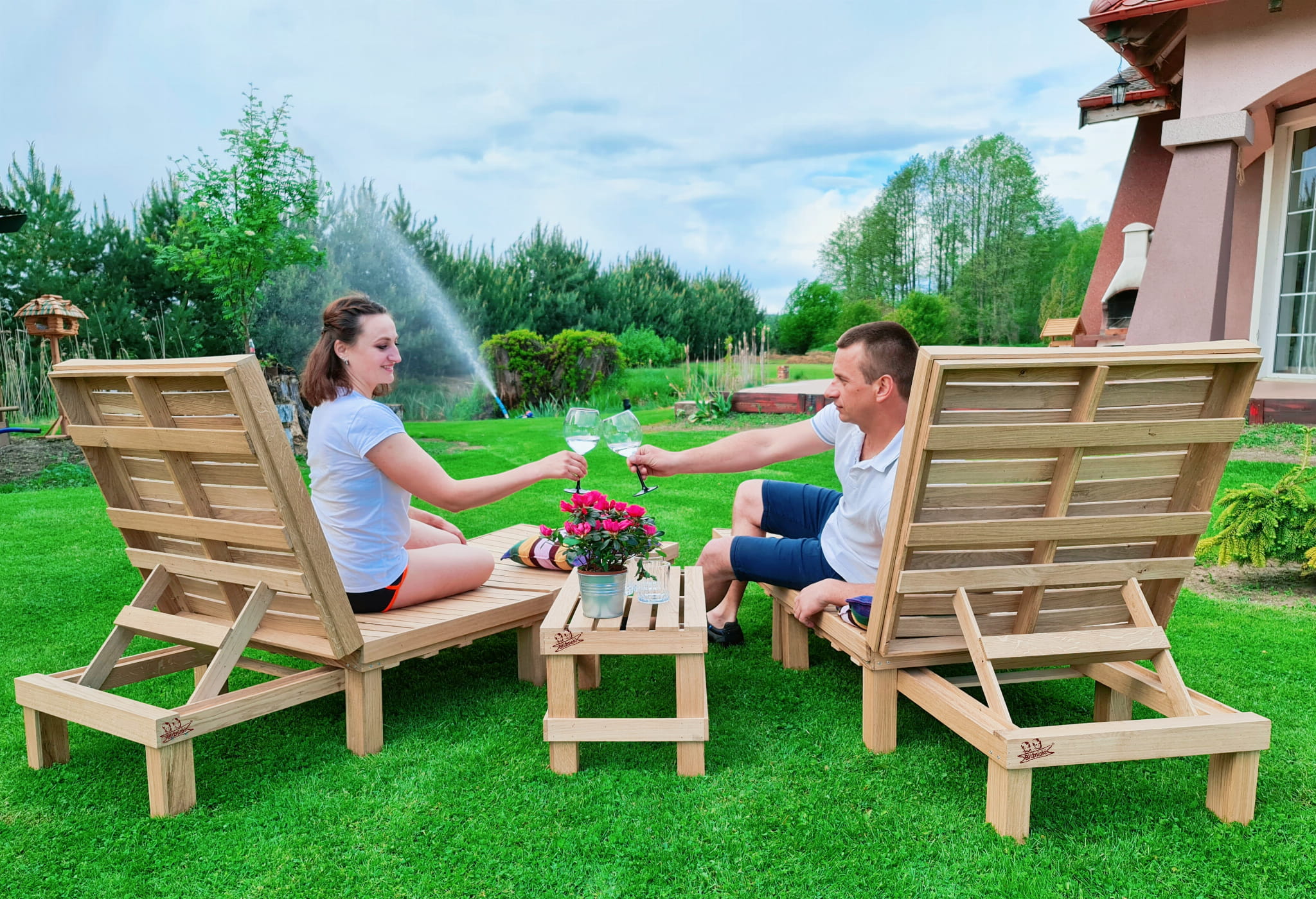 Nasz komplet został wykonany drewna iglastego. Dzięki zabezpieczeniu bezbarwnym impregnatem z dodatkiem wosku, fotel oraz stolik są odporne na szkodliwe działanie wody oraz wilgoci, promieni UV, a także grzybów i pleśni, mogą być więc przechowywane przez cały rok na zewnątrz.