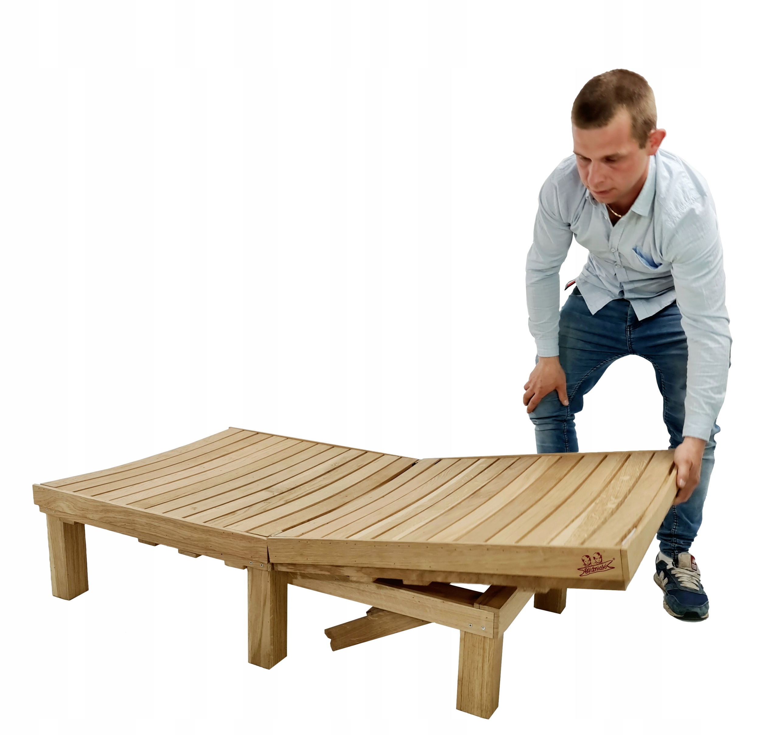 DREWNIANY STOLIK KAWOWY Z ROZKŁADANYM LEŻAKIEM W ZESTAWIE