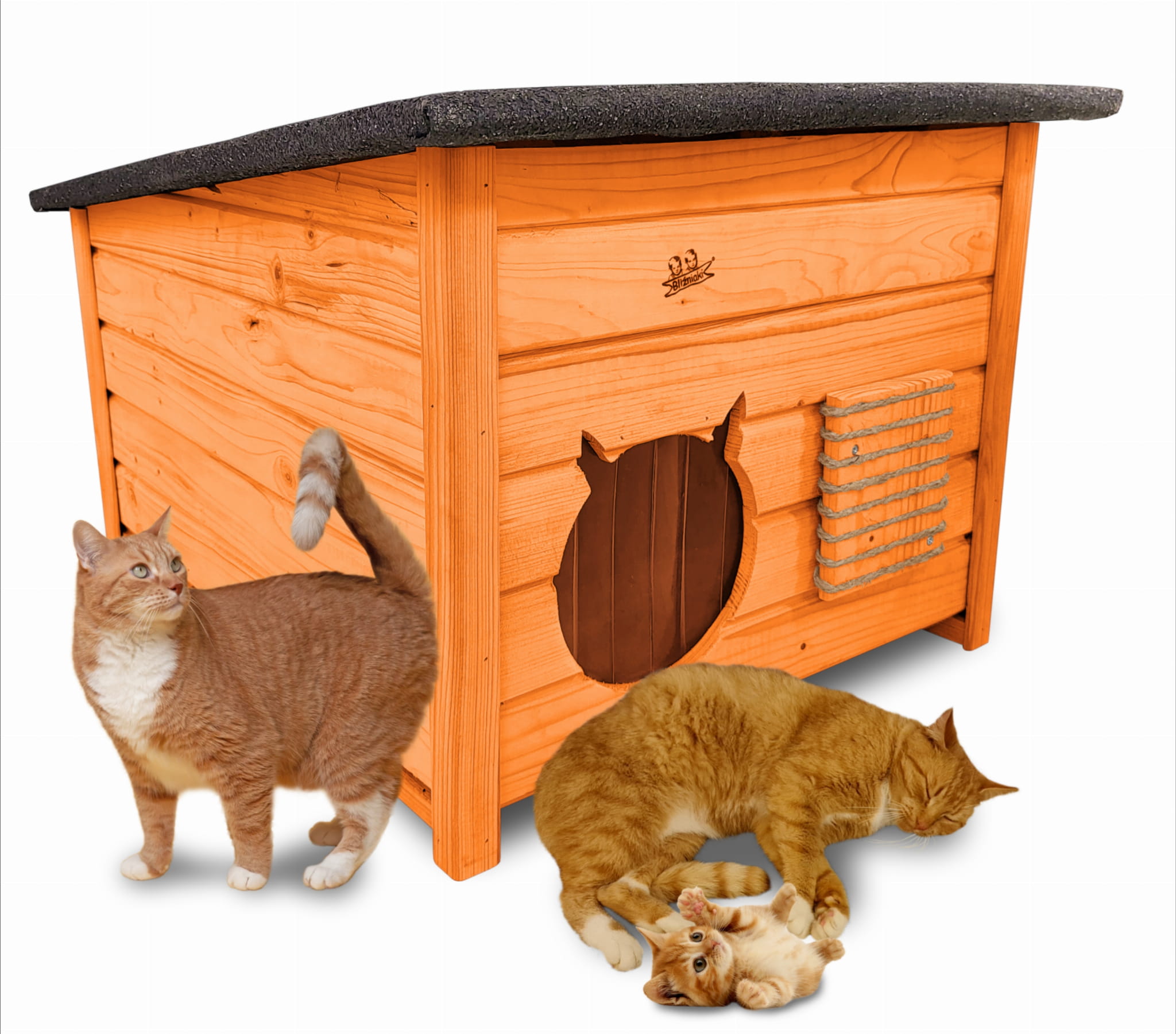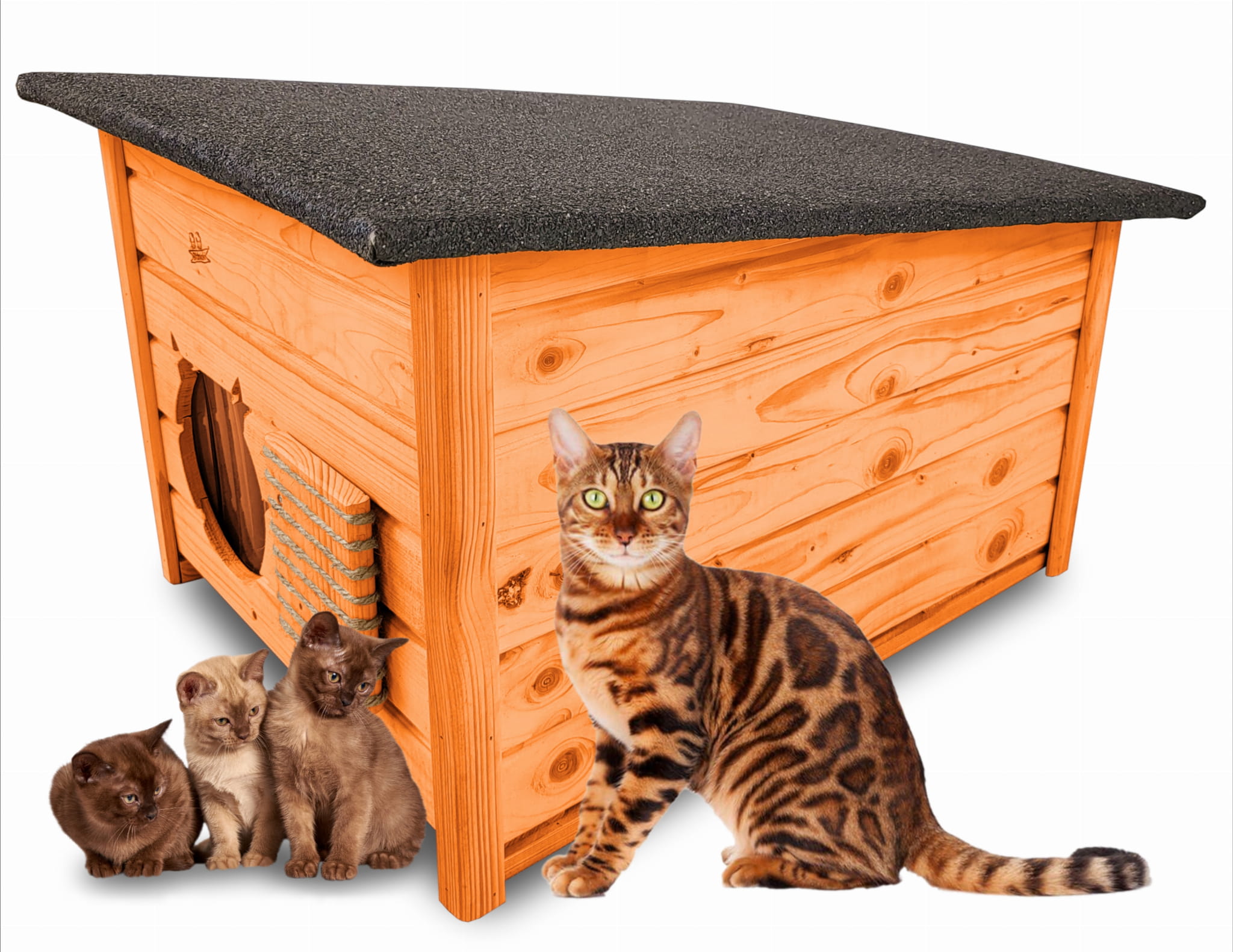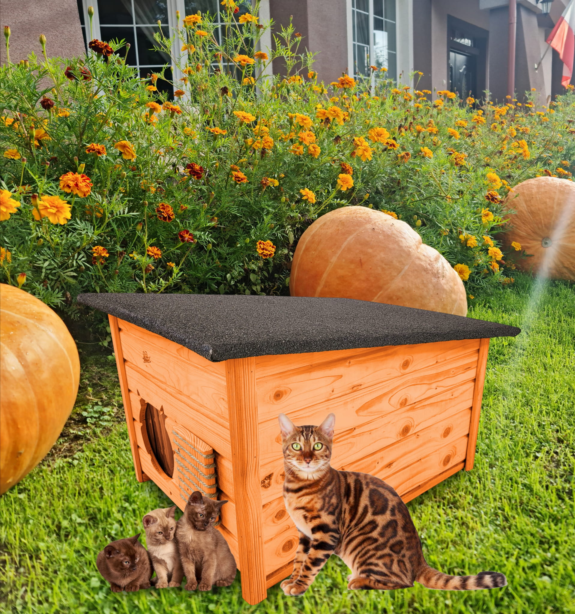 Domek zapewni kotom spokojne, komfortowe miejsce odpoczynku i schronienie przed zimnem oraz upałami.