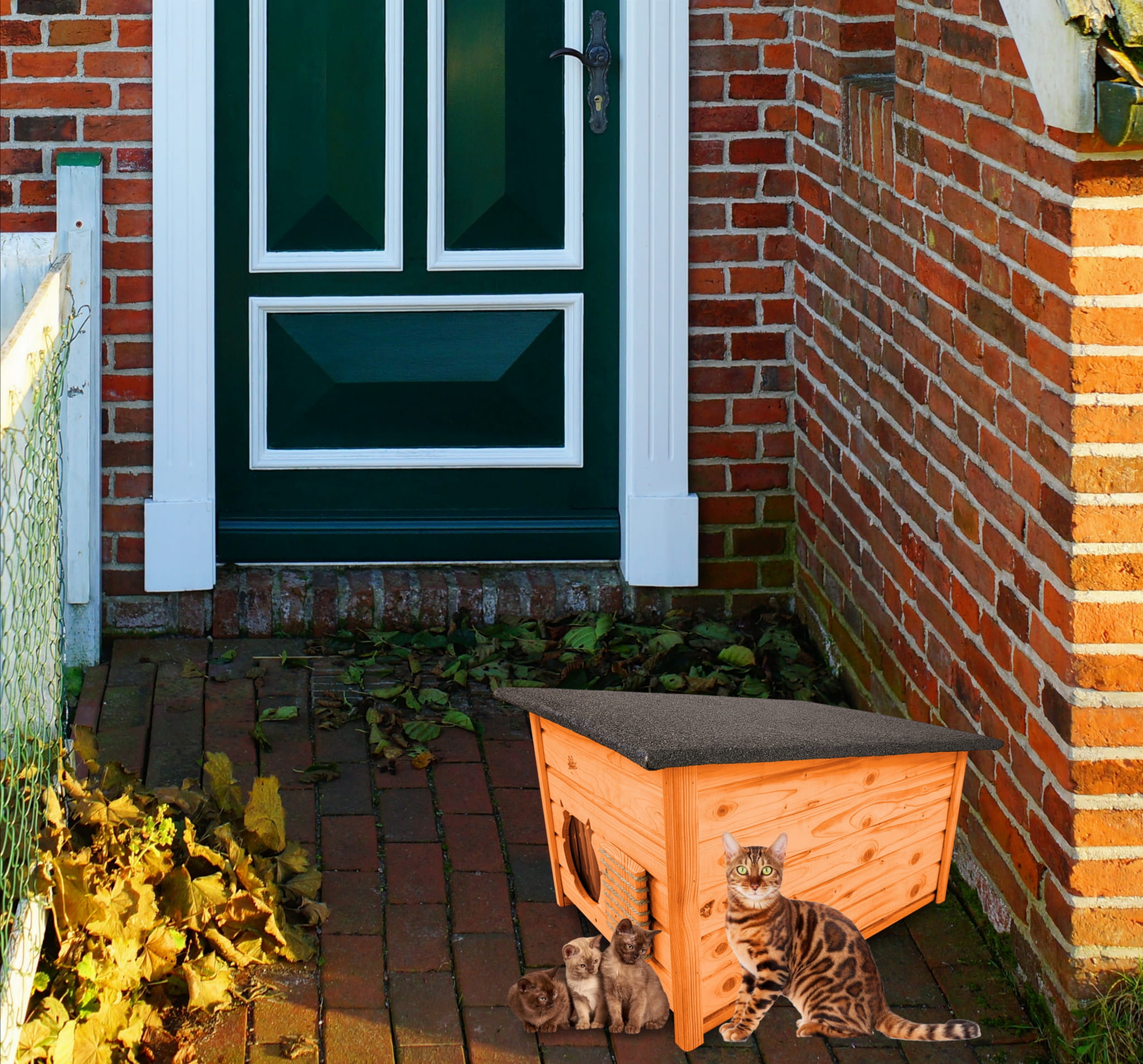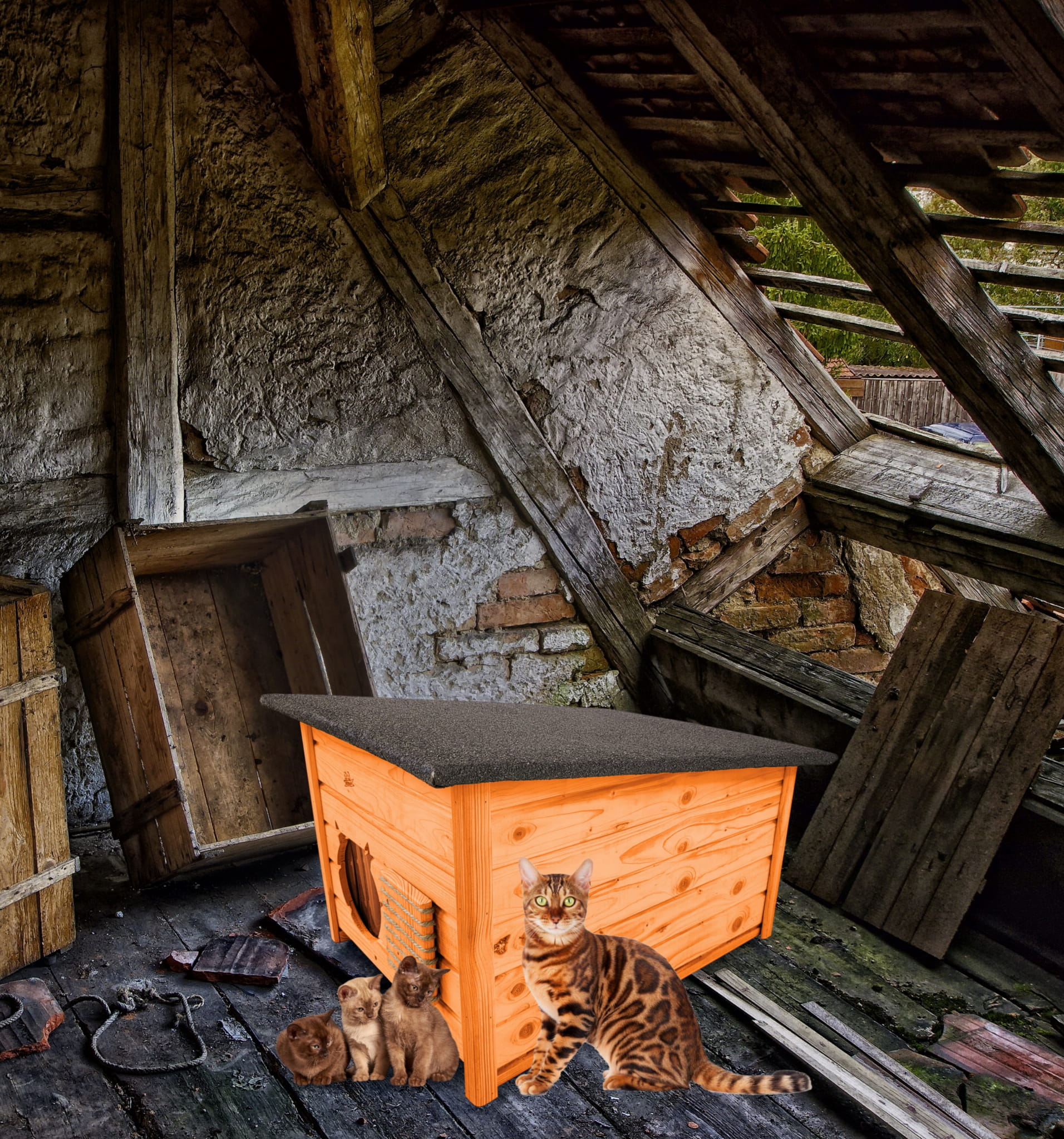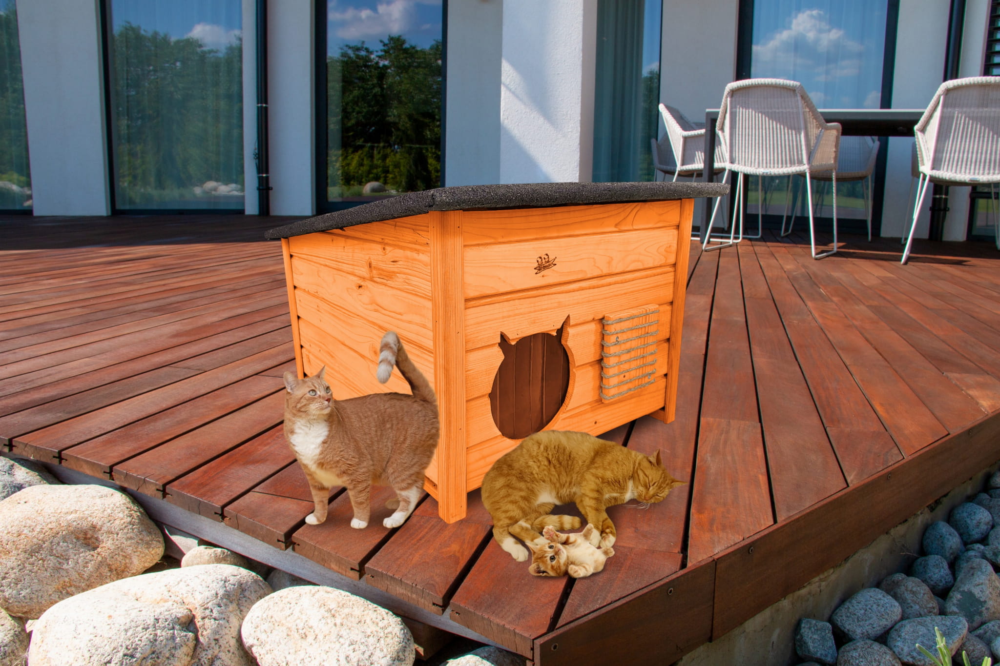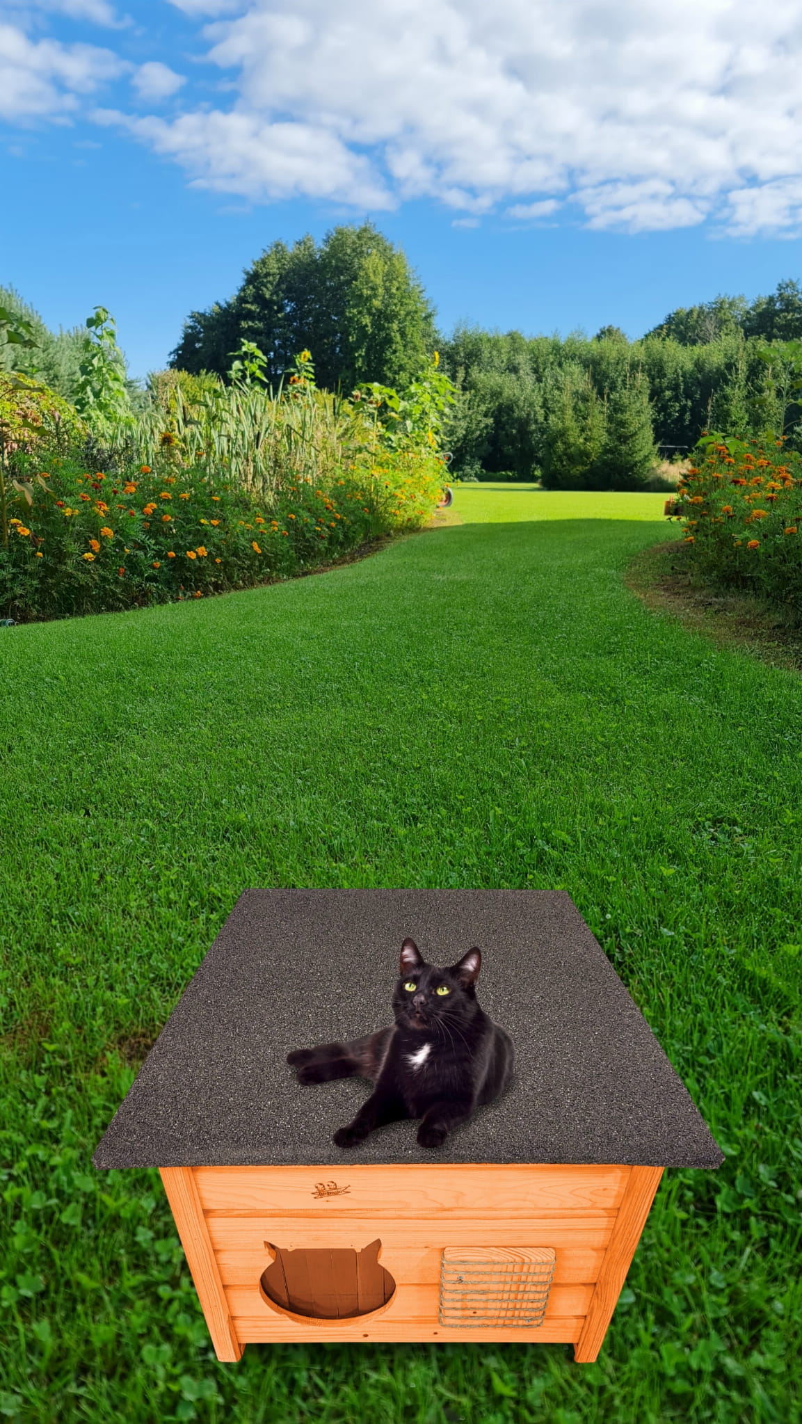Domek zapewni kotom spokojne, komfortowe miejsce odpoczynku i schronienie przed zimnem oraz upałami.