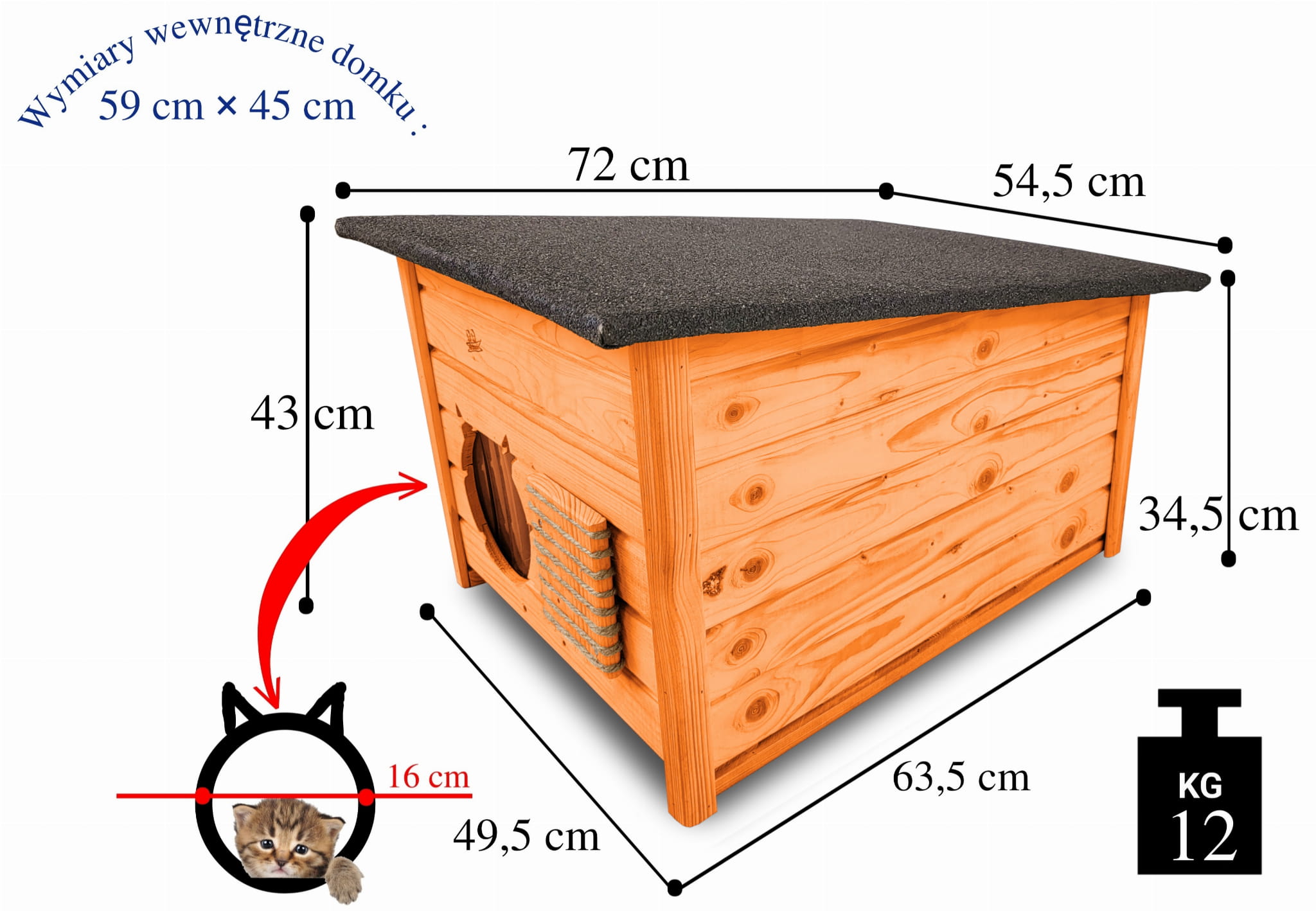 - wejście do domku ma odpowiedni duży otwór 16 cm