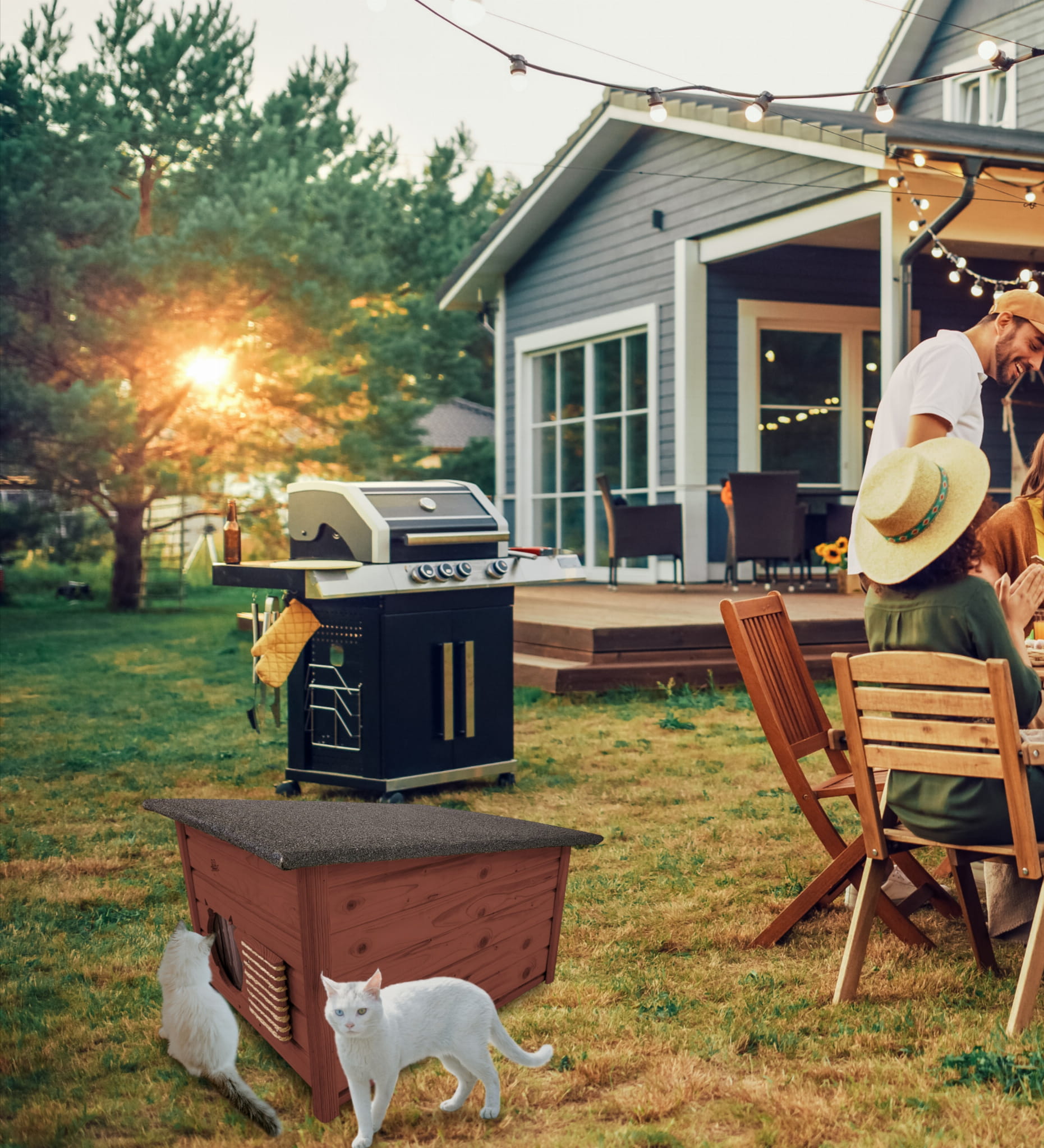 Domek zapewni kotom spokojne, komfortowe miejsce odpoczynku i schronienie przed zimnem oraz upałami.