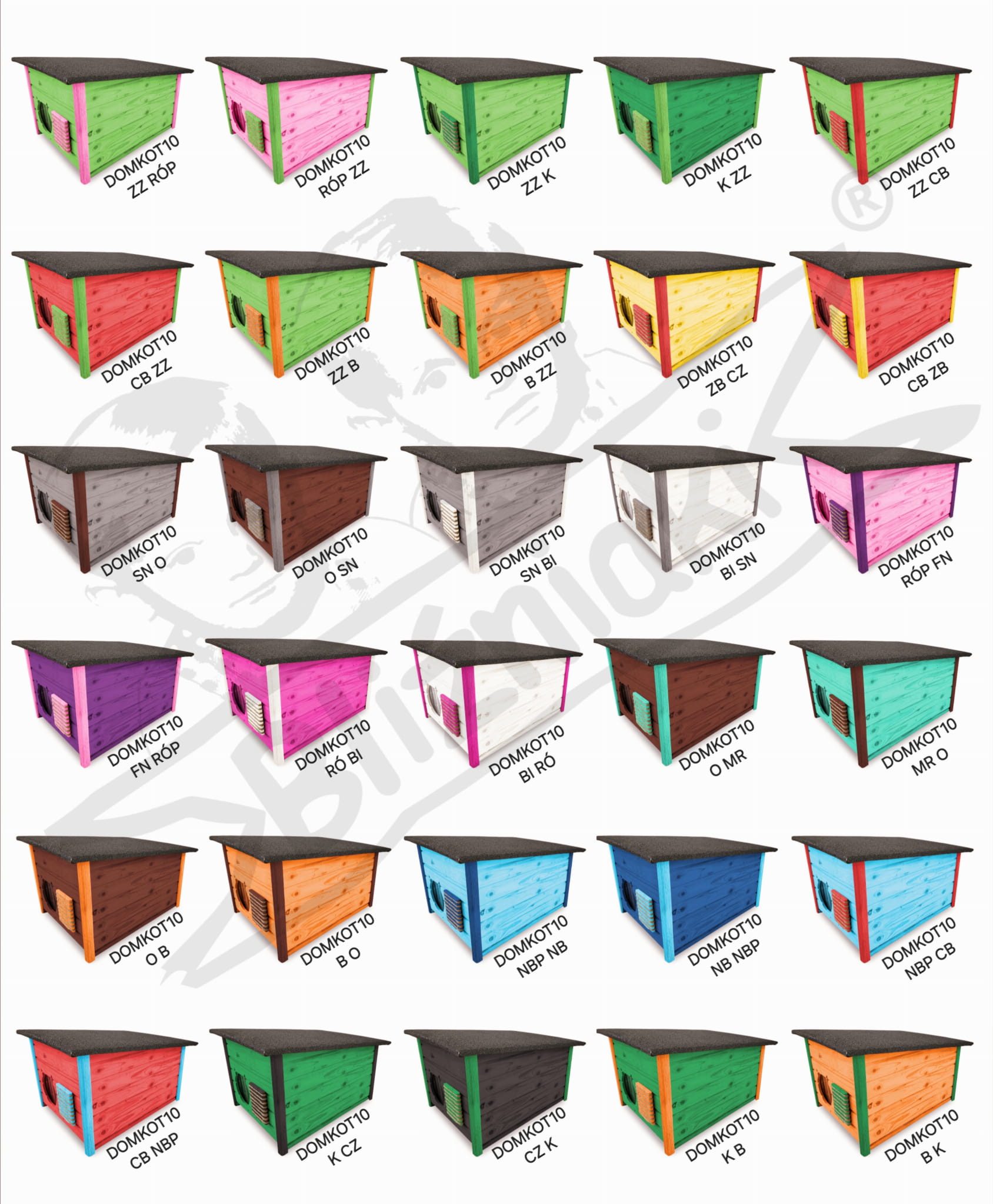Posiadamy wiele więcej wersji kolorystycznych tego produktu, a także inne modele domków dla kotów. Pełna oferta znajduje się w wariantach, a poniżej na ilustracji katalogowej przedstawione są inne kolorystyczne opcje tego produktu wraz z ich symbolem modelu.