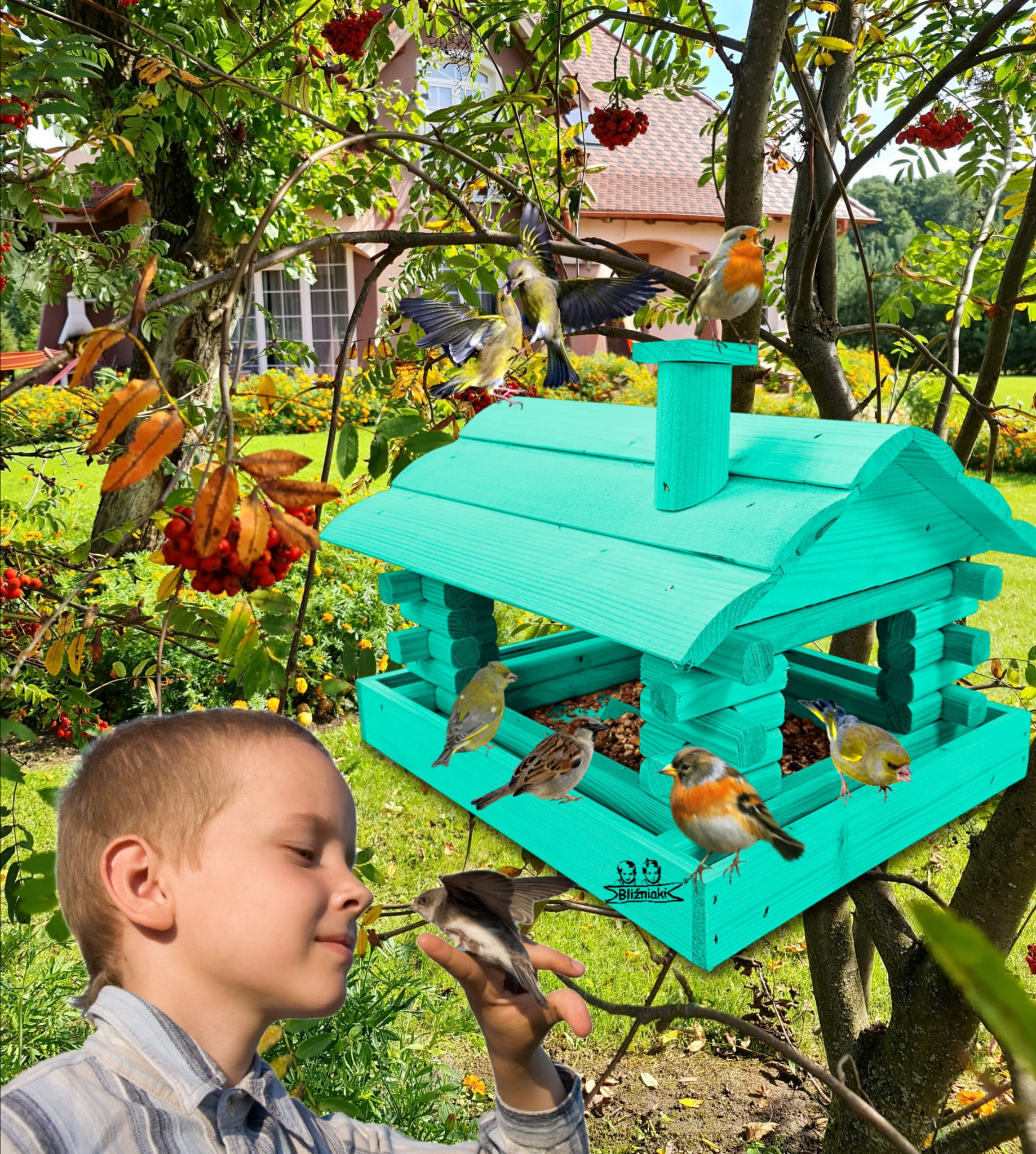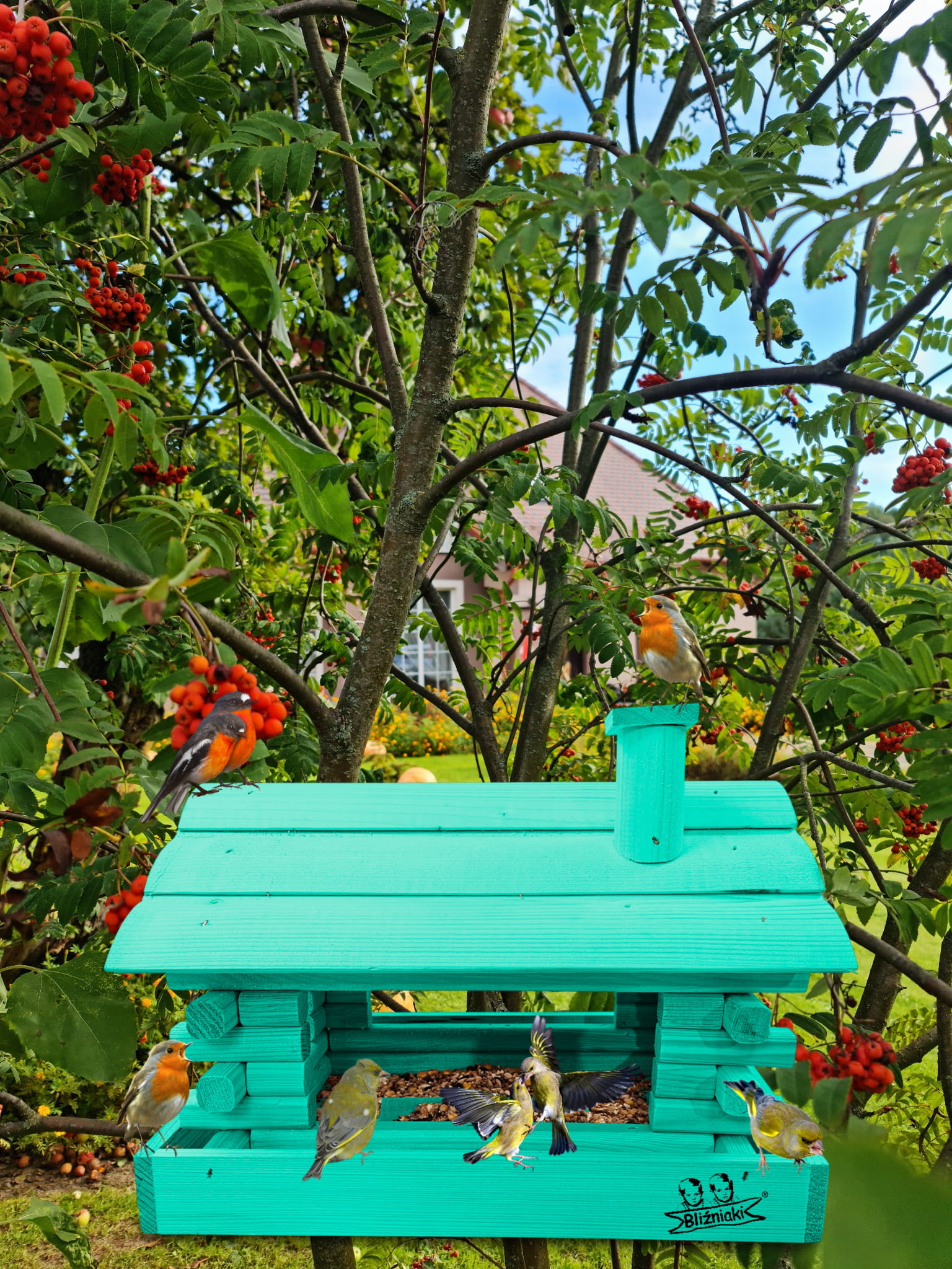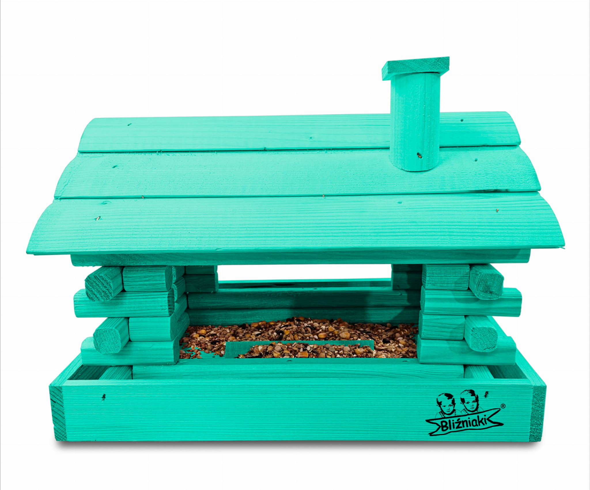 Karmnik wykonany z trwałego drewna, o starannym wykończeniu, przypomina klasyczny domek z kominem. Zapewnia ptakom bezpieczne i przytulne miejsce do odpoczynku oraz dostępu do pożywienia w zimniejszych miesiącach.