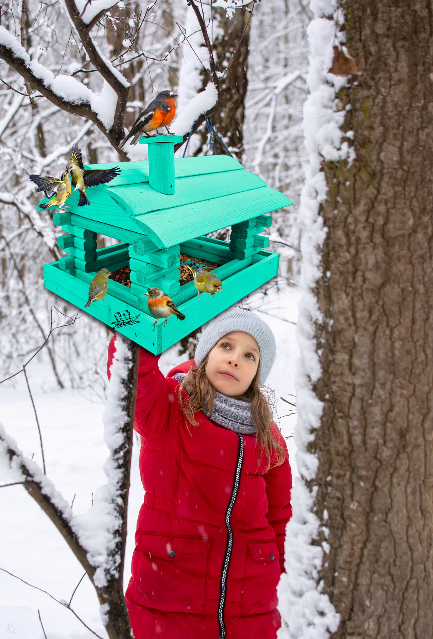 - Dekoracyjny element: Karmnik w kształcie domku to stylowa ozdoba do Twojego ogrodu, balkonu lub tarasu.