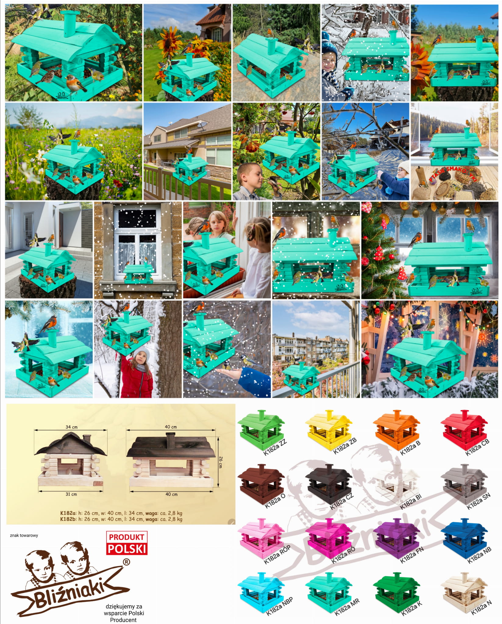 Oferujemy karmniki w różnych wariantach kolorystycznych. Dzięki temu możesz dopasować kolor karmnika do swojego stylu oraz otoczenia. Wybierz naturalne drewno, klasyczną biel, ciepły brąz lub inne opcje kolorystyczne.