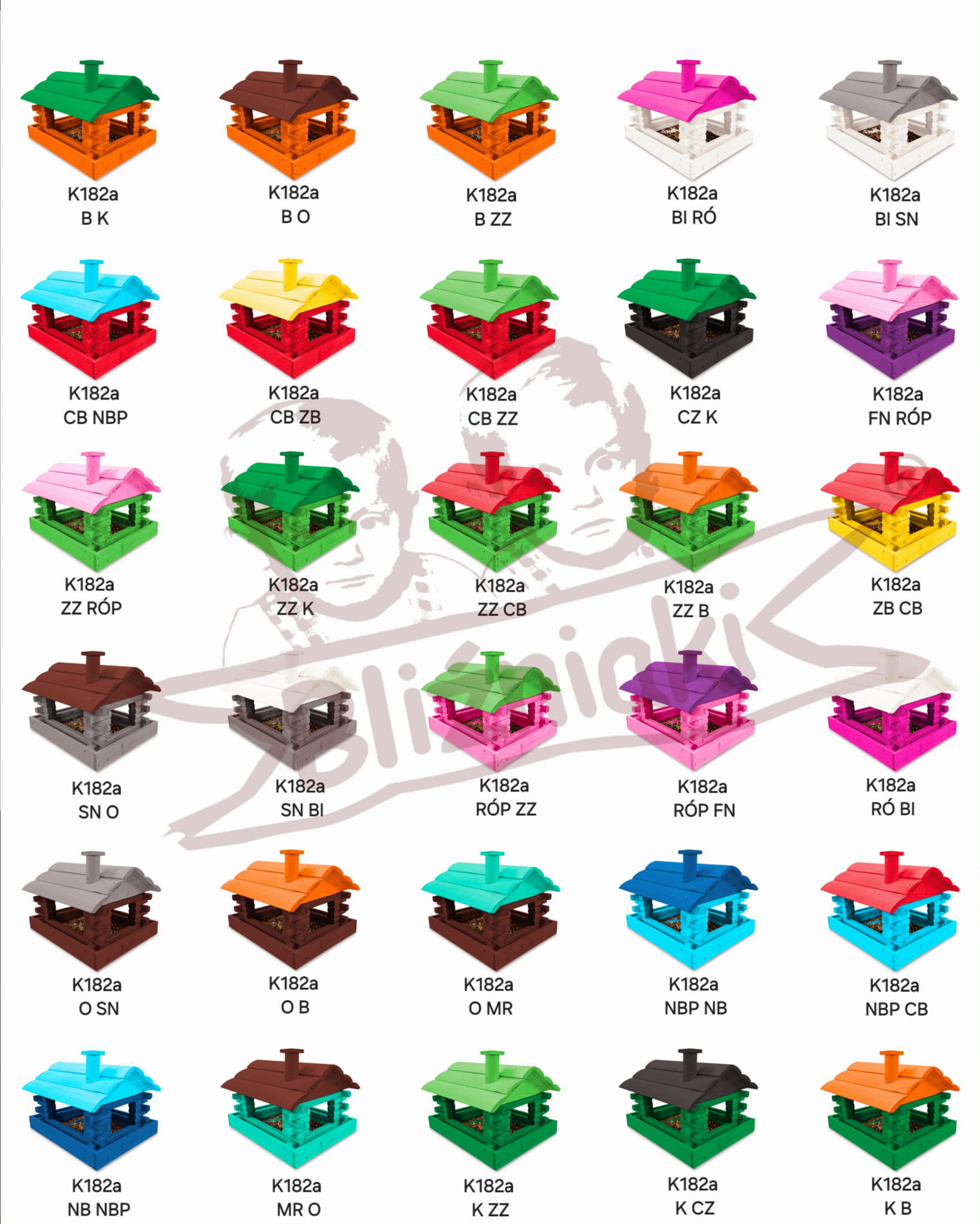 Posiadamy wiele więcej wersji kolorystycznych tego produktu, a także inne modele karmników. Pełna oferta znajduje się w wariantach, a poniżej na ilustracji katalogowej przedstawione są inne kolorystyczne opcje tego produktu wraz z ich symbolem modelu.