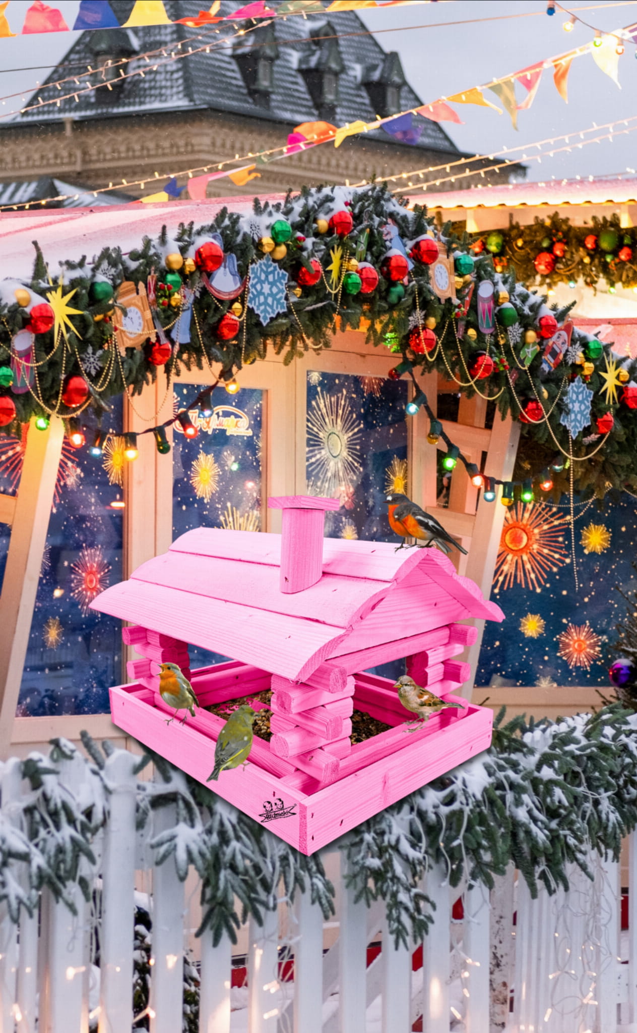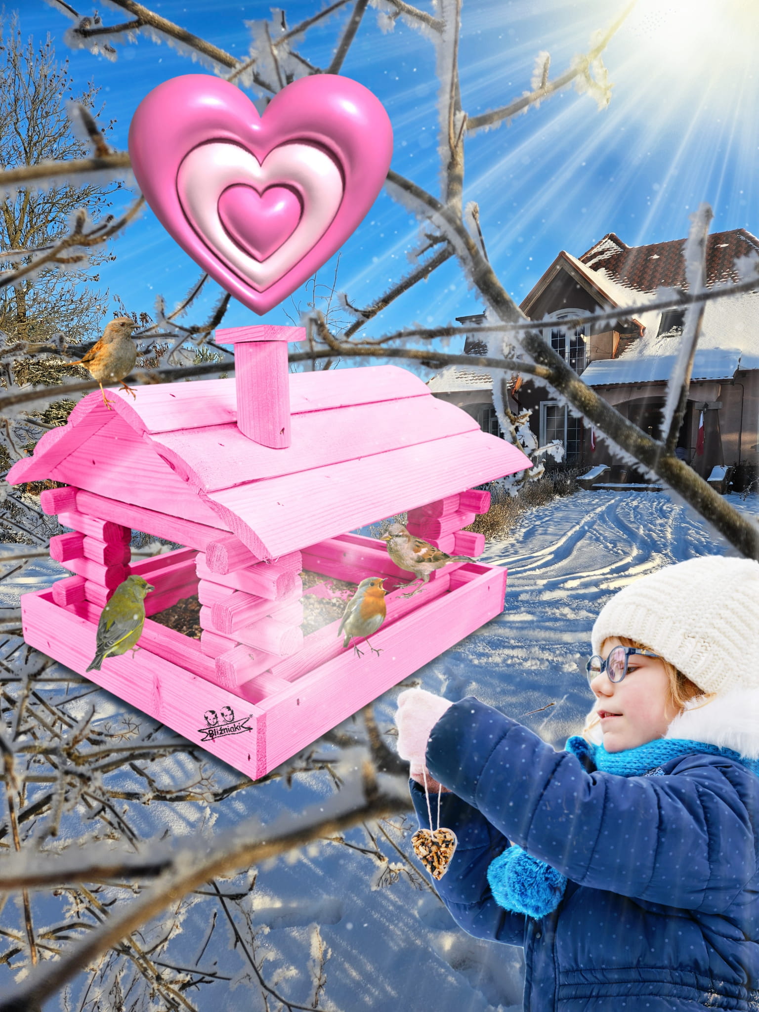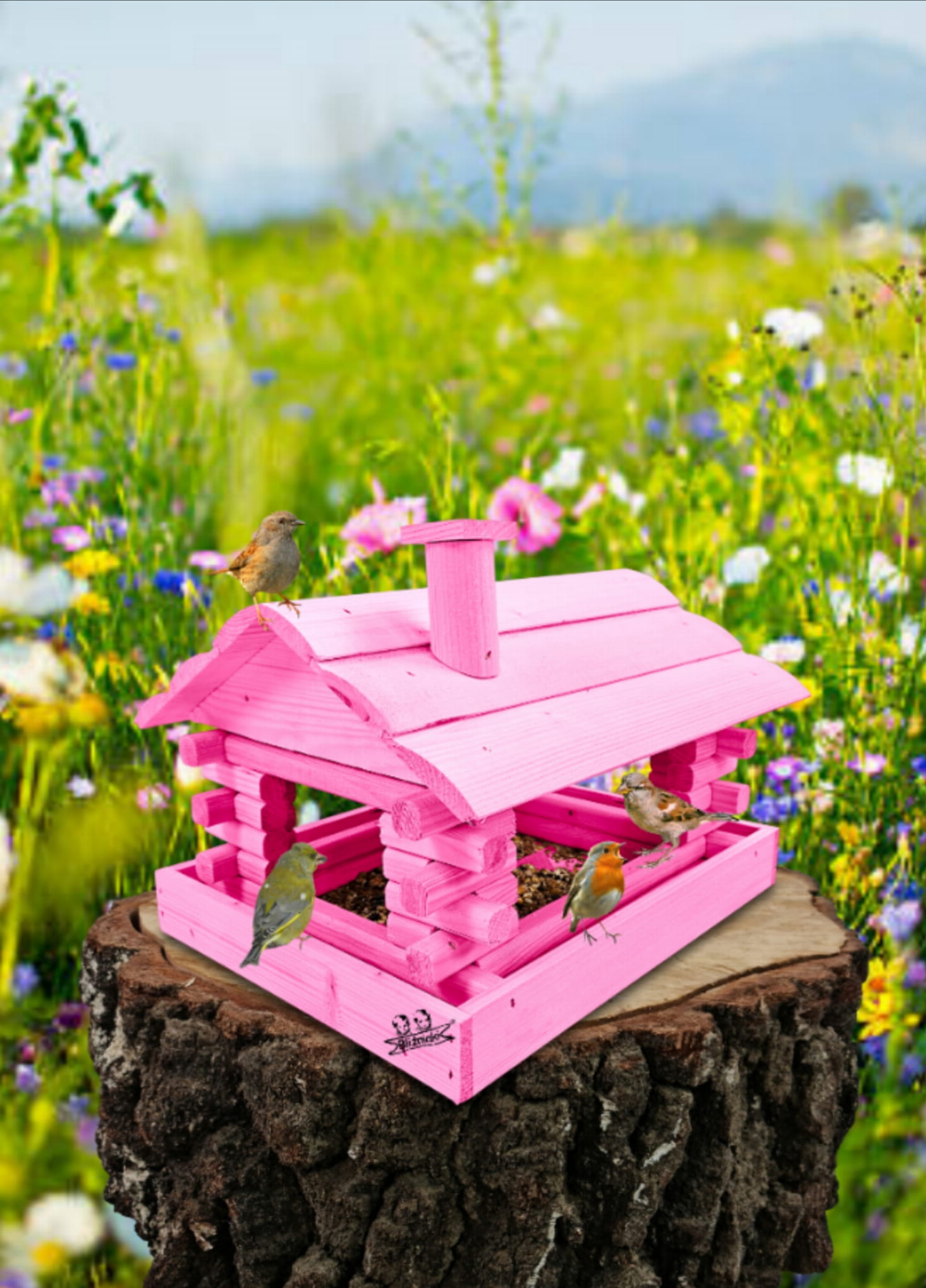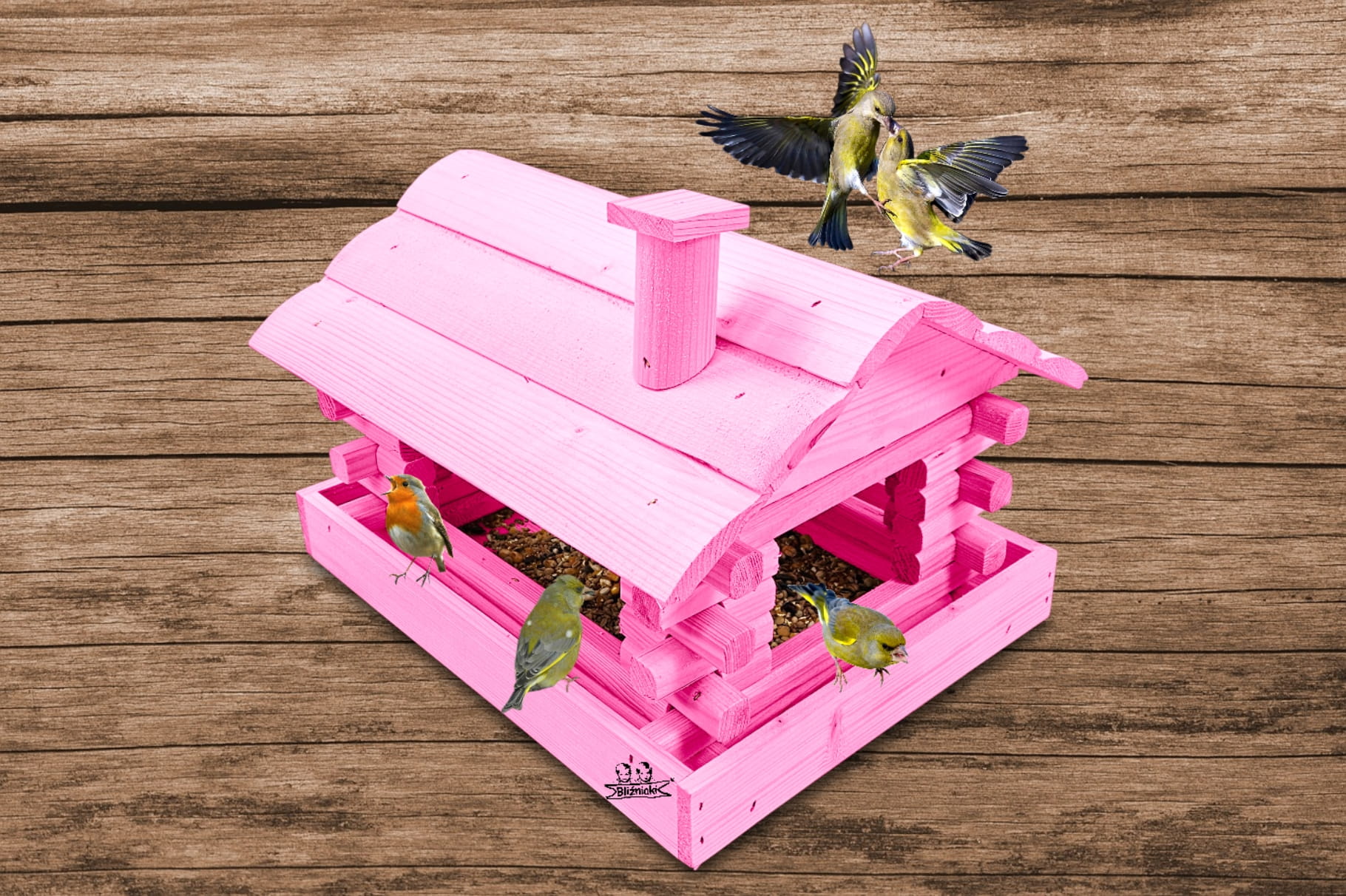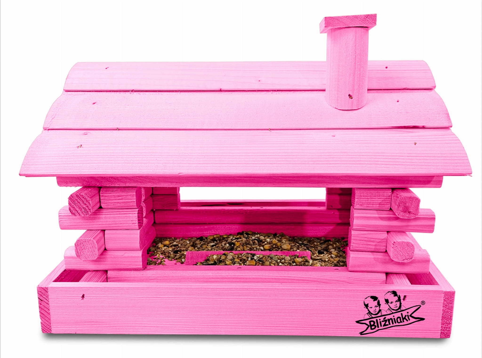 Karmnik wykonany z trwałego drewna, o starannym wykończeniu, przypomina klasyczny domek z kominem. Zapewnia ptakom bezpieczne i przytulne miejsce do odpoczynku oraz dostępu do pożywienia w zimniejszych miesiącach.
