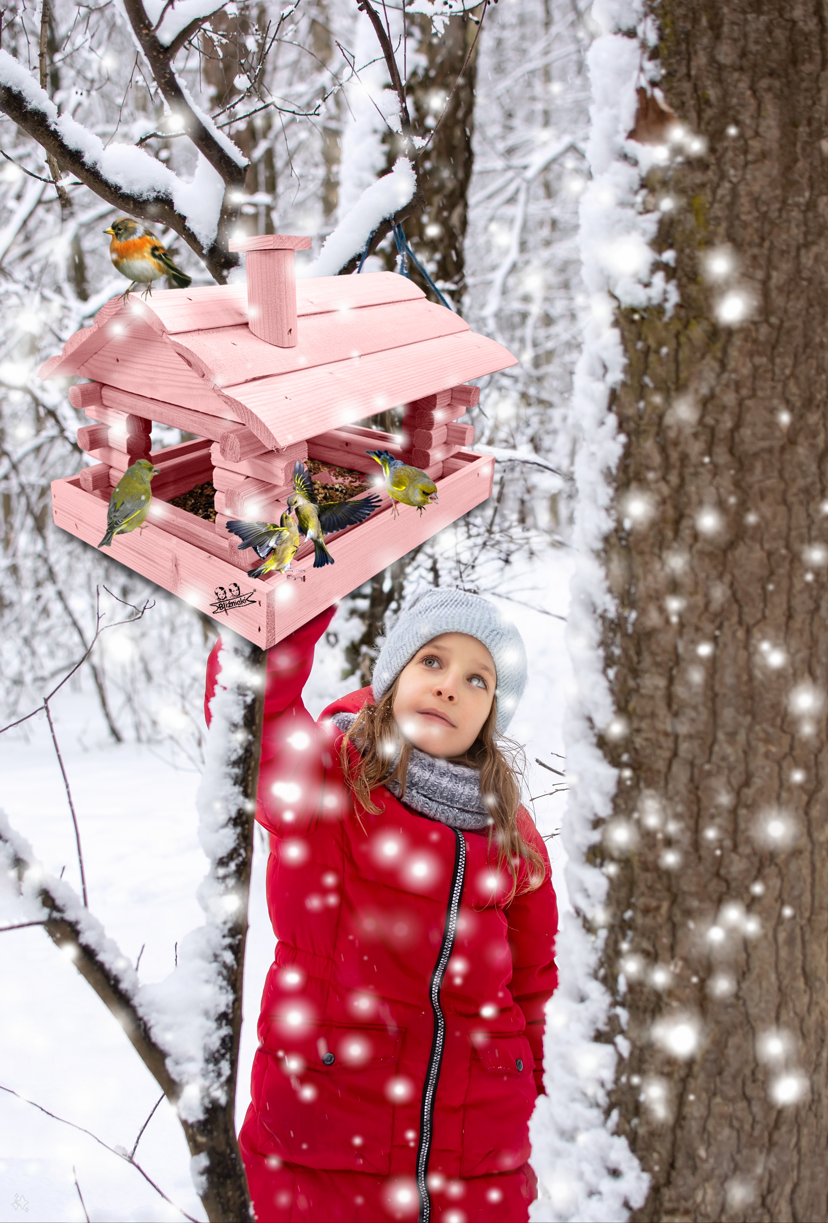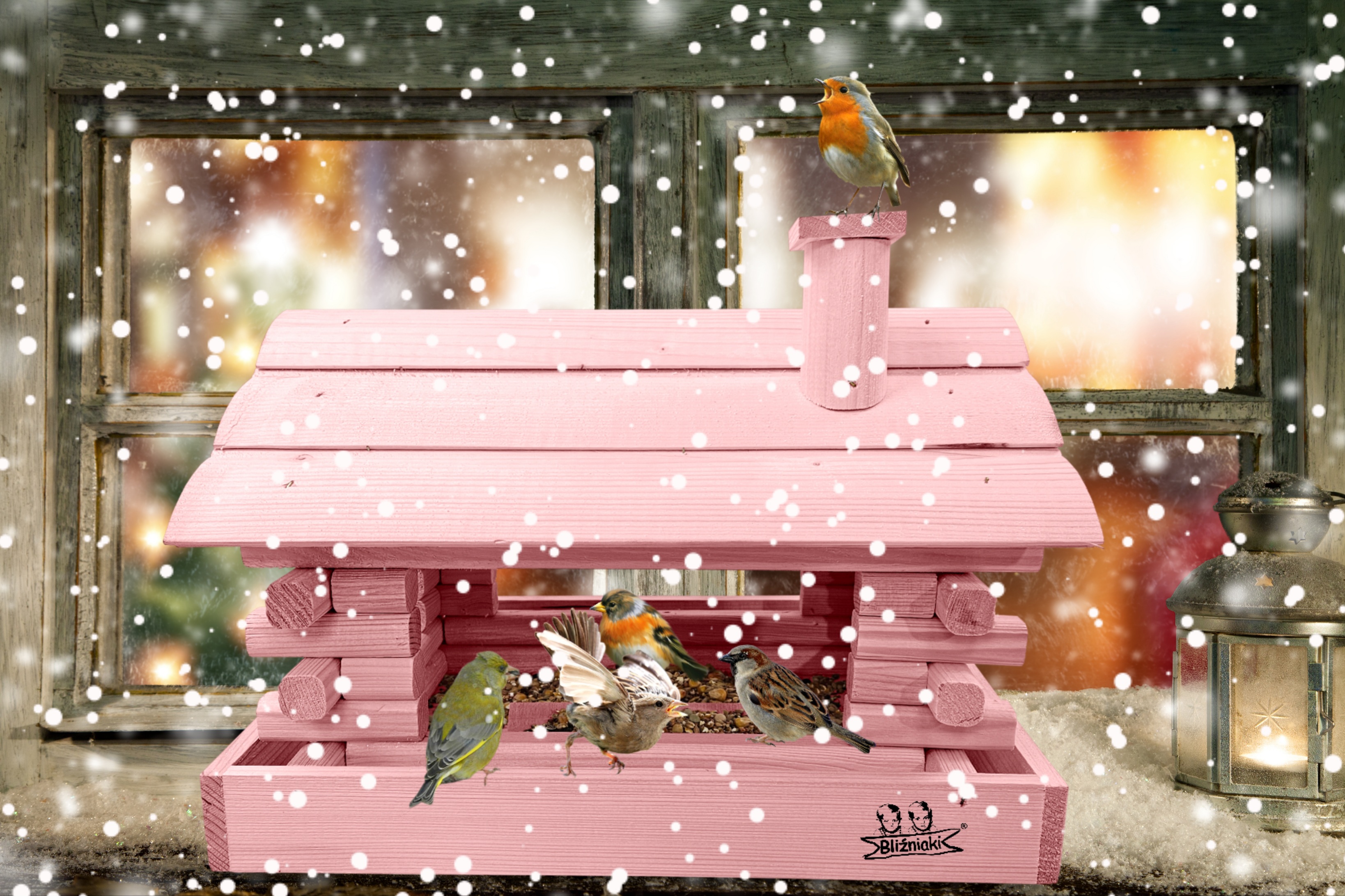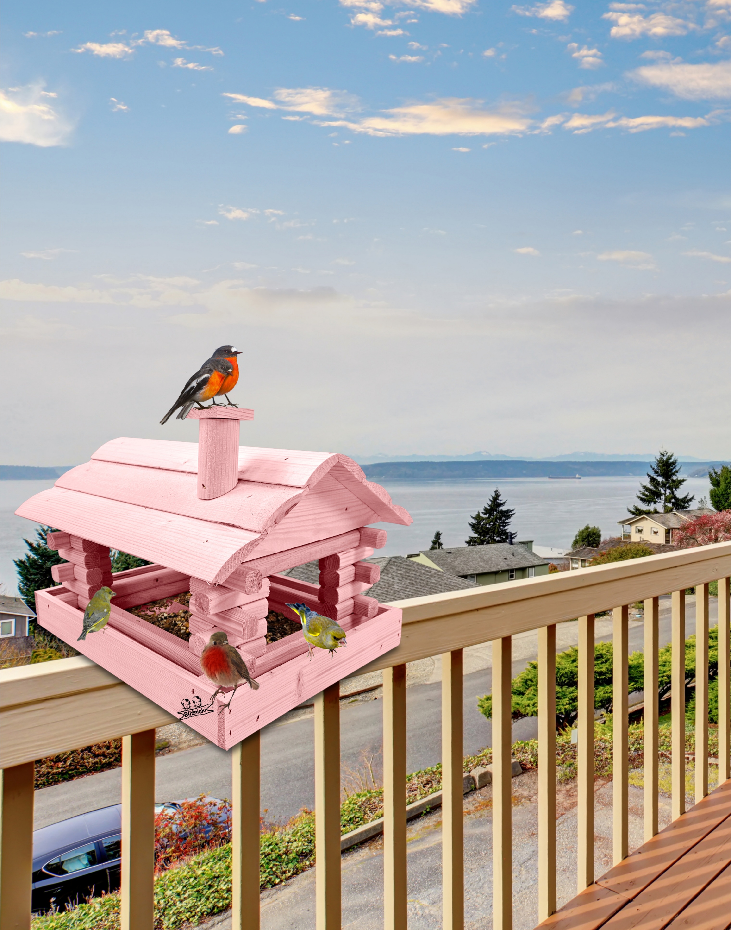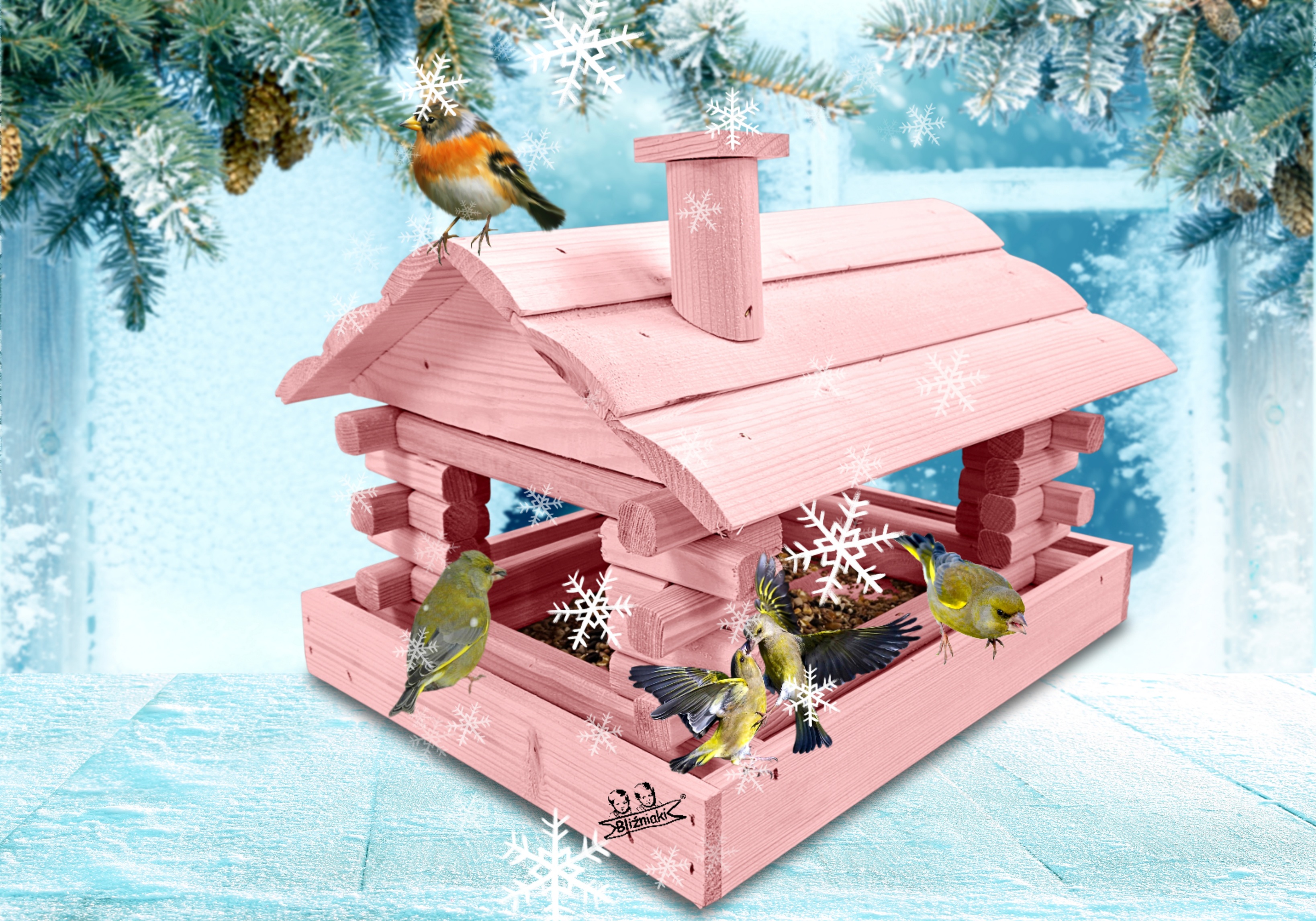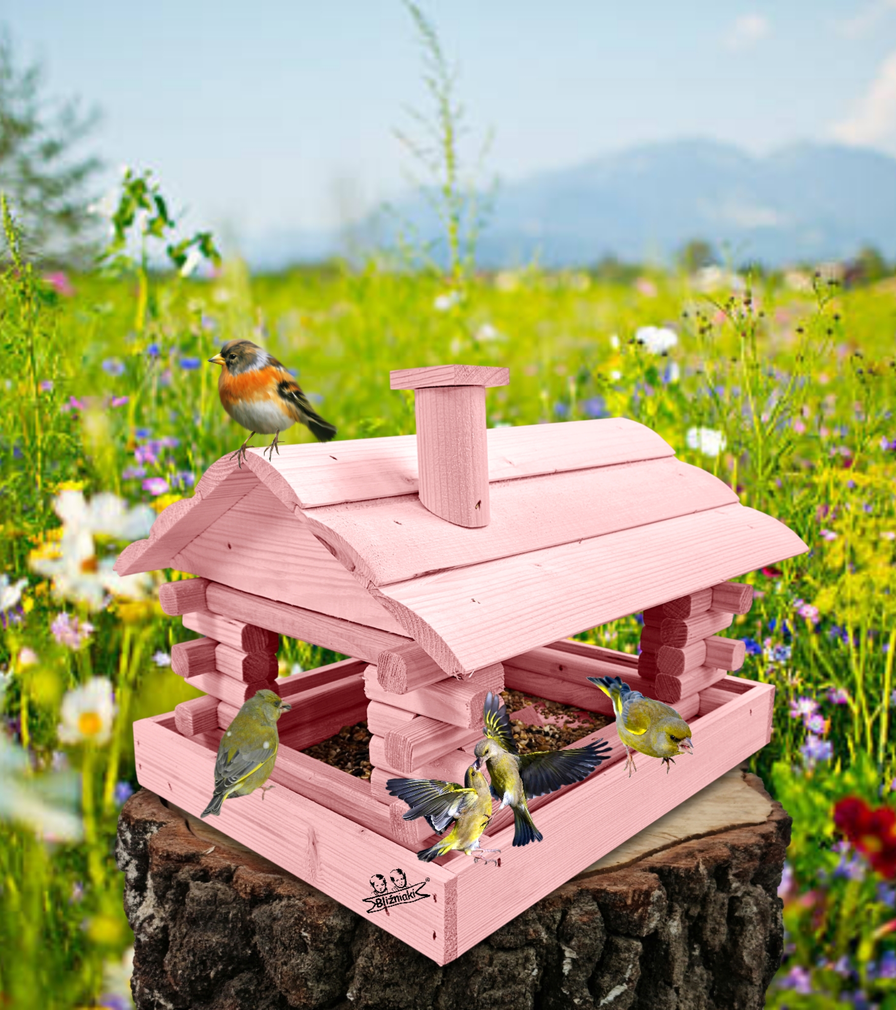 Karmnik w kolorze różowym został zaprojektowany w taki sposób, aby sprostać każdym warunkom atmosferycznym przez cały rok. Wykonany w całości z impregnowanego ekologicznie drewna uzyskał trwałość i odporność na szkodliwe działanie wody oraz wilgoci, promieni UV, a także grzybów i pleśni. Może być więc przechowywany przez cały rok na zewnątrz.