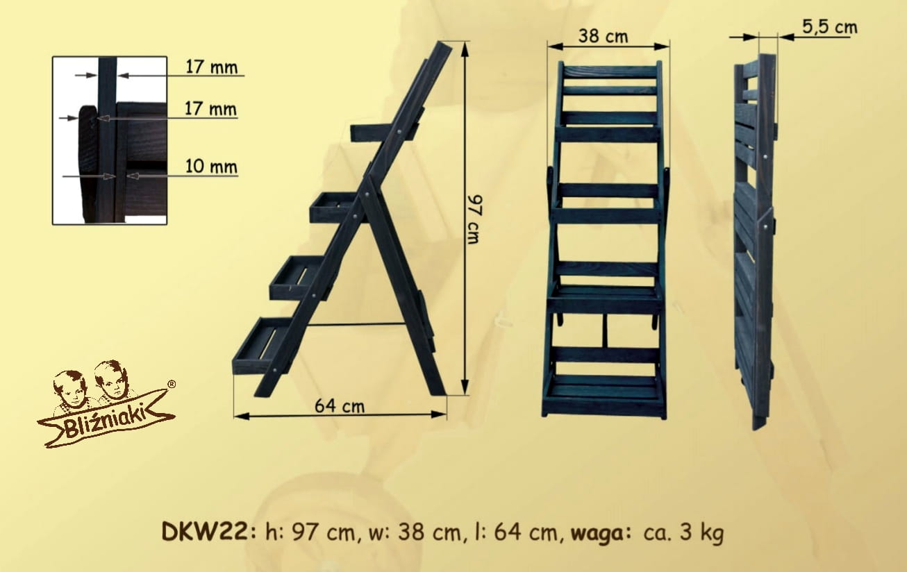 - Uniwersalna drabinka: Idealna na tarasy, balkony, do domu, sklepów czy kwiaciarni.