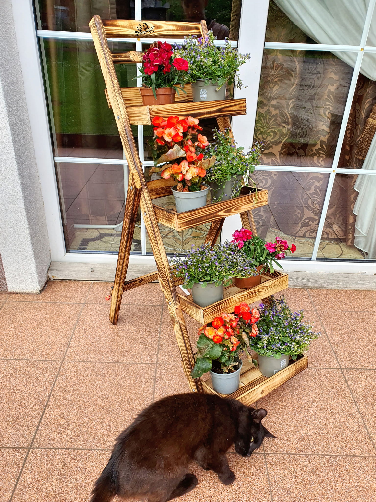 Nasz stojak może również pełnić rolę ozdobnego kwietnika do ustawienia na nim doniczek z Twoimi ulubionymi kwiatami na tarasie lub balkonie.