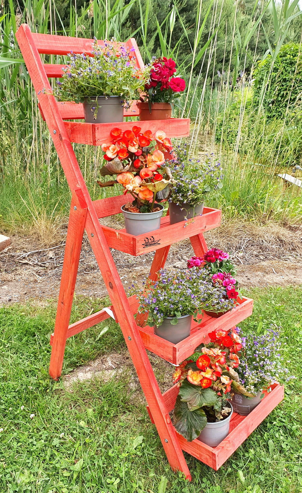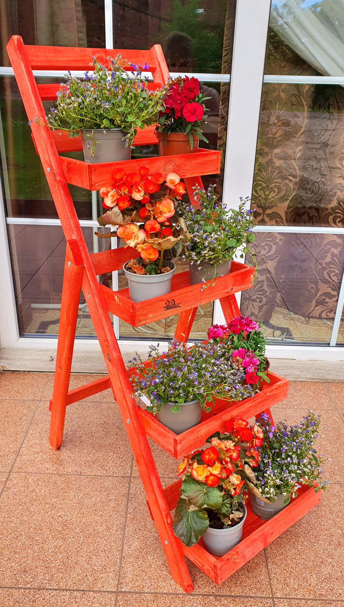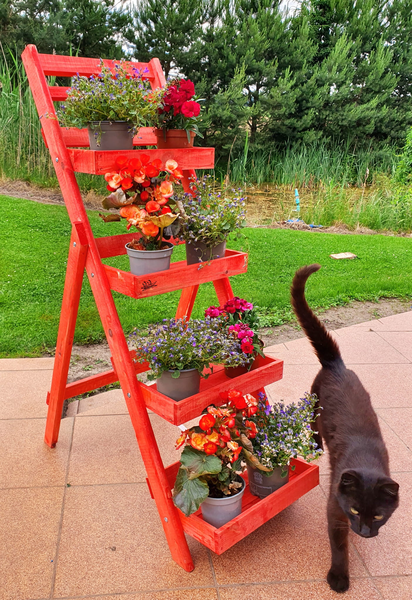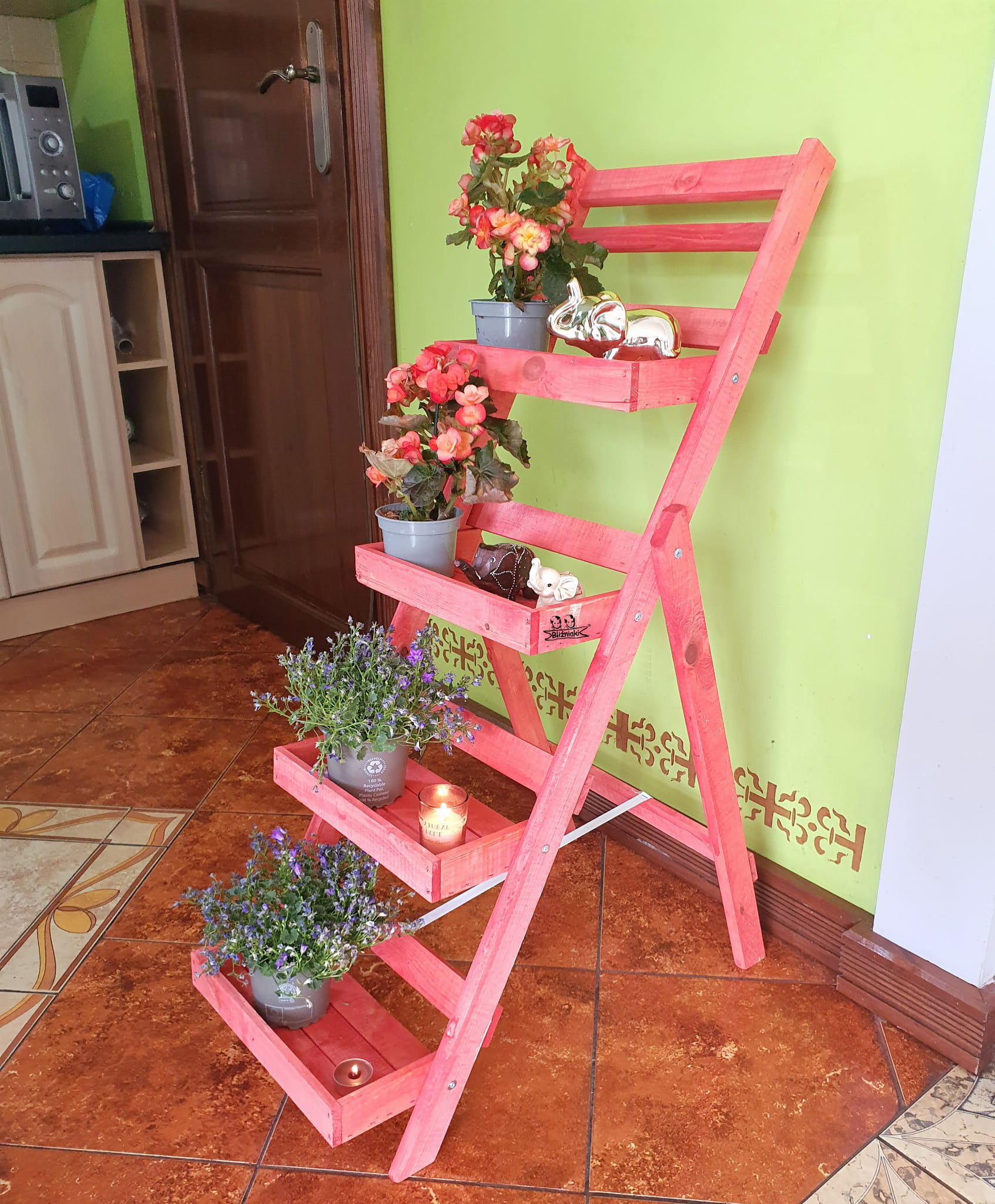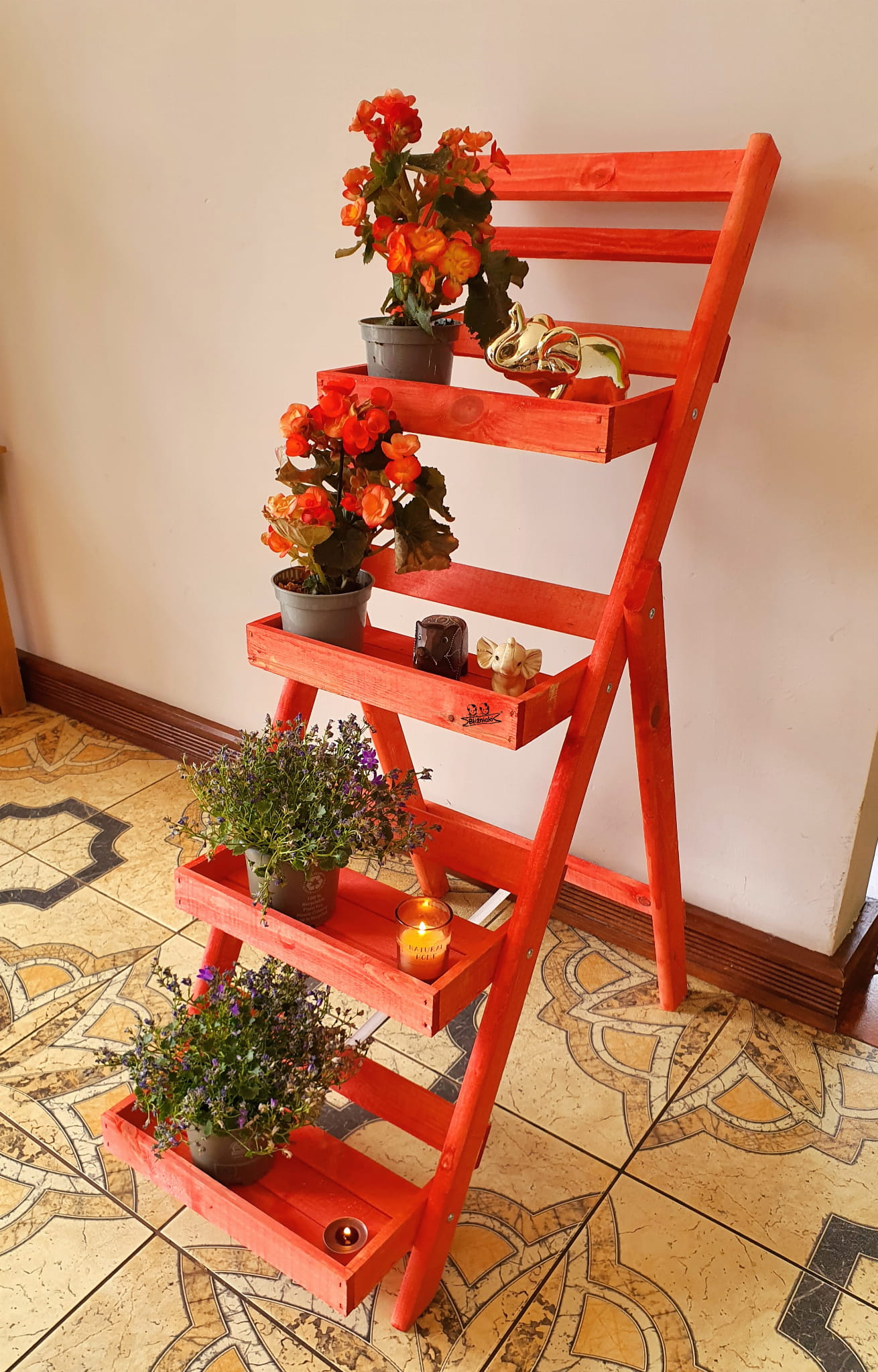 Nasz stojak może również pełnić rolę ozdobnego kwietnika do ustawienia na nim doniczek z Twoimi ulubionymi kwiatami na tarasie lub balkonie.