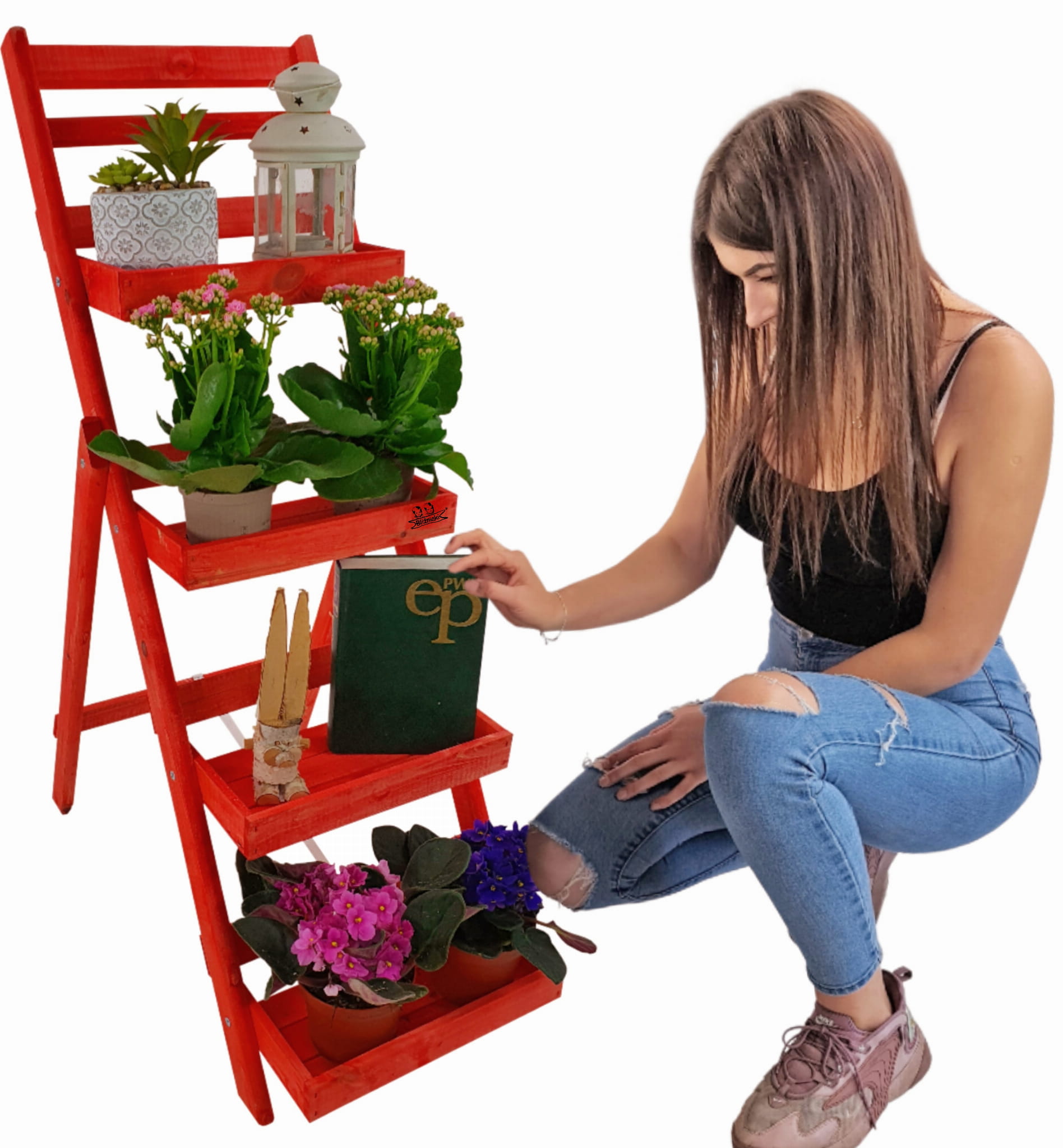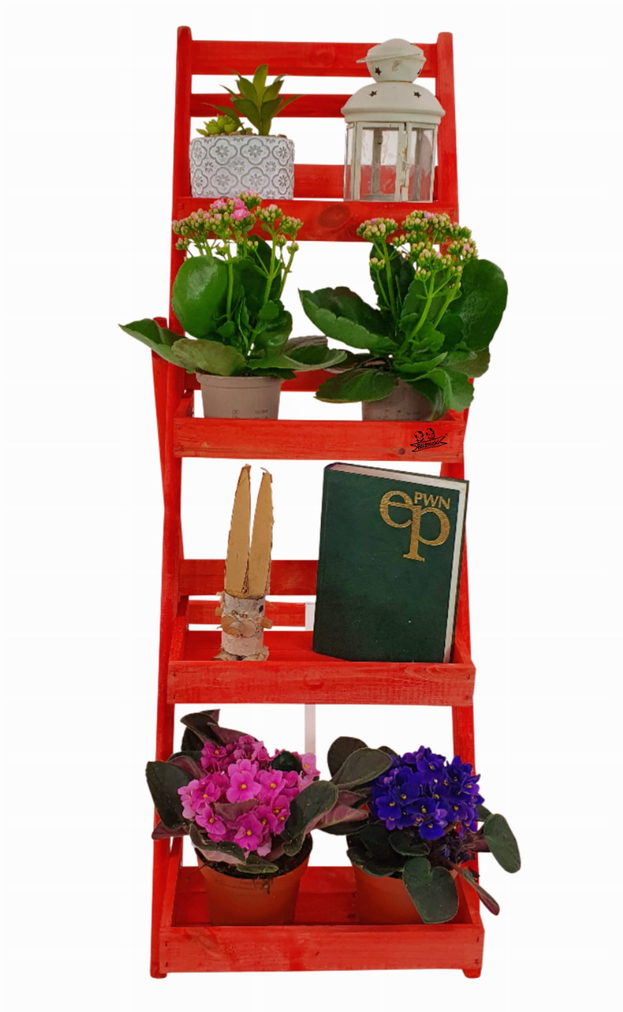 Ten wielofunkcyjny 4-piętrowy stojak w kolorze CZERWONYM jest niezastąpiony do wyeksponowania drobiazgów, roślin doniczkowych, pamiątek, zabawek, książek i innych cennych przedmiotów.