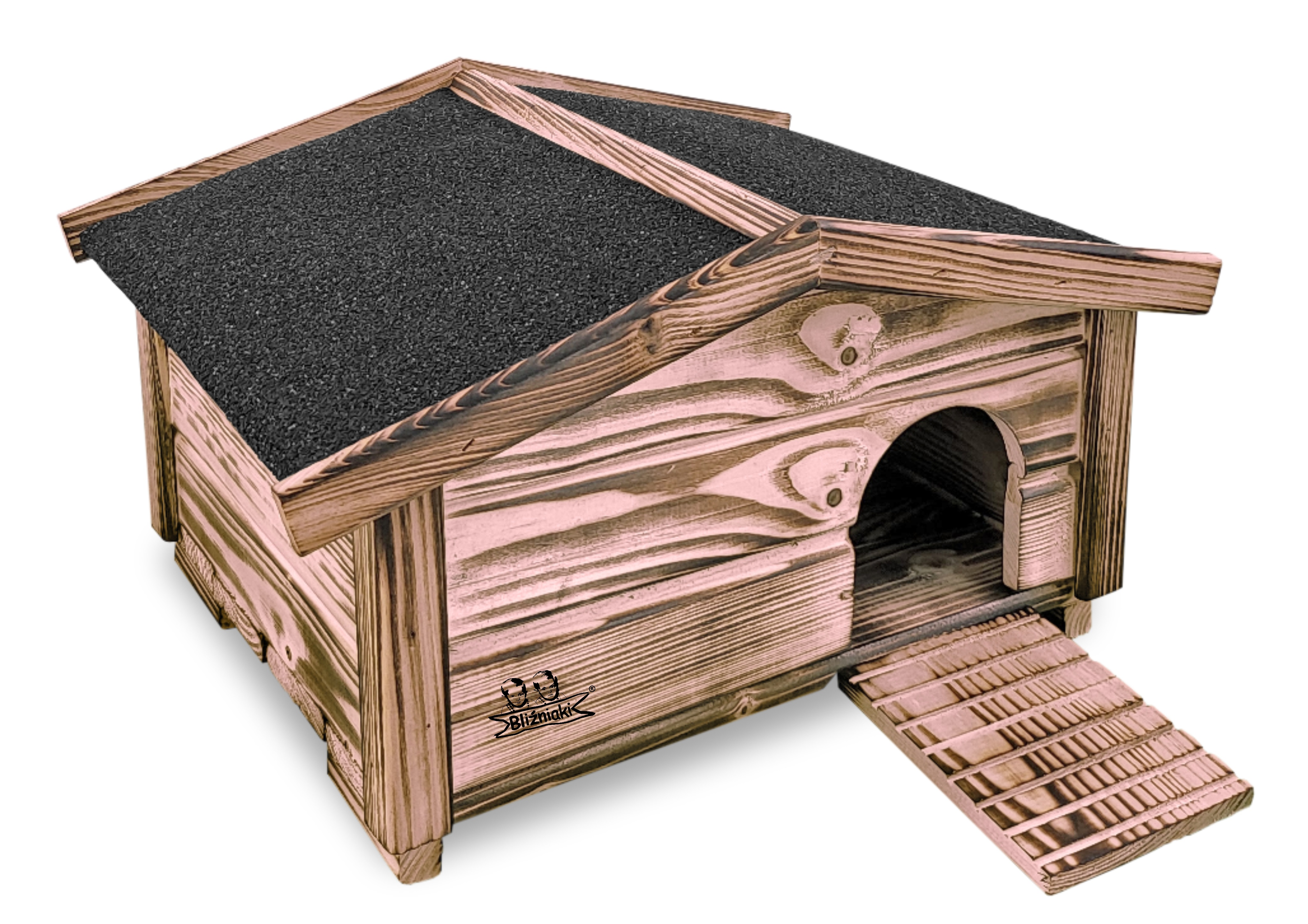 Domek dla jeża wykonany w całości z drewna, dach, będzie doskonałym schronieniem na każdą porę roku. Dach wzmocniony PAPĄ BITUMICZNĄ chroniącą przed przeciekaniem i termoizolacją, czyni go odpornym na warunki atmosferyczne na każdą porę roku.