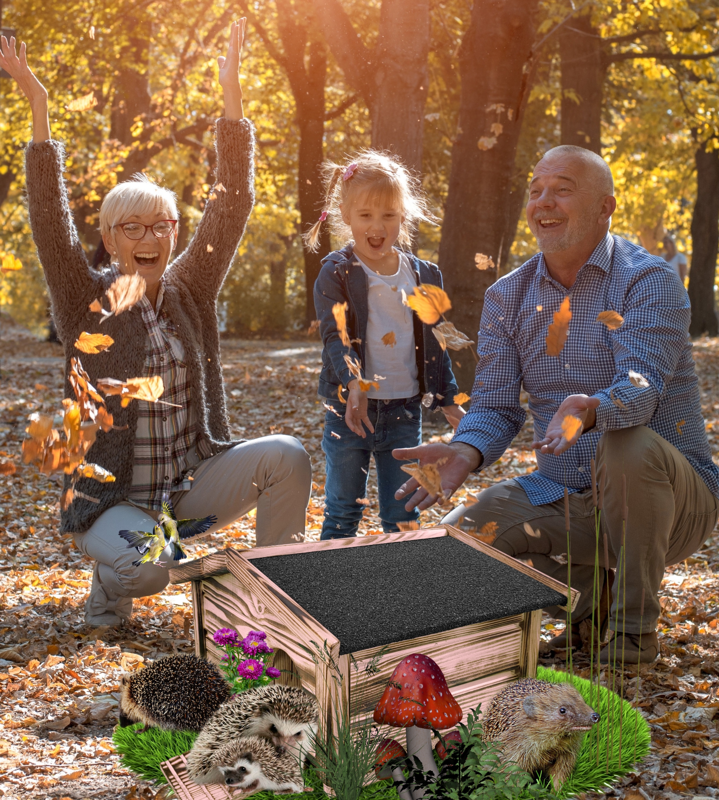 Poddane impregnacji drewno sprawia, że domek dla jeża jest odporny na szkodliwe działanie wody oraz wilgoci, promieni UV, a także grzybami i pleśnią, może być więc przechowywany cały rok na zewnątrz w ogrodzie .