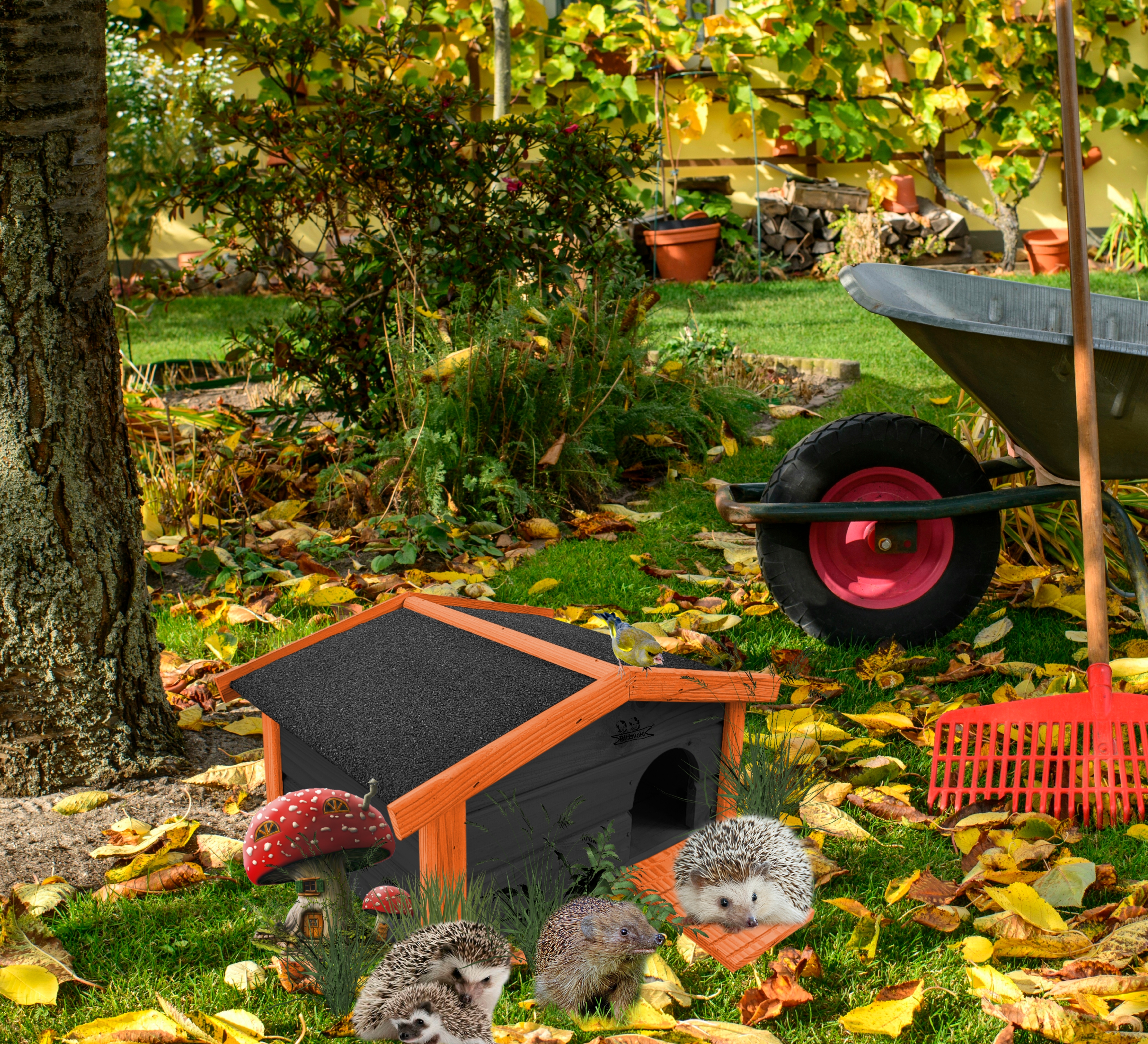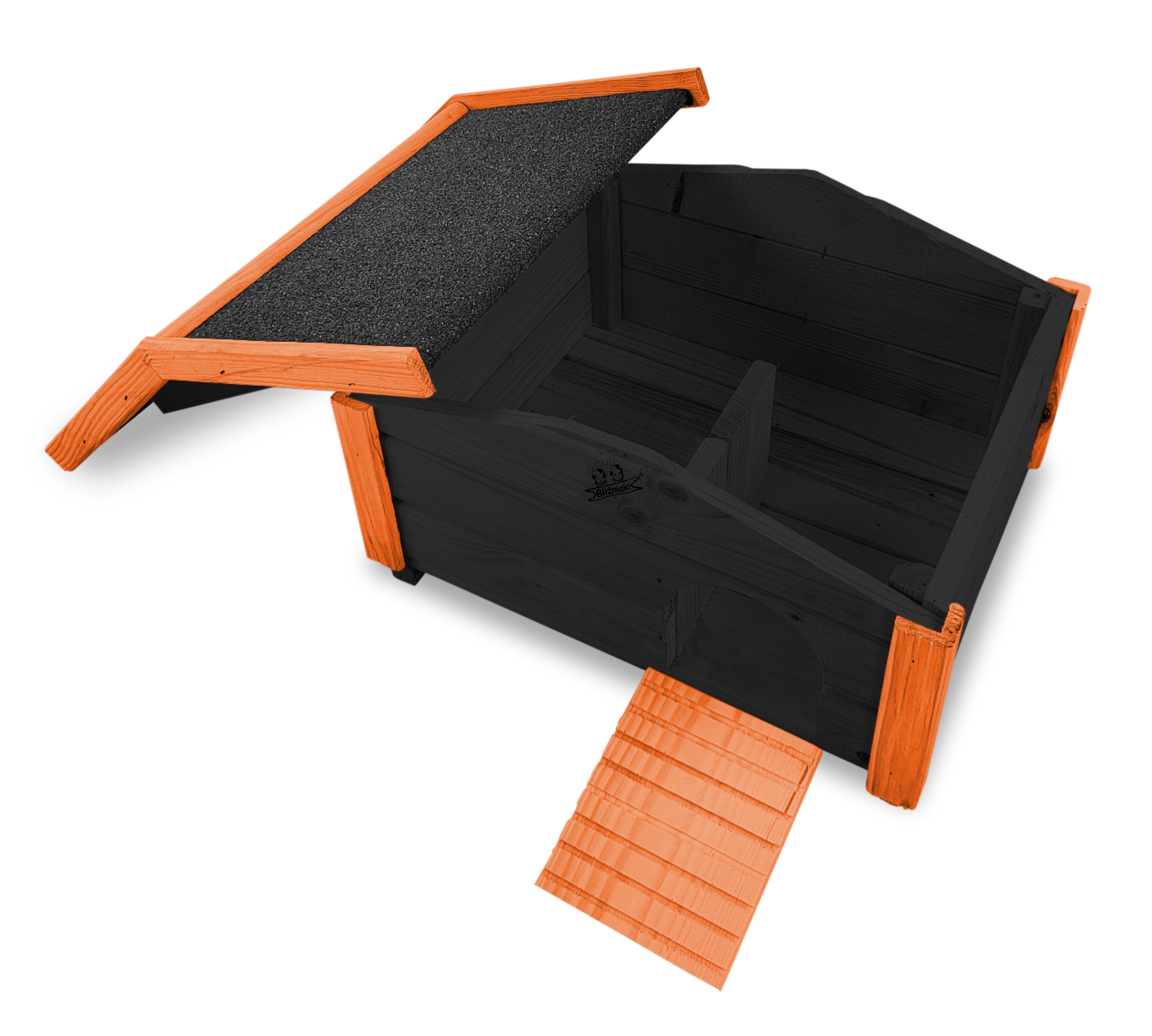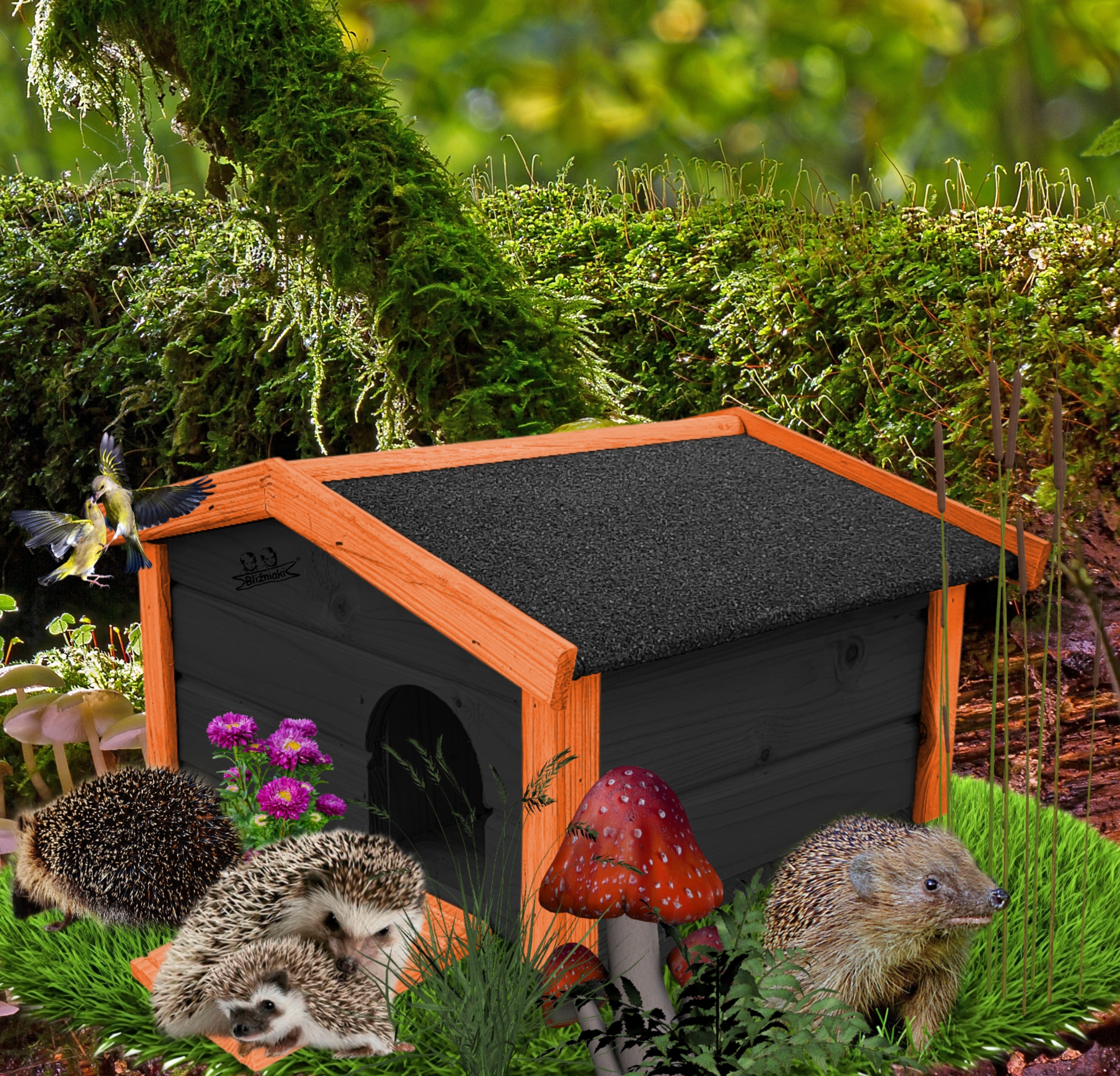Na tej aukcji oferujemy domek dla jeża HDJ10 CZ B kolor CZARNY Z POMARAŃCZOWYMI ELEMENTAMI, domek dla jeża został zaimpregnowany środkiem na bazie wody, co czyni go dekoracyjnym a także przyjaznym dla przyrody.
