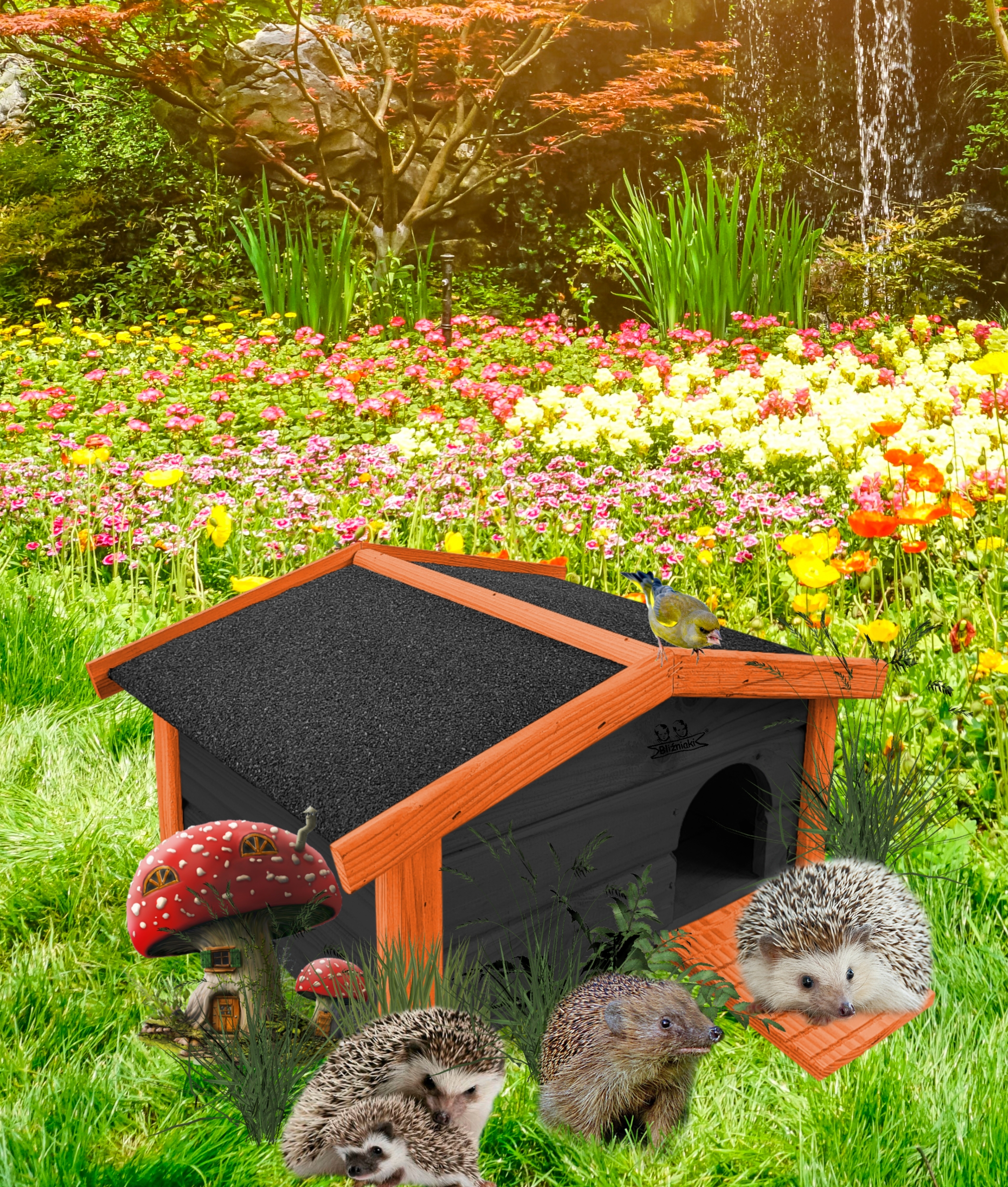 Domek drewniany dla jeża stanowić będzie niezwykle dekoracyjny element architektury ogrodowej jako schronienie całoroczne dla jeża, miejsce do hibernacji od jesieni do wiosny a także jako domek do lęgowania i bytowania tych przyjaznych stworzeń w pozostałej części roku.