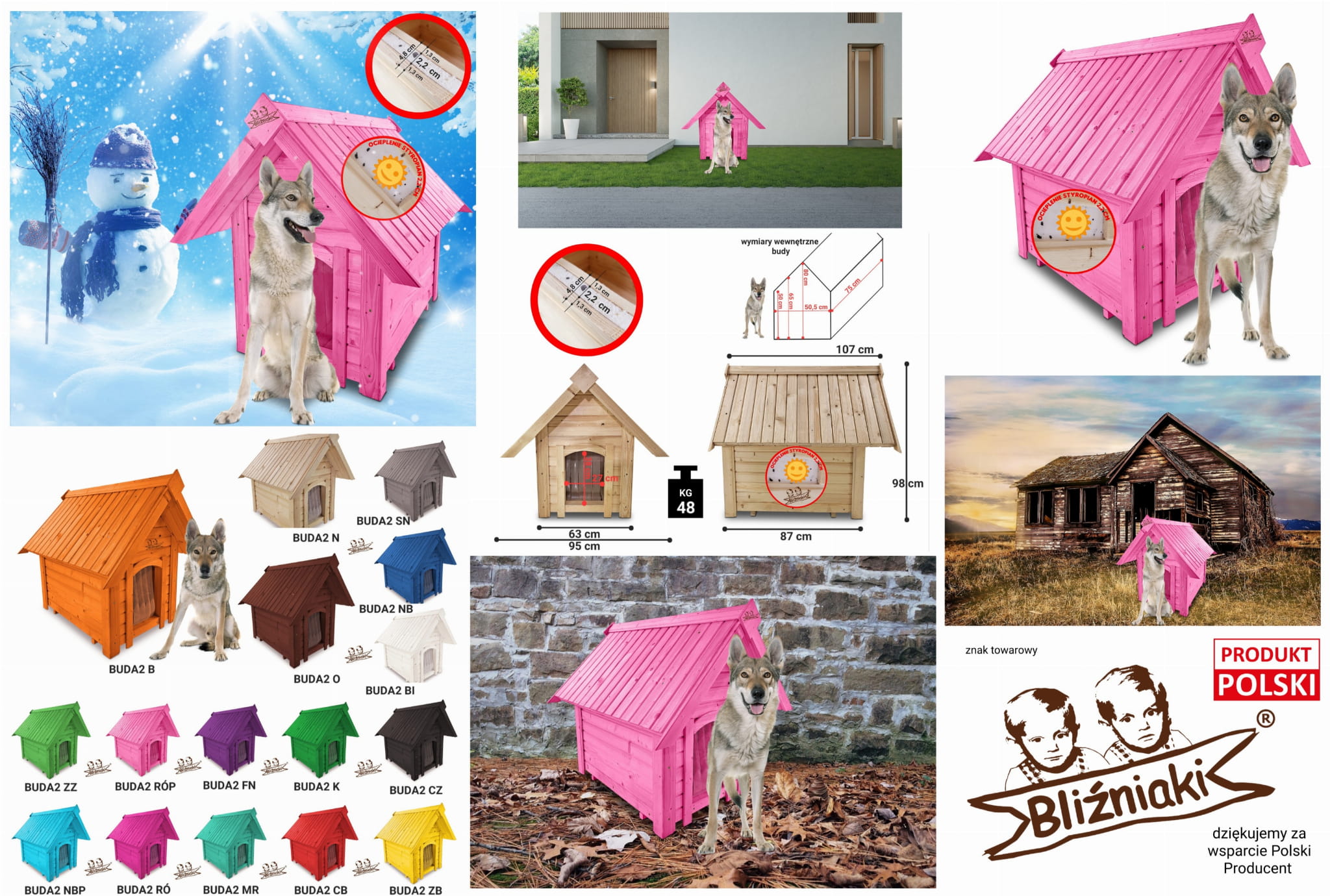 Poddane impregnacji drewno sprawia, że oferowany przez nas BUDA DLA PSA jest odporny na szkodliwe działanie wody oraz wilgoci, promieni UV, a także grzybów i pleśni a przy tym ma piękny RÓŻOWY PASTELOWY kolor drewna.