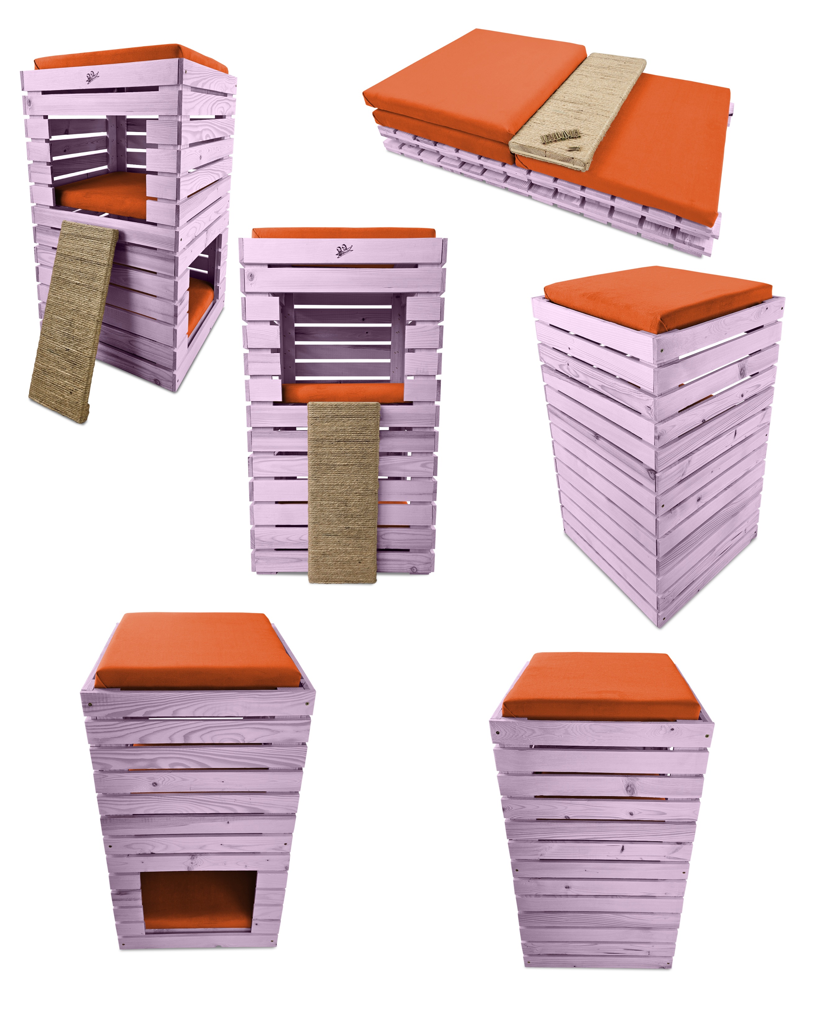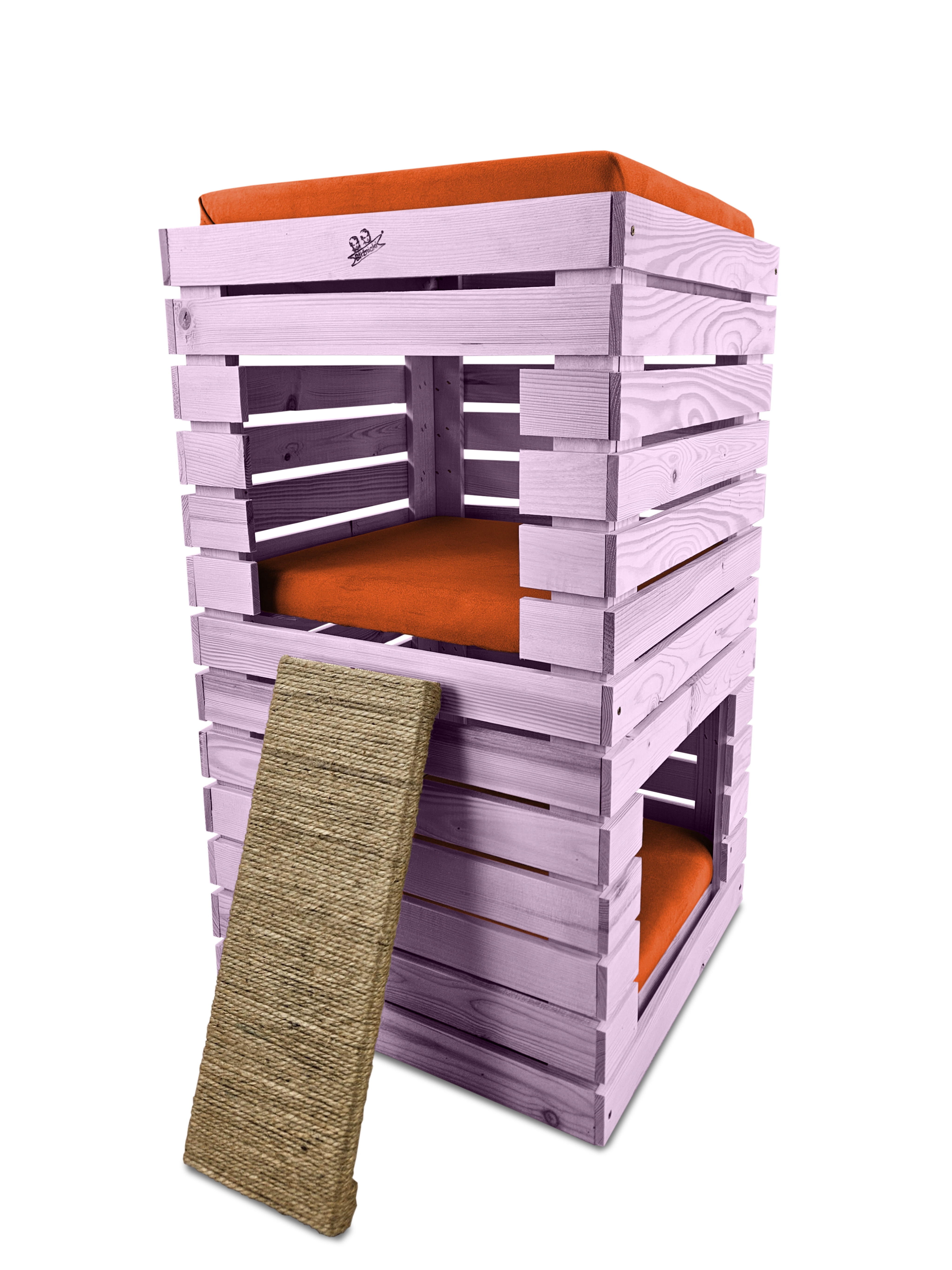 - Budka w kolorze JASNOFIOLETOWYM, posłanie w kolorze POMARAŃCZOWYM