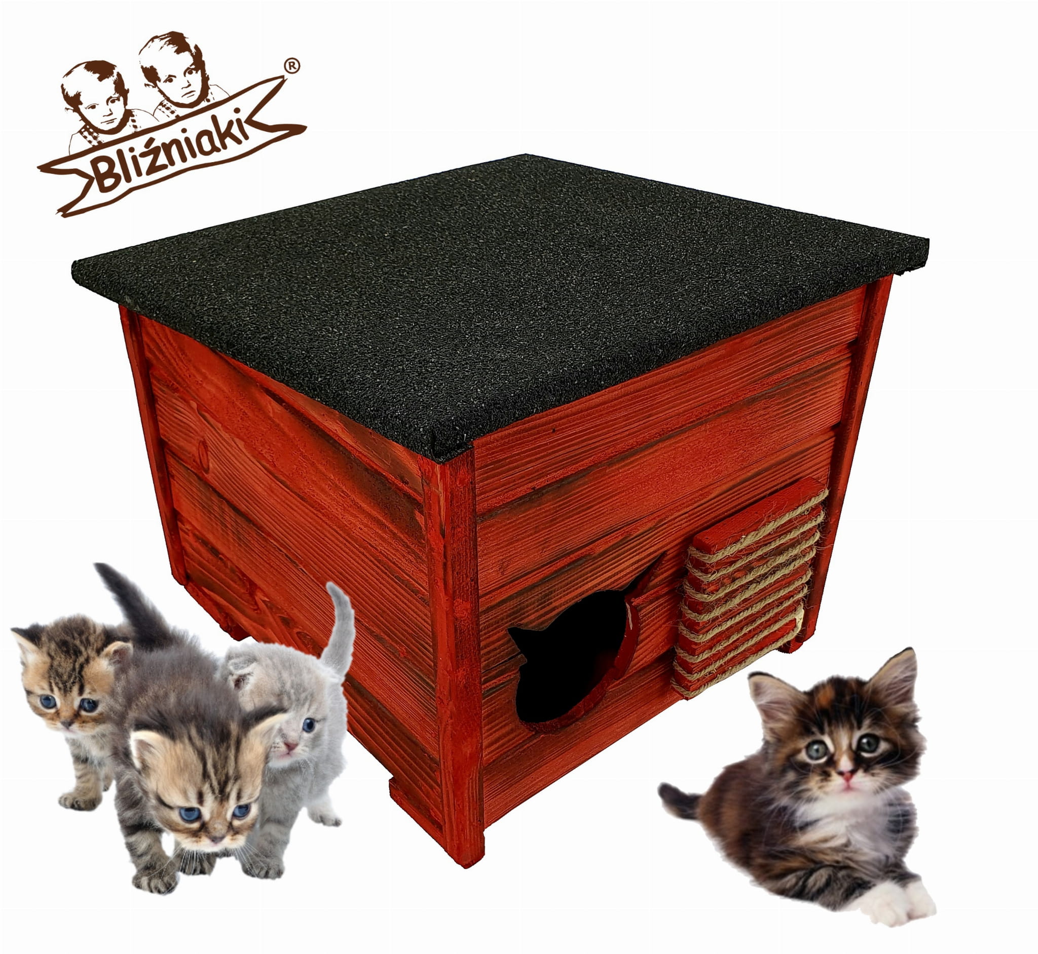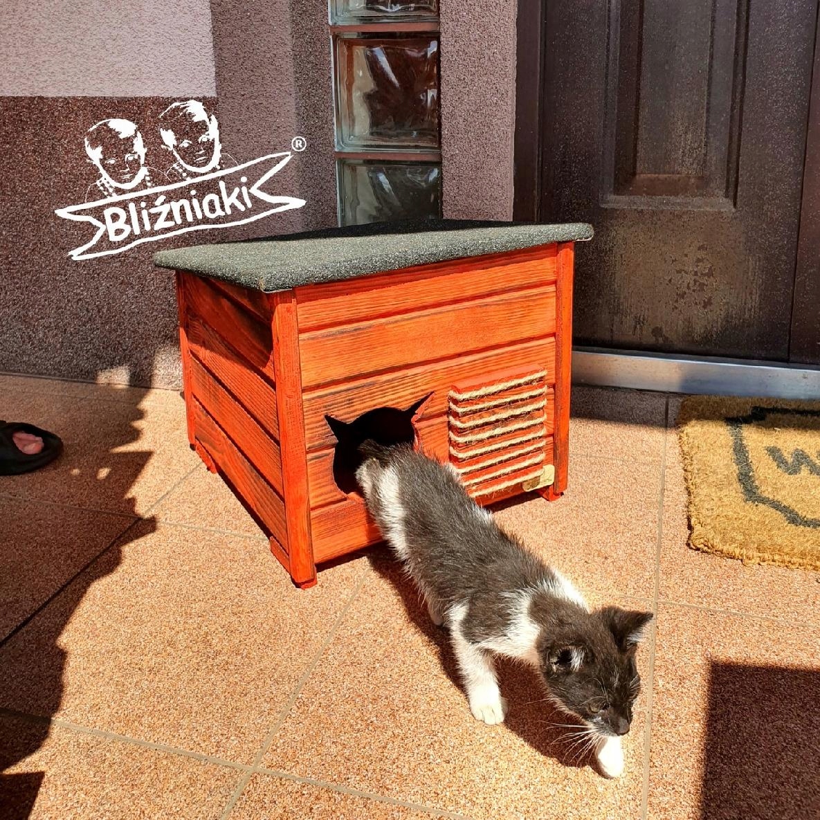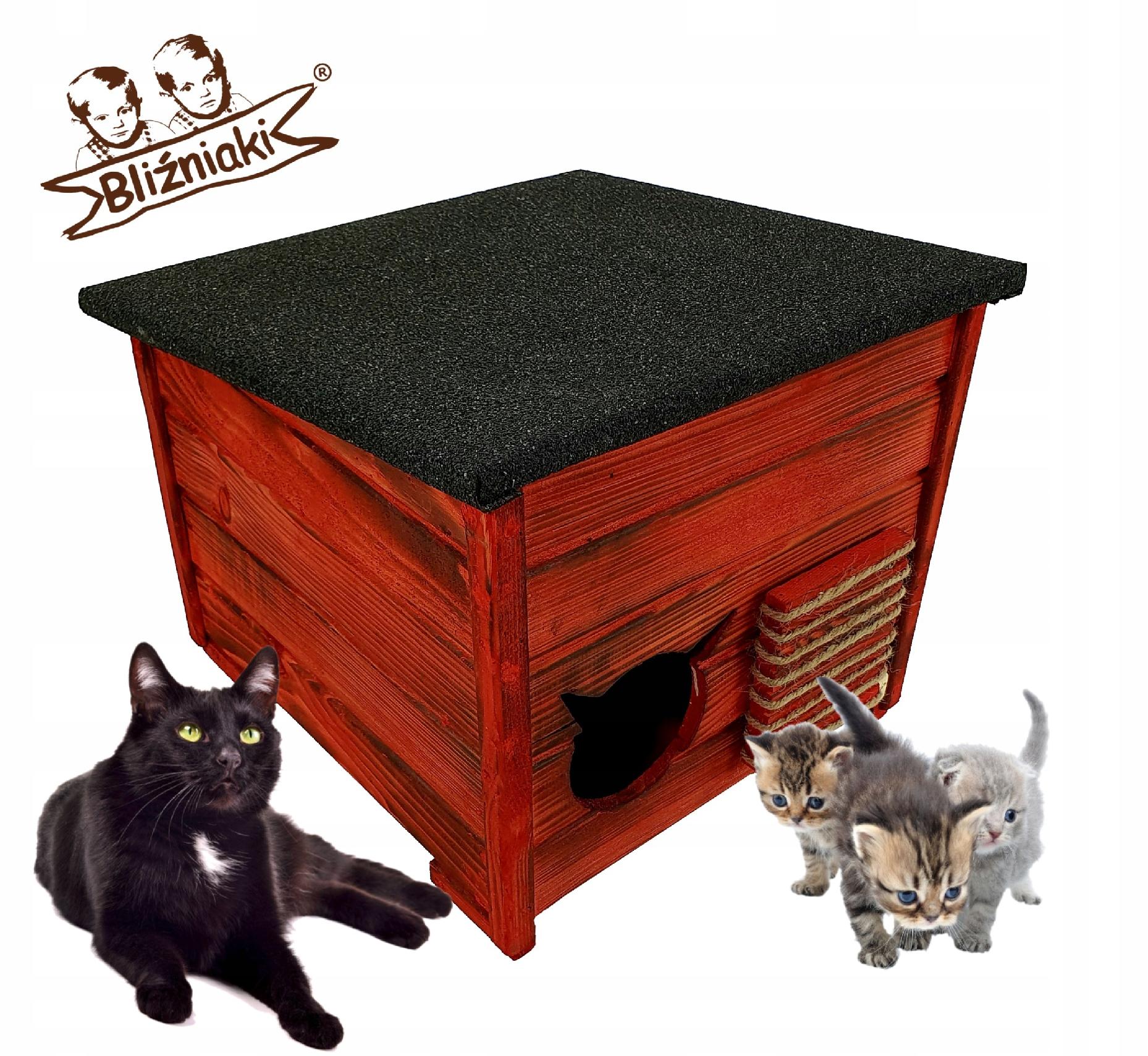Buda dla Kota Kotów Domek z Drewna Opalany Patynowany Ekologicznie Wygodna Budka dla Małych Kotków i Dorosłych Kotów (DOMKOT1 OPAL CB)