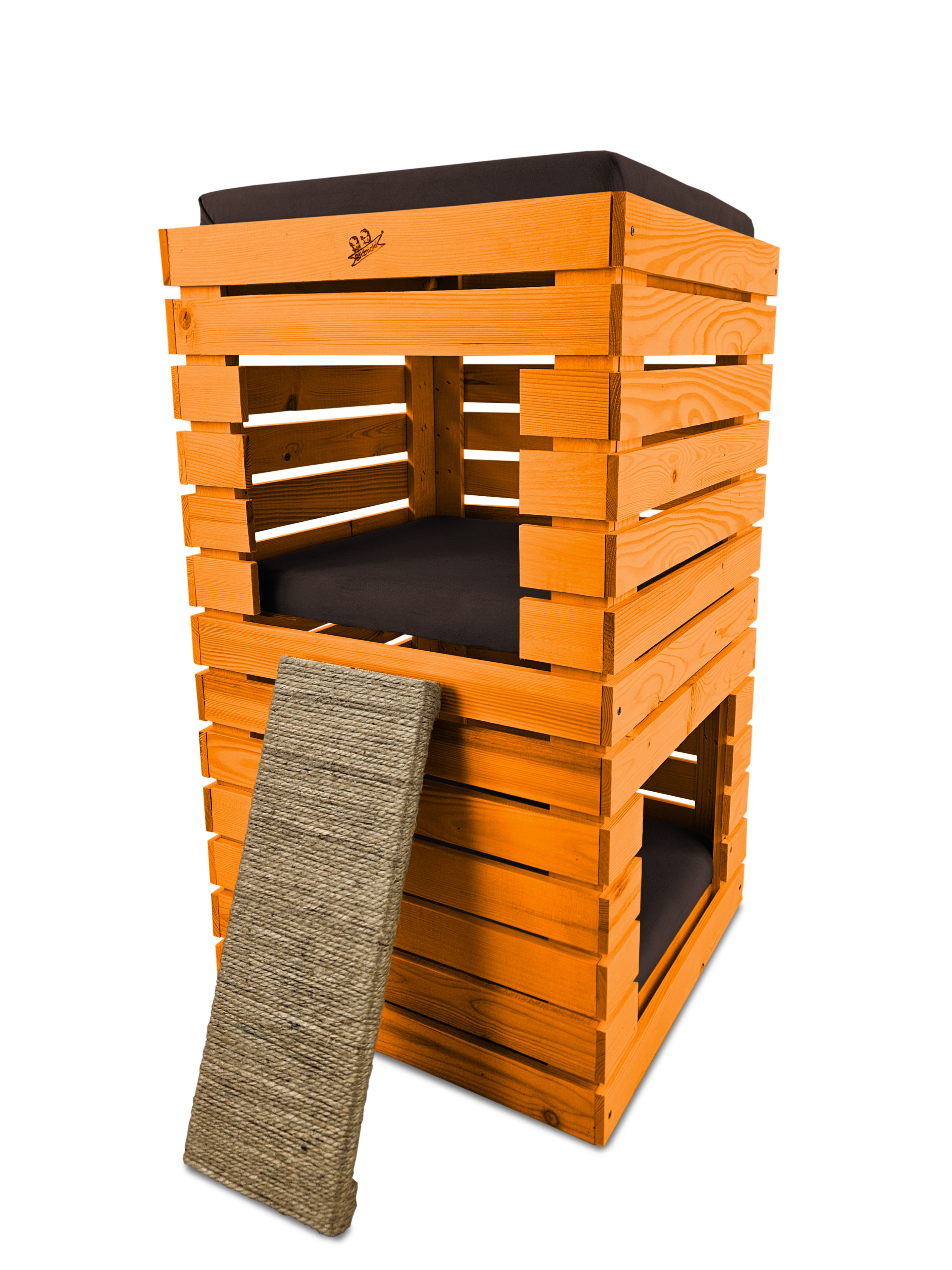 - Budka w kolorze POMARAŃCZOWYM, posłanie w kolorze BRĄZOWYM