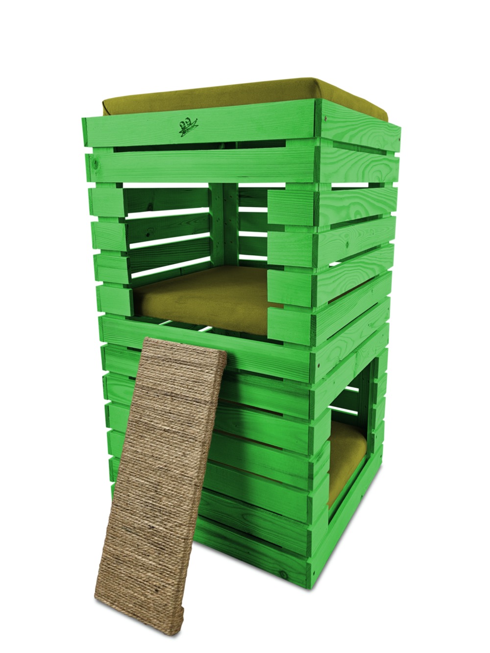Budka, wykonana w całości z drewna, zachwyca swoją estetyką i naturalnością. Kolor ZIELONY harmonijnie współgra z posłaniem w kolorze również ZIELONYM, tworząc kompozycję, która pasuje zarówno do wnętrza mieszkania, jak i ogrodu.