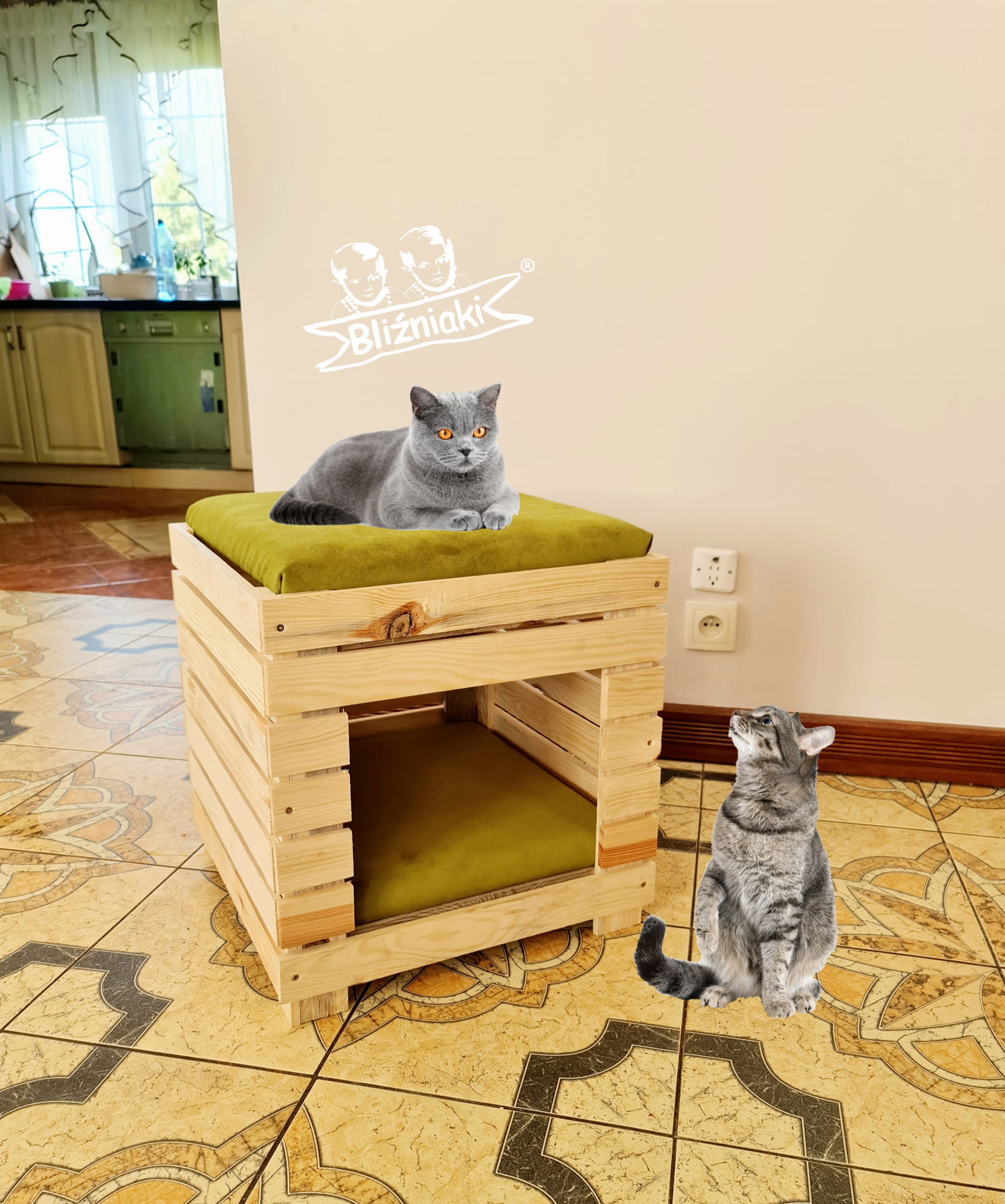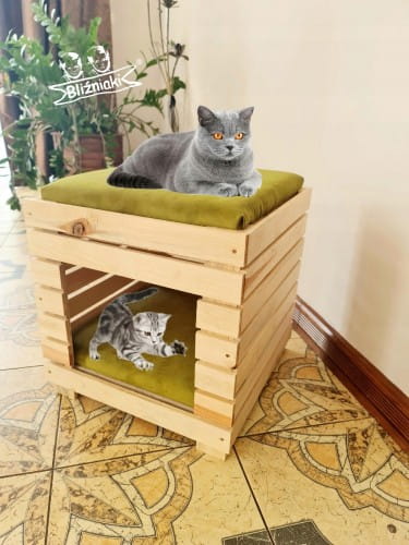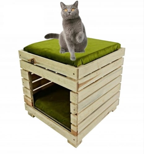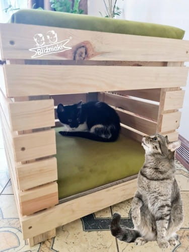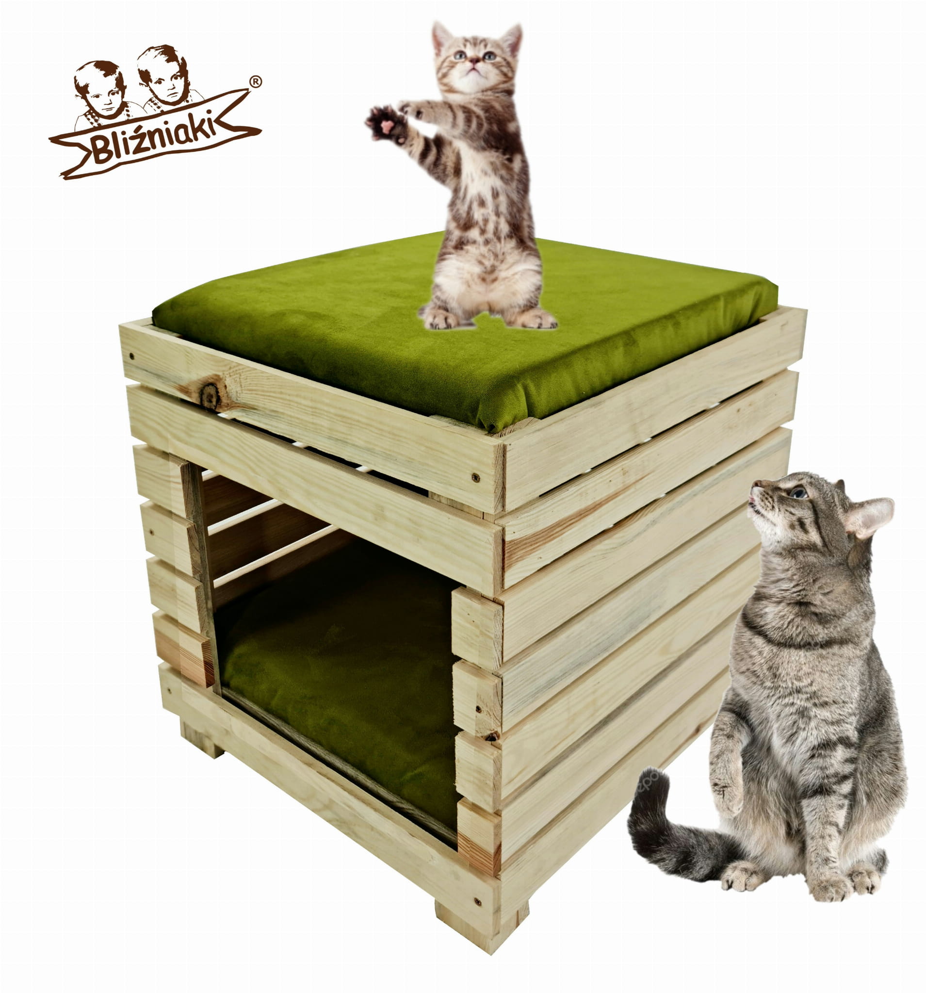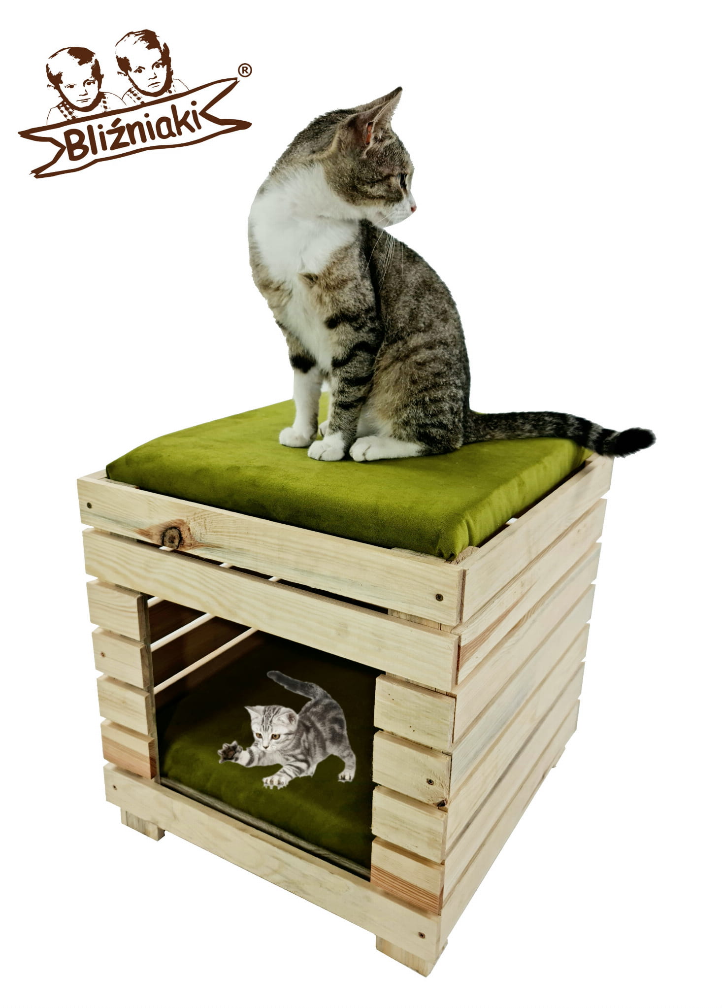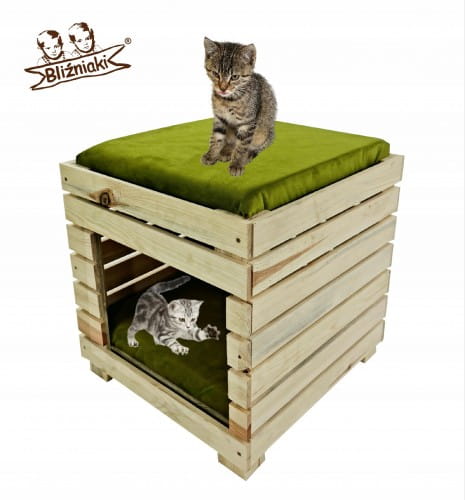 DREWNIANY DOMEK DLA KOTA Z DWOMA LEGOWISKAMI