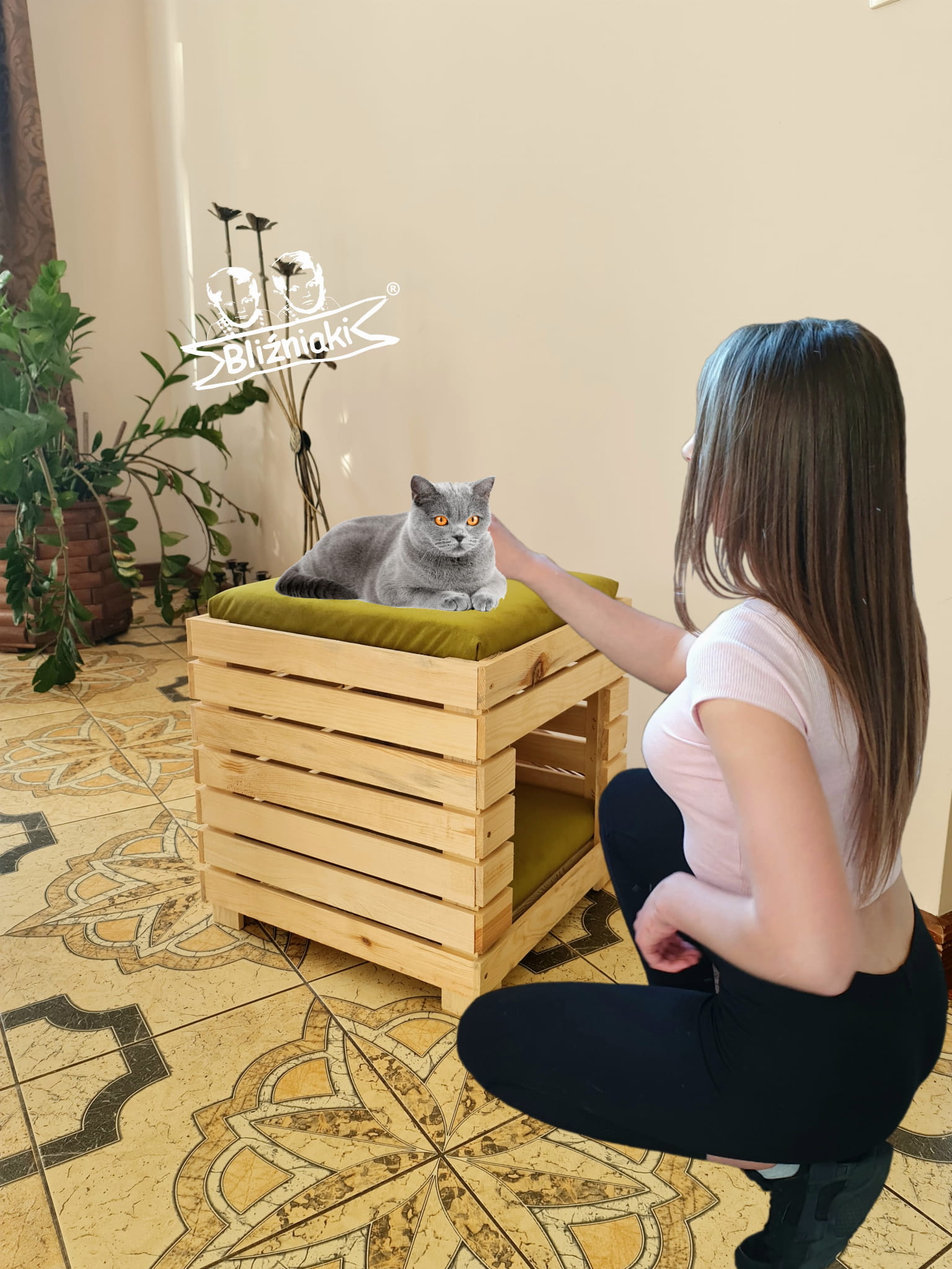 Budka Domek Dla Kota Z Wygodnym Legowiskiem Dodatkowo Siedzisko Puf DOMKOT4 N OBICIE OL