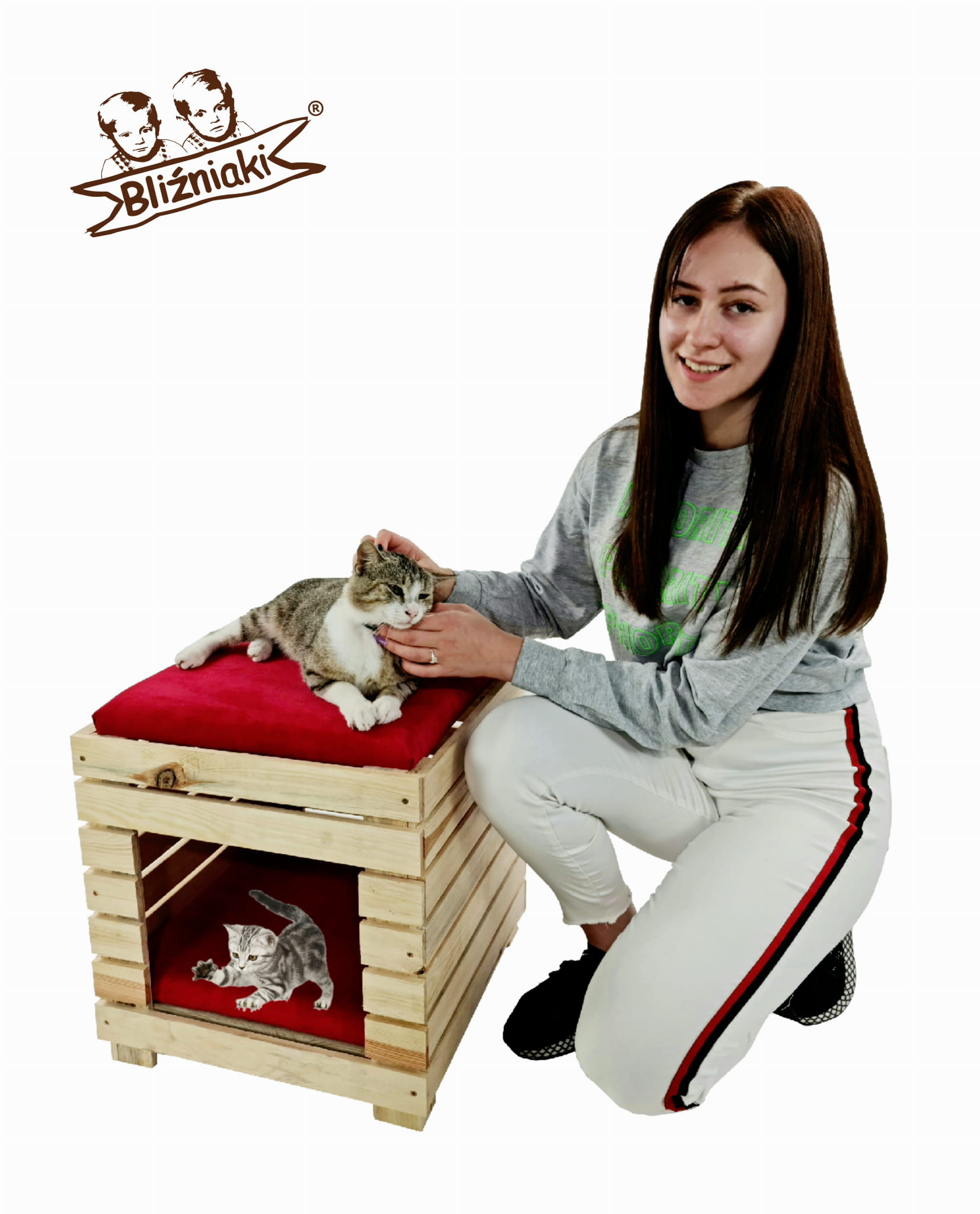 DREWNIANY DOMEK DLA KOTA Z DWOMA LEGOWISKAMI
