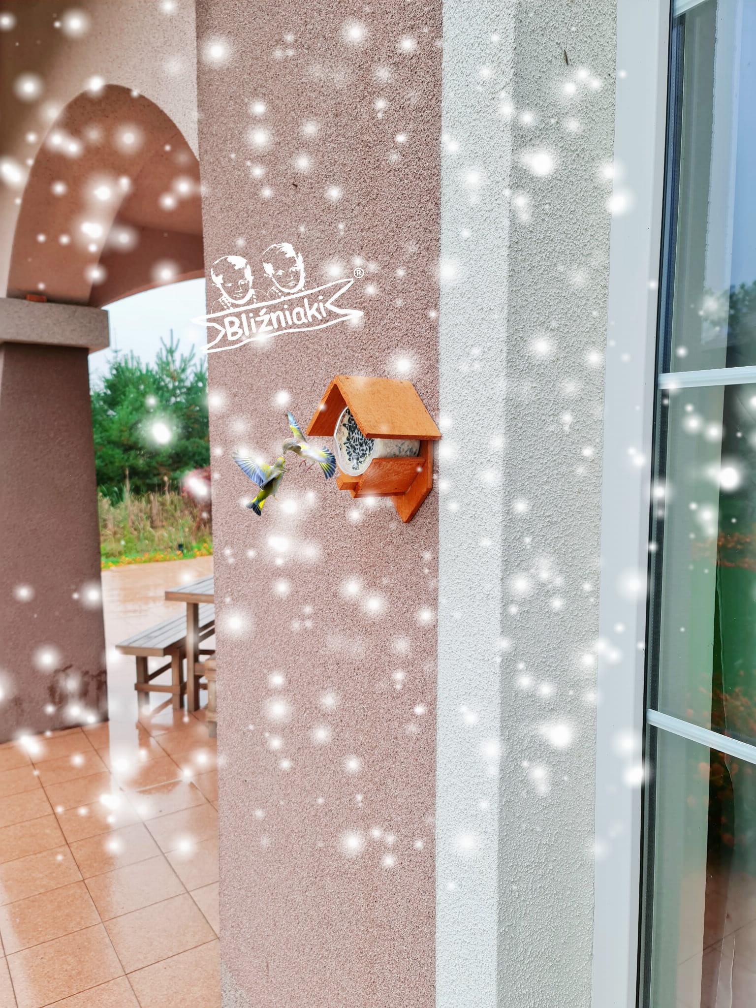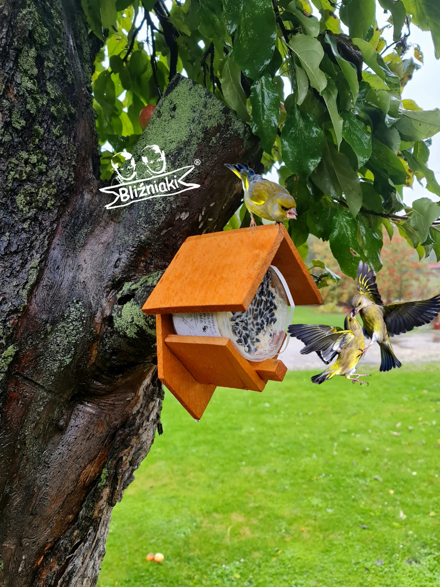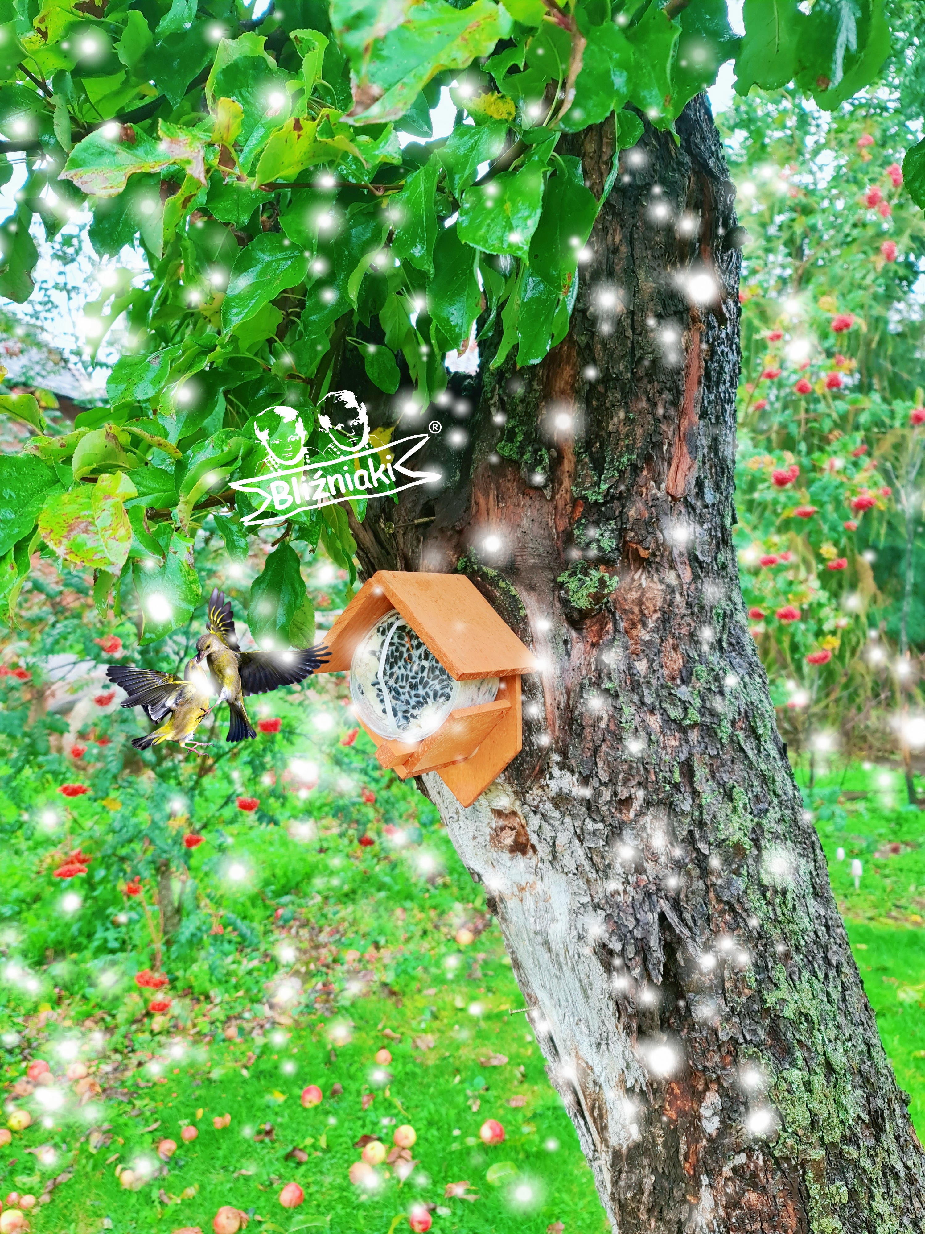 Przedmiotem sprzedaży jest ozdobny drewniany Karmnik dla ptaków