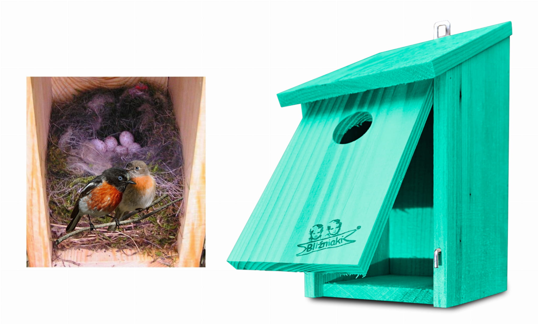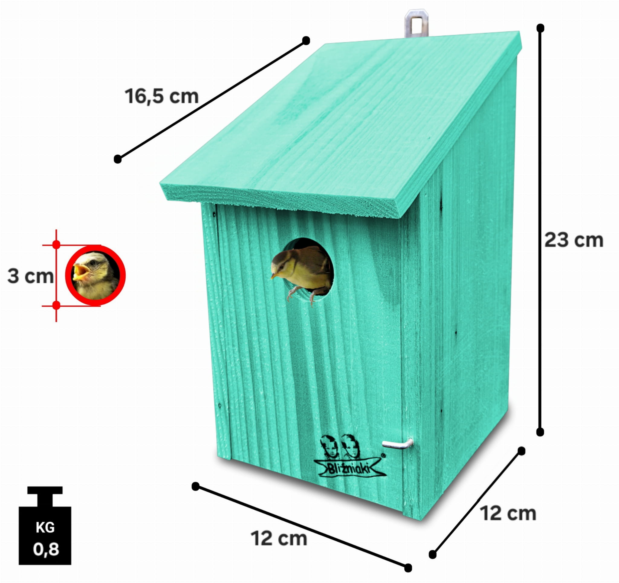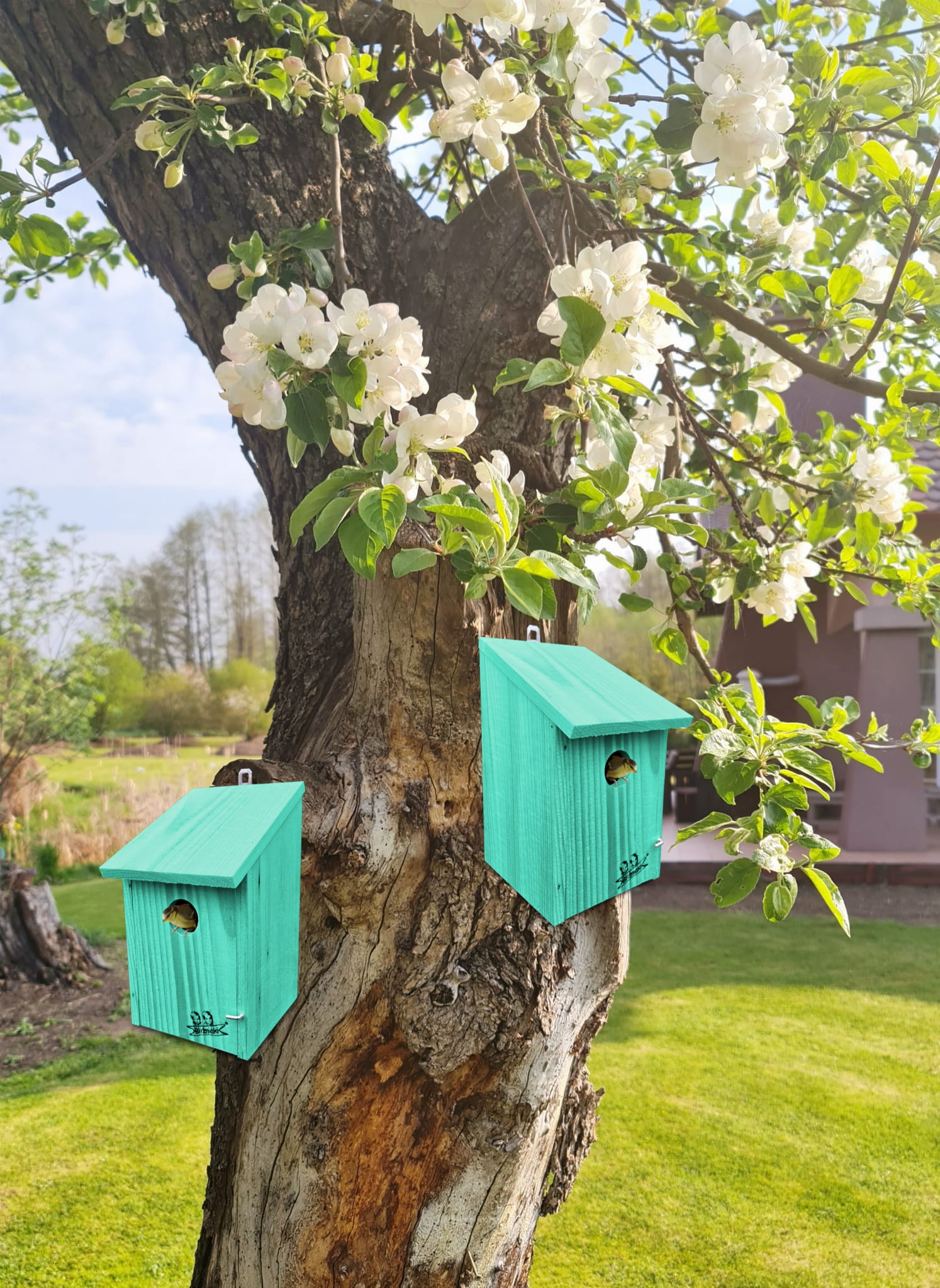 Przestrzeń i wygoda: zaprojektowane specjalnie z myślą o małych ptakach, zapewnią im odpowiednią przestrzeń do swobodnego poruszania się i zakładania gniazd. Skrzynki posiadają wlot o średnicy 30 mm oraz otwieraną przednią ścianę.