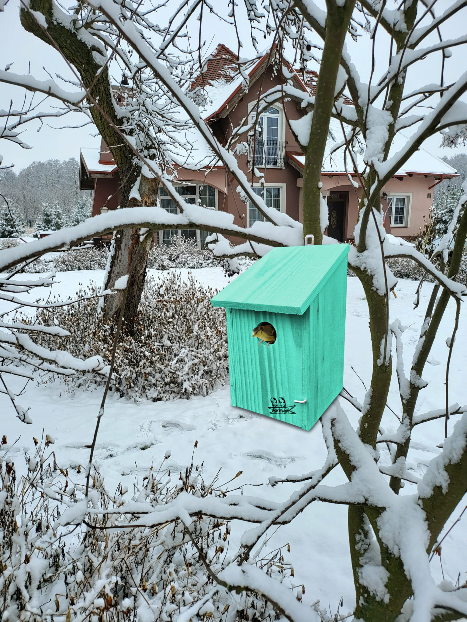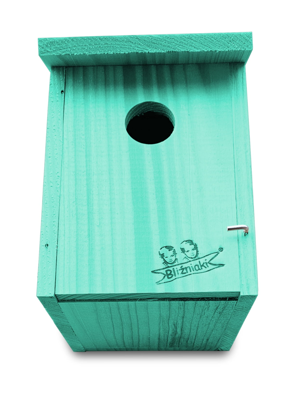 Produkt wykonany został z suszonego drewna sosnowego. Budka w kolorze MORSKIEJ ZIELENI jest zabezpieczona metodą impregnowania. Środek na bazie wody użyty do impregnacji jest w pełni ekologiczny i bezpieczny dla ludzi i zwierząt. Zabezpieczone w taki sposób drewno sprawia, że budka lęgowa jest odporna na szkodliwe działanie wody oraz wilgoci, promieni UV, a także grzybów i pleśni, może być więc przechowywana przez cały rok na zewnątrz.
