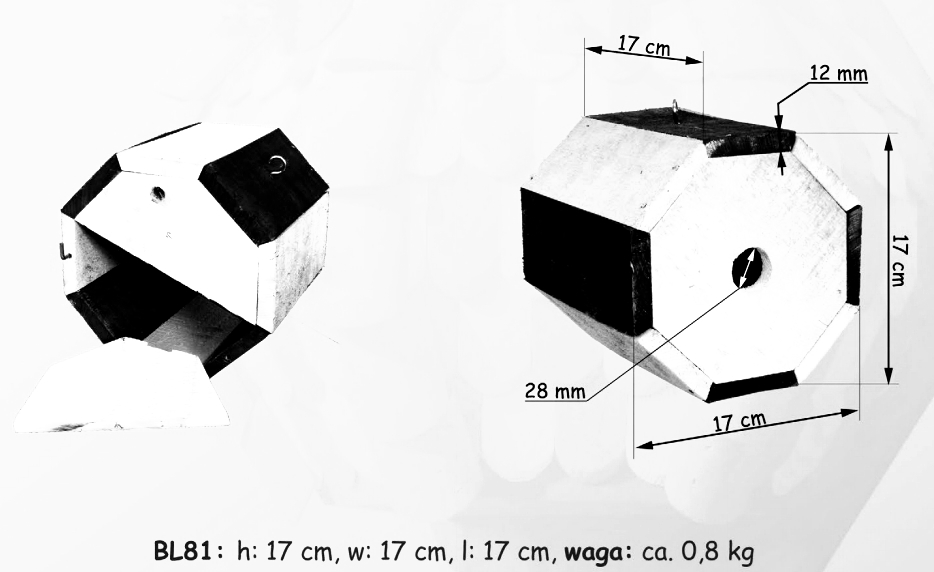 Oferowana budka przeznaczona jest - ze względu na średnicę otworu - dla dwóch gatunków ptaków: sikorki, wróble (średnica otworu 3,2cm) a także inne ptaszki.