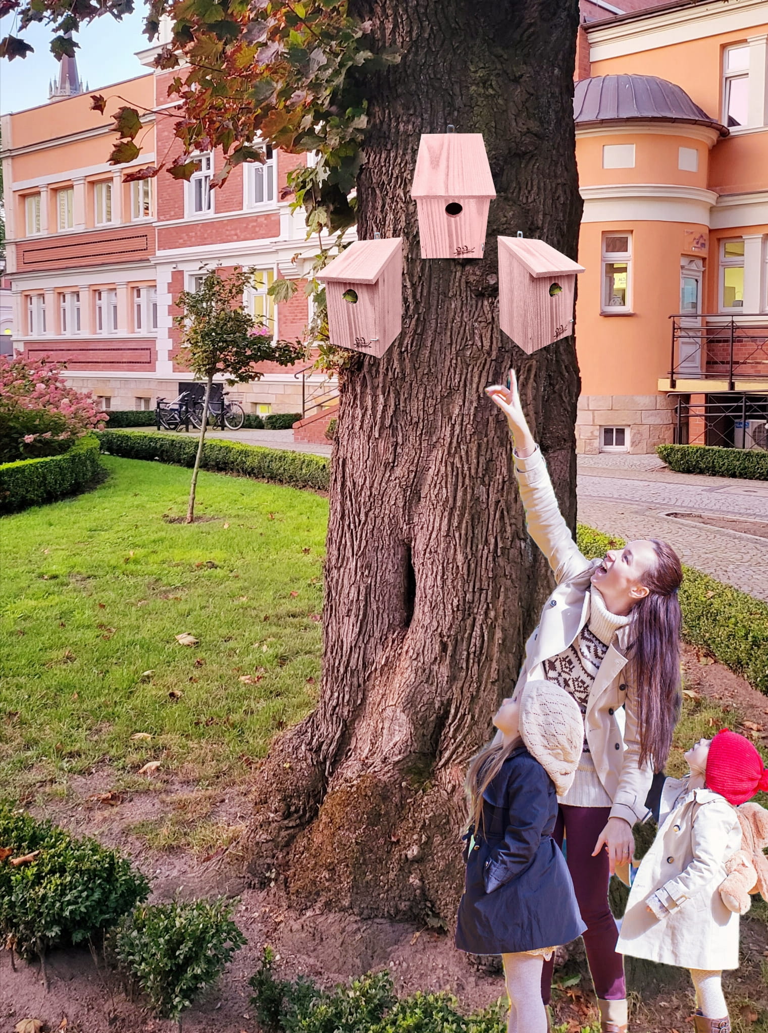 Budki lęgowe, które imitują dziuplę w drzewie warto umieścić w miejscu zacienionym, spokojnym, w odległości ok. 2 m od siebie.