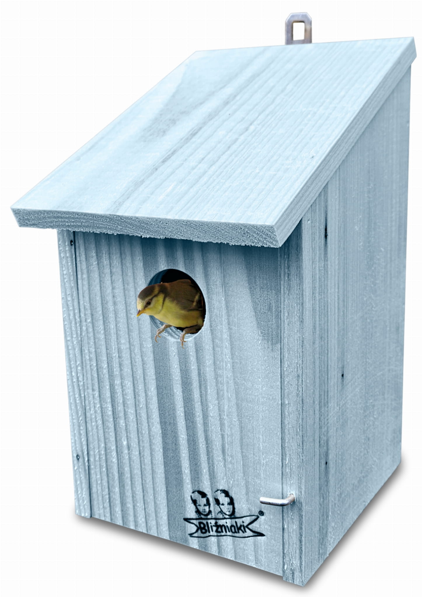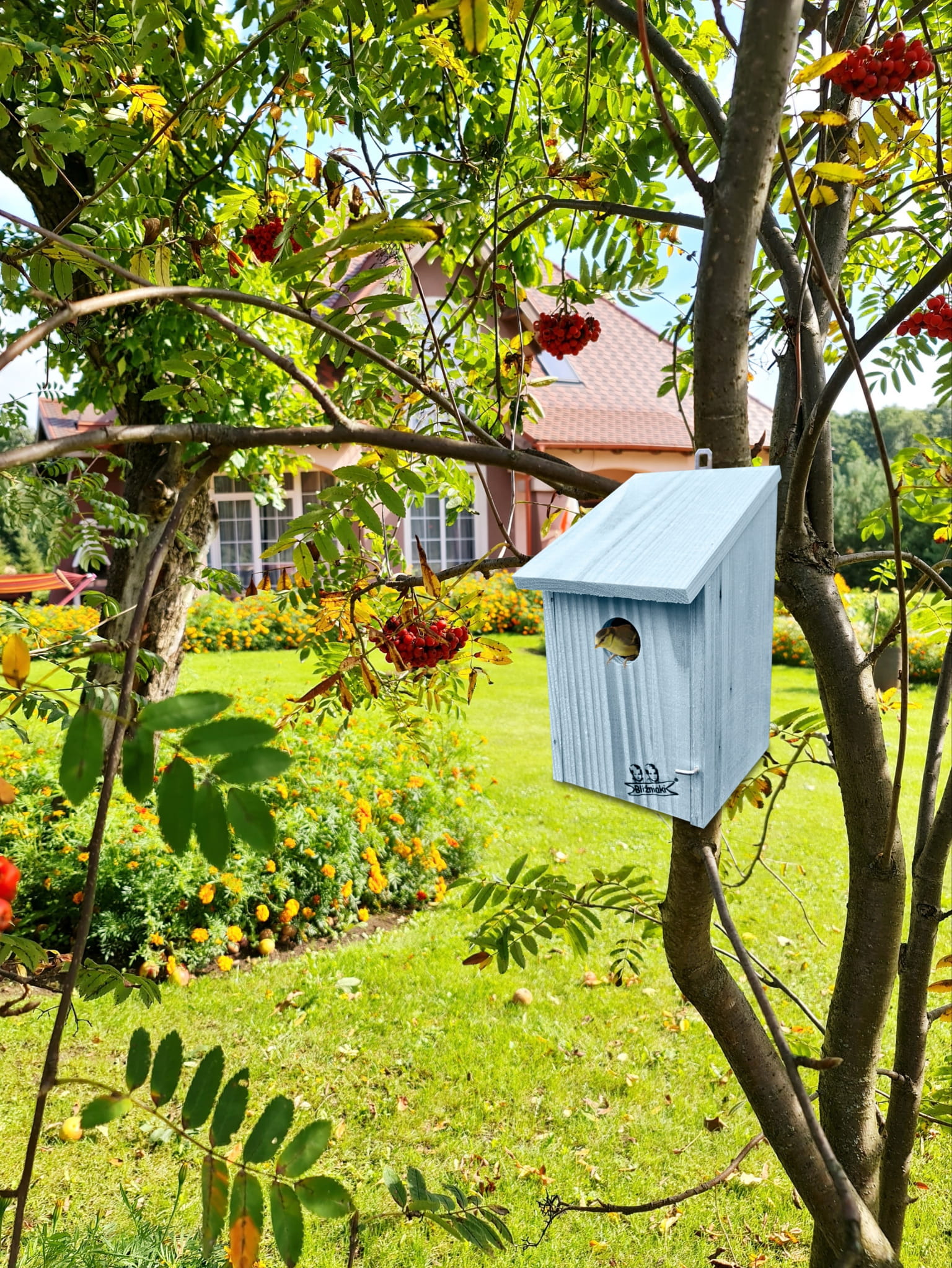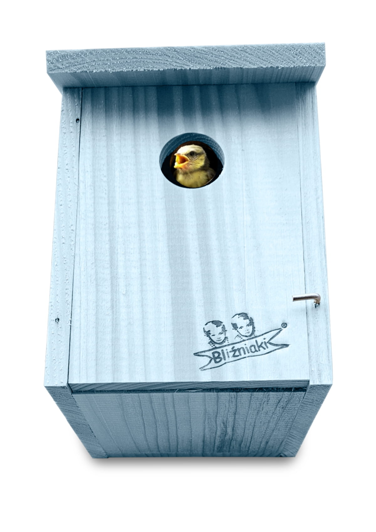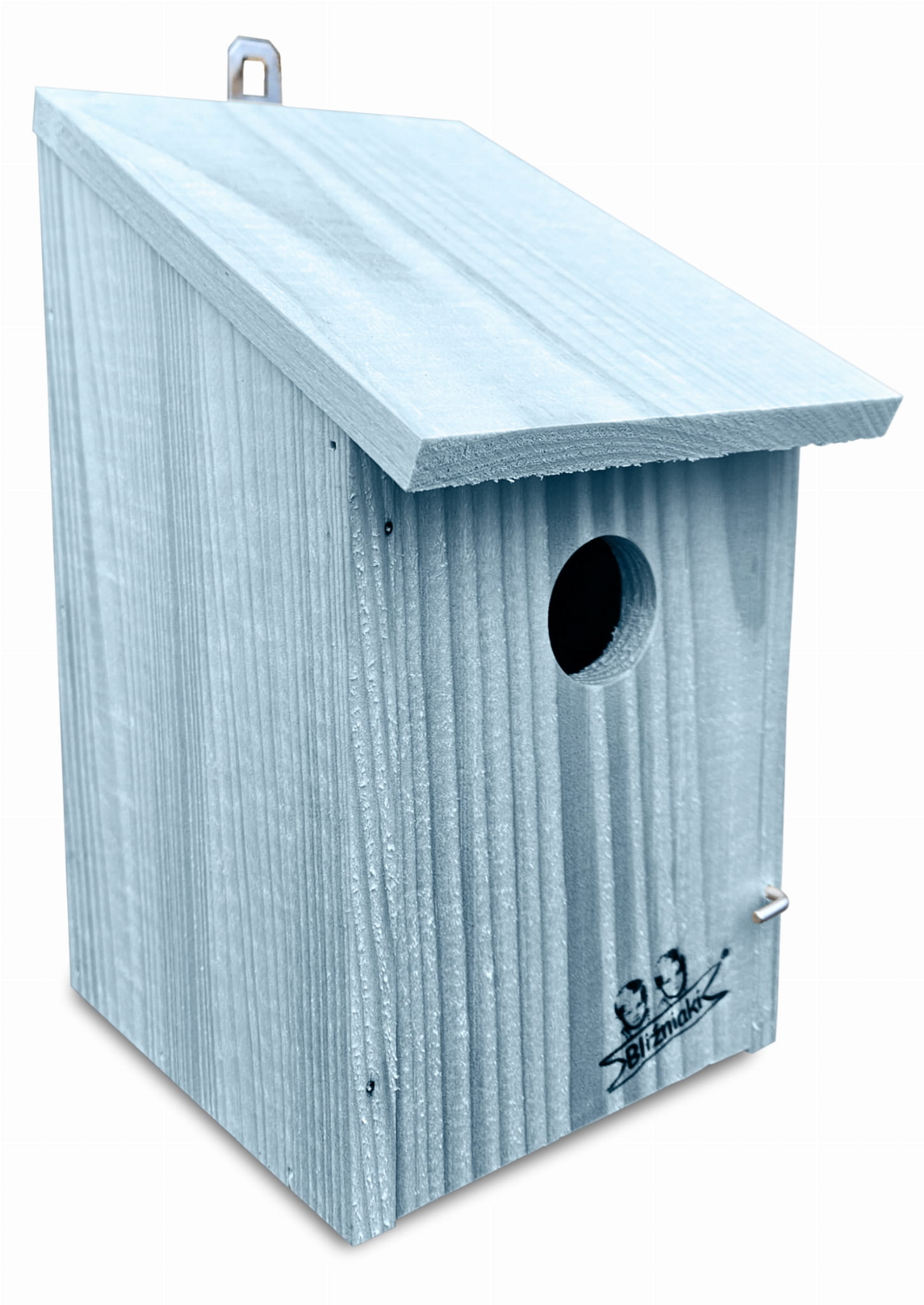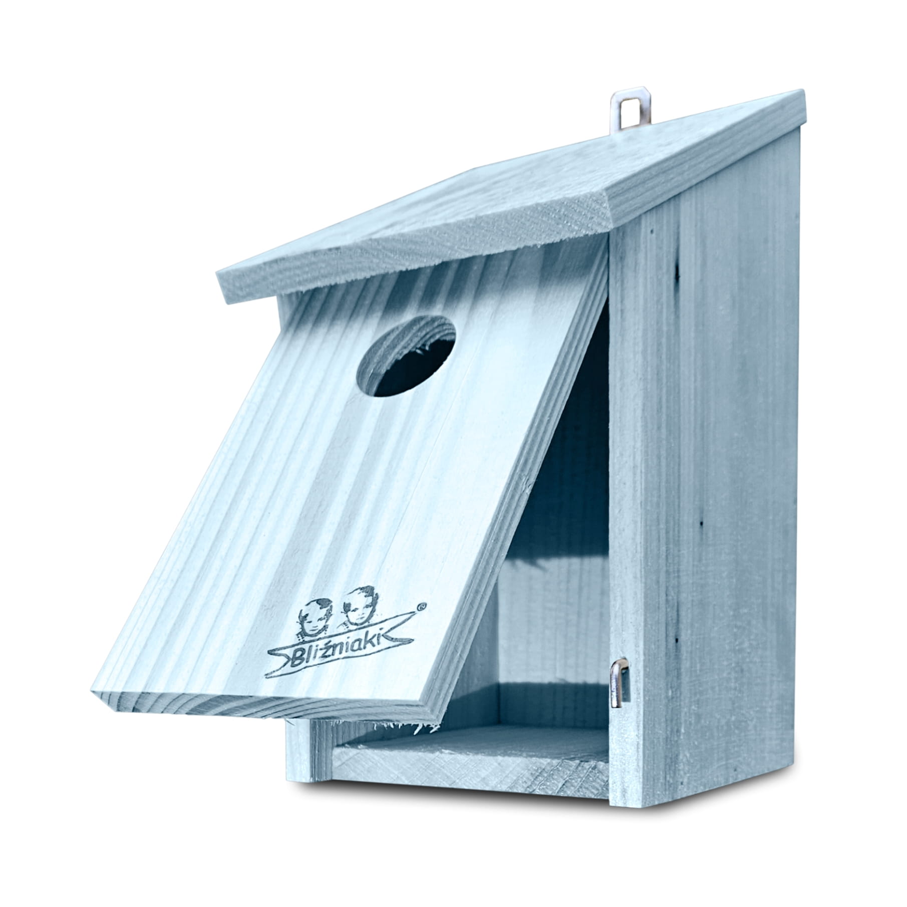 Produkt wykonany został z suszonego drewna sosnowego. Budka w kolorze PASTELOWYM NIEBIESKIM jest zabezpieczona metodą impregnowania. Środek na bazie wody użyty do impregnacji jest w pełni ekologiczny i bezpieczny dla ludzi i zwierząt. Zabezpieczone w taki sposób drewno sprawia, że budka lęgowa jest odporna na szkodliwe działanie wody oraz wilgoci, promieni UV, a także grzybów i pleśni, może być więc przechowywana przez cały rok na zewnątrz.
