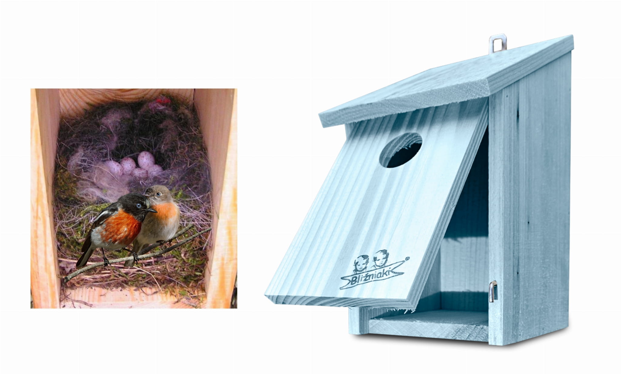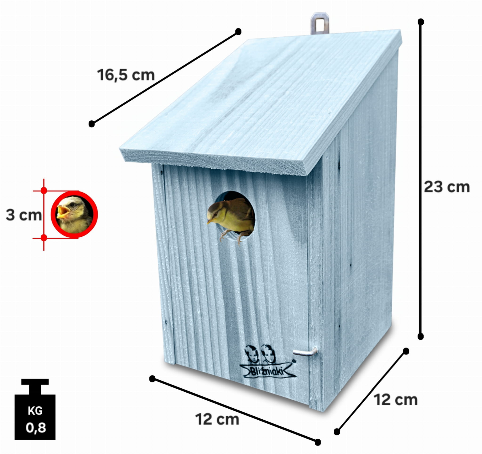 Przestrzeń i wygoda: zaprojektowane specjalnie z myślą o małych ptakach, zapewnią im odpowiednią przestrzeń do swobodnego poruszania się i zakładania gniazd. Skrzynki posiadają wlot o średnicy 30 mm oraz otwieraną przednią ścianę.