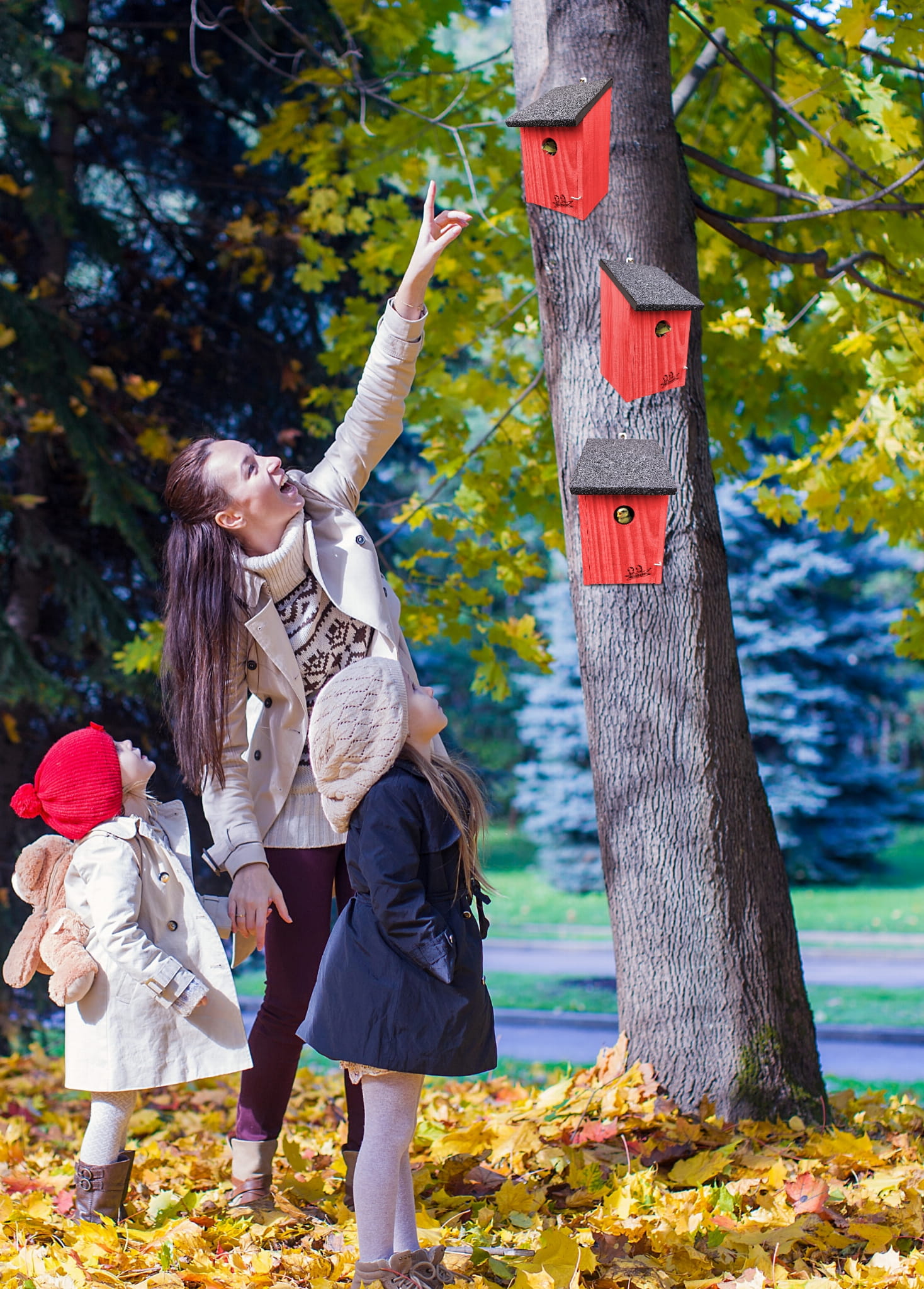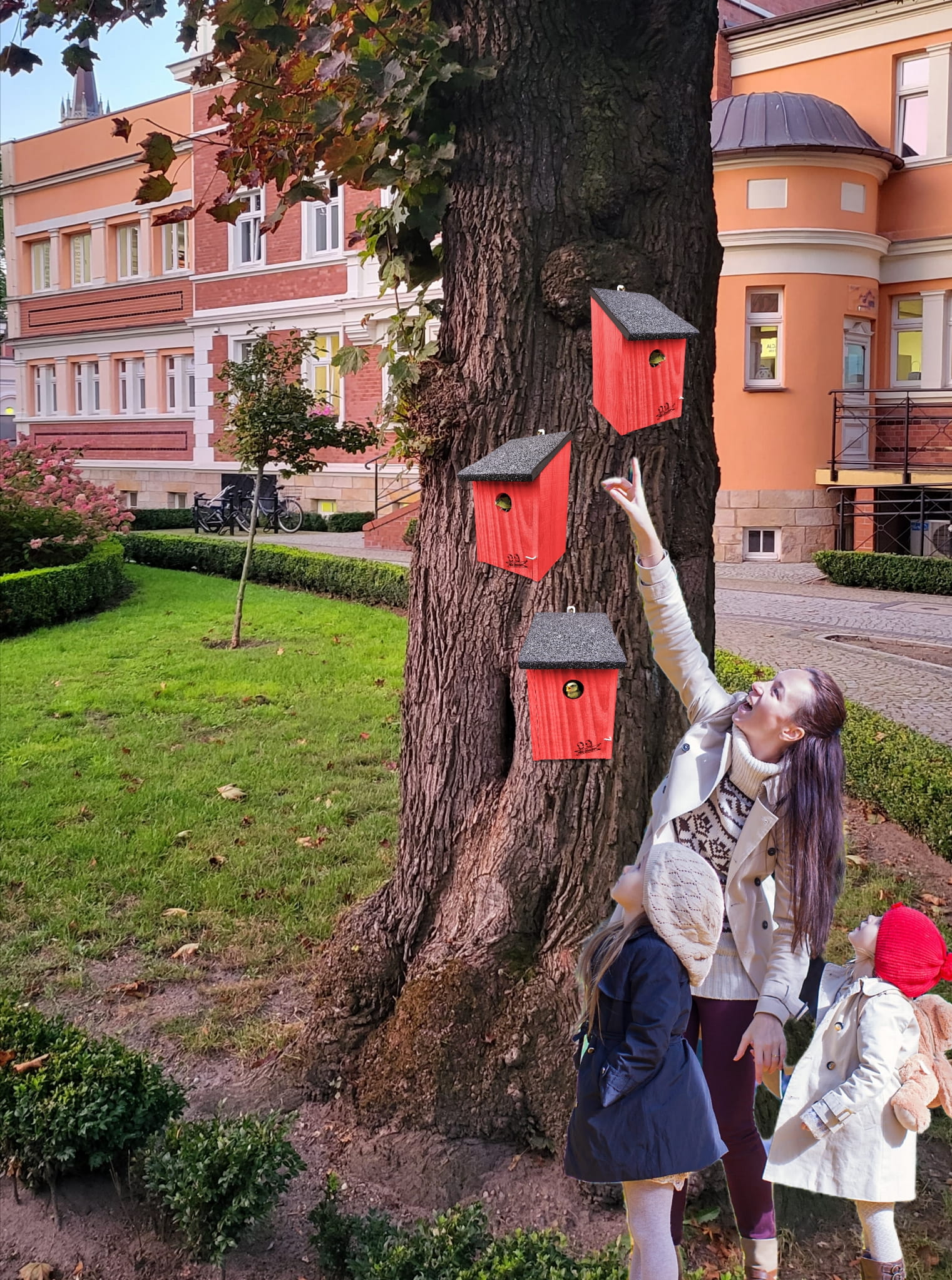 Budki lęgowe, które imitują dziuplę w drzewie warto umieścić w miejscu zacienionym, spokojnym, w odległości ok. 2 m od siebie.