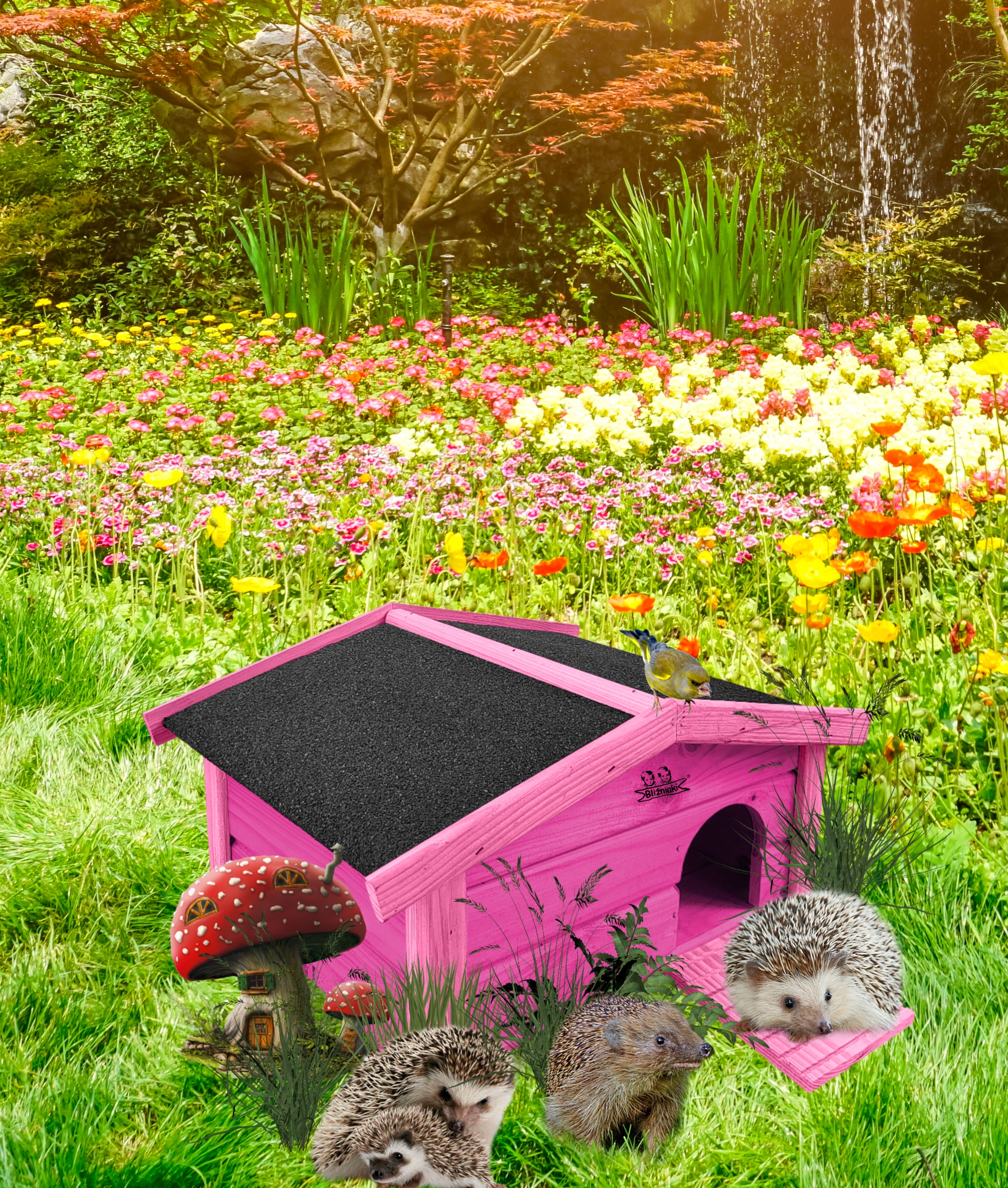 - domek dla jeża stanowi również dekoracyjny element malej architektury ogrodowej