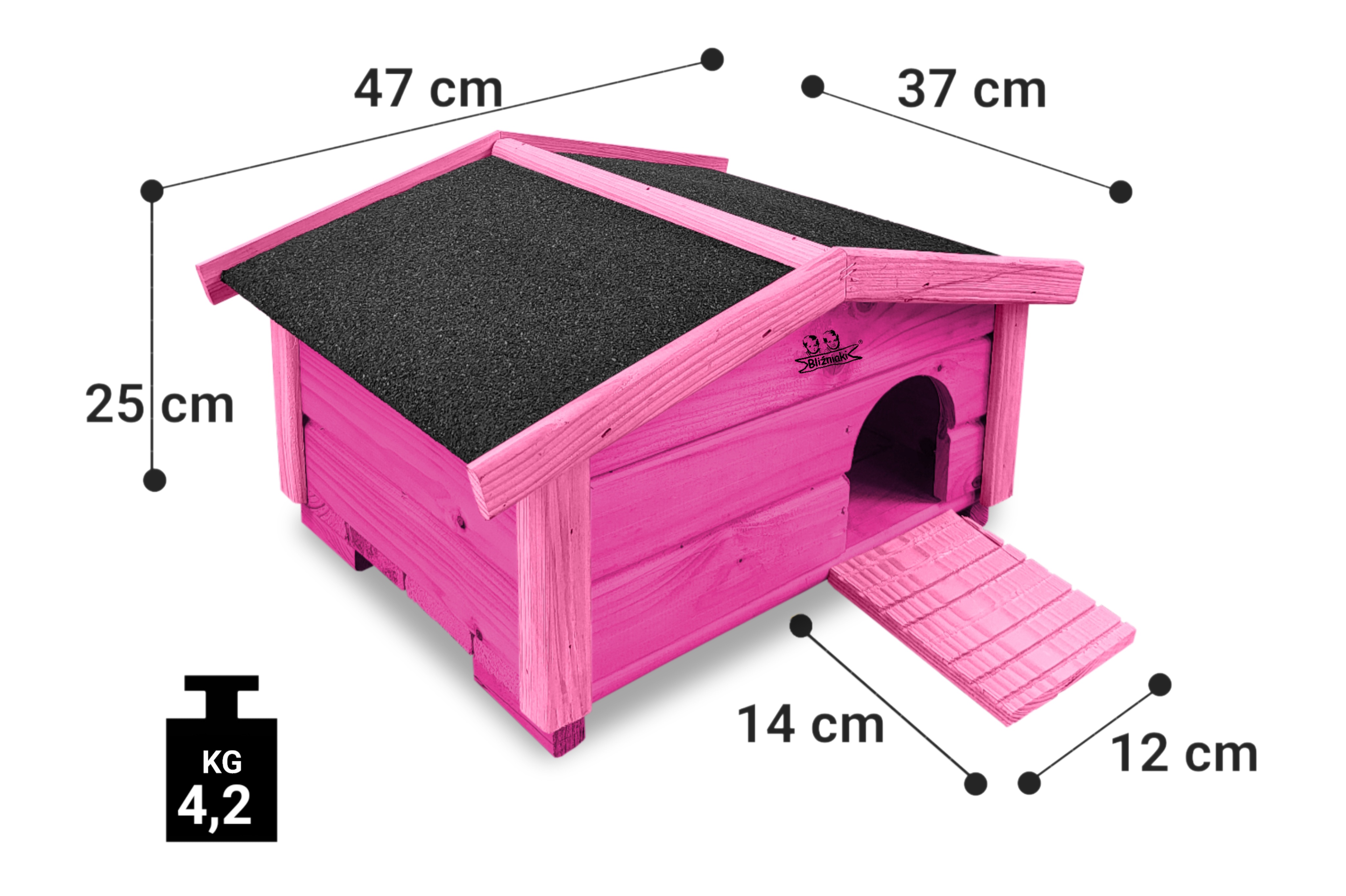 Na tej aukcji oferujemy domek dla jeża HDJ10 RÓ RÓP kolor CIEMNORÓŻOWY Z JASNORÓŻOWYMI ELEMENTAMI, domek dla jeża został zaimpregnowany środkiem na bazie wody, co czyni go dekoracyjnym a także przyjaznym dla przyrody.