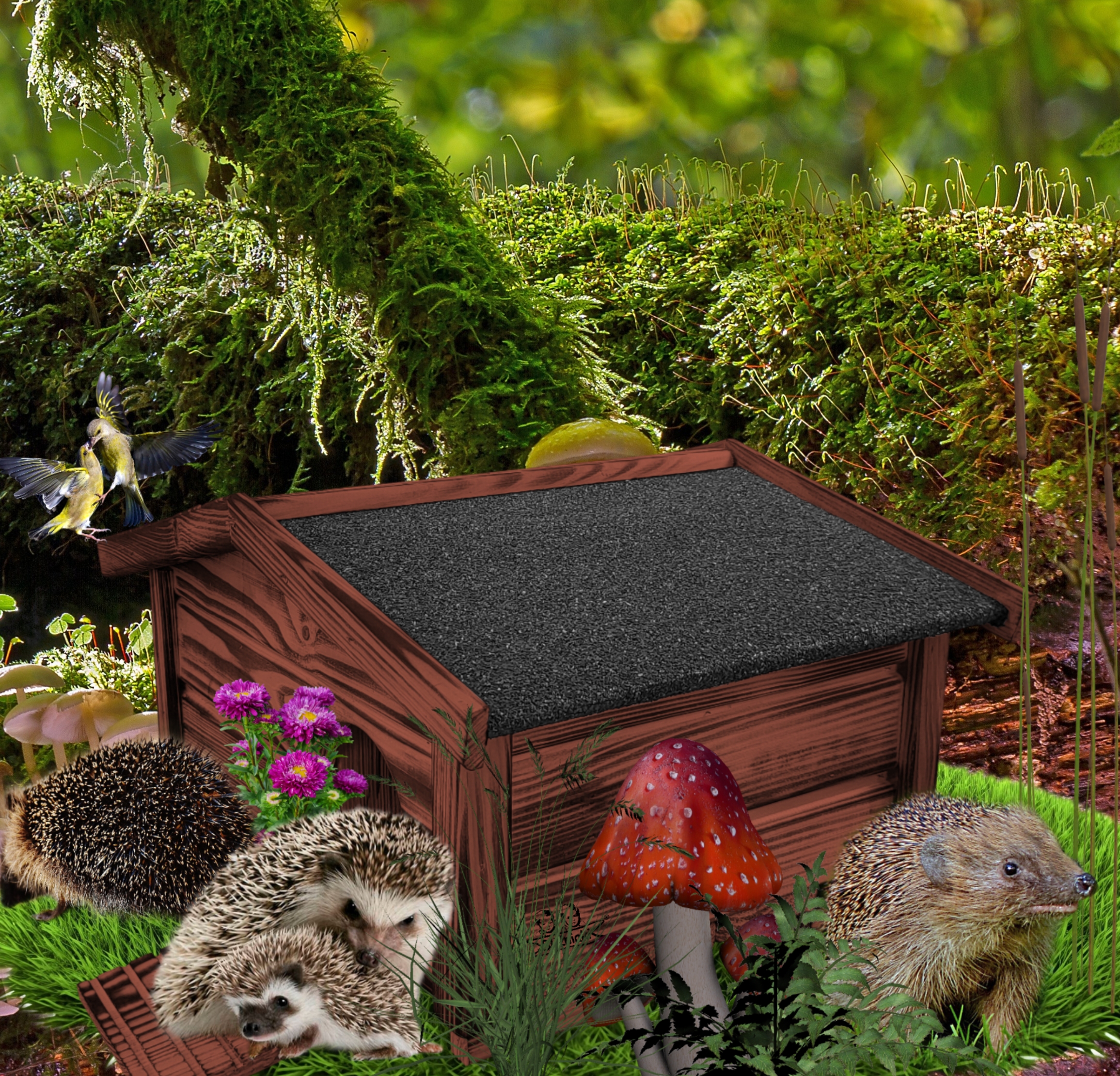 Domek drewniany dla jeża stanowić będzie niezwykle dekoracyjny element architektury ogrodowej jako schronienie całoroczne dla jeża, miejsce do hibernacji od jesieni do wiosny a także jako domek do lęgowania i bytowania tych przyjaznych stworzeń w pozostałej części roku.