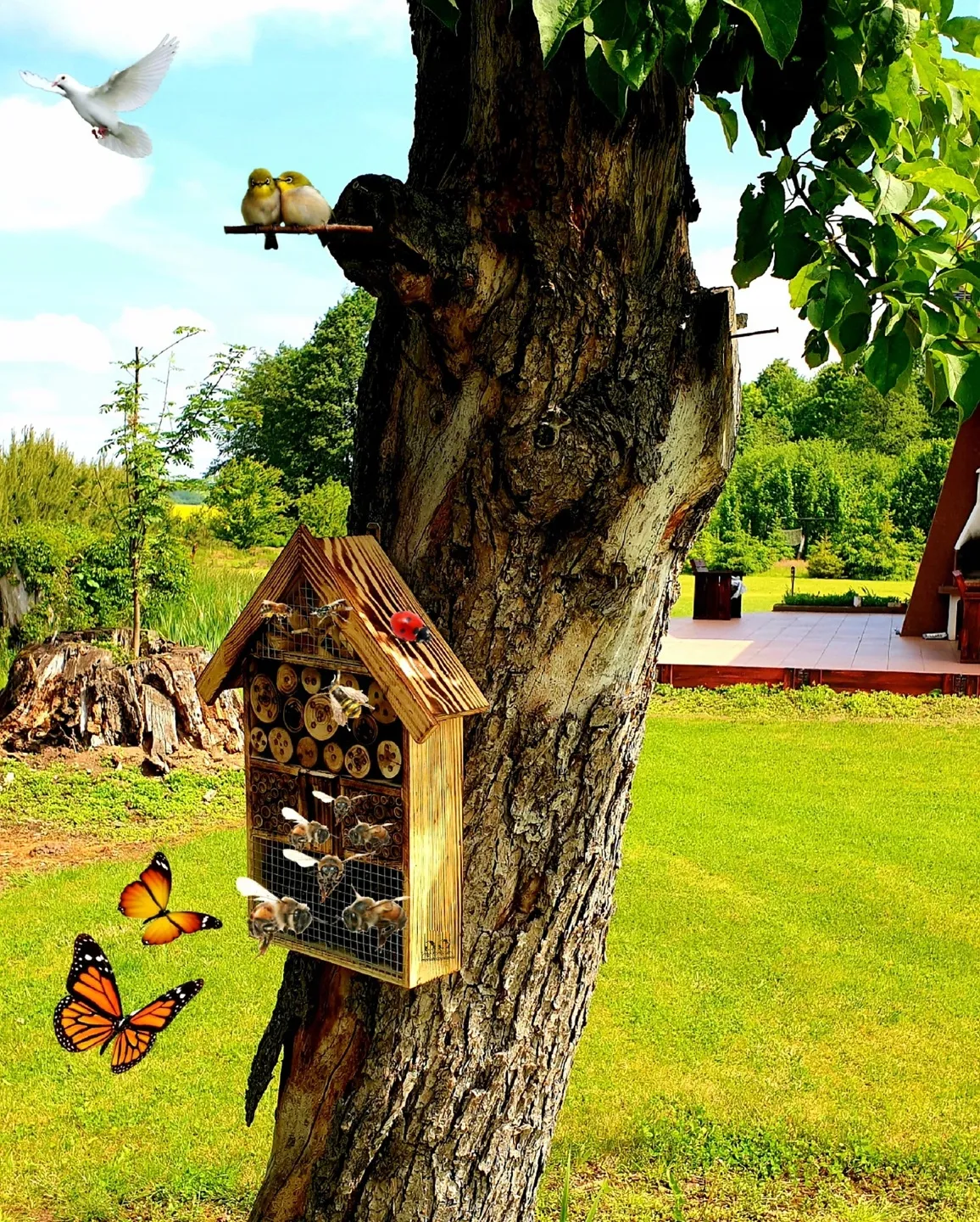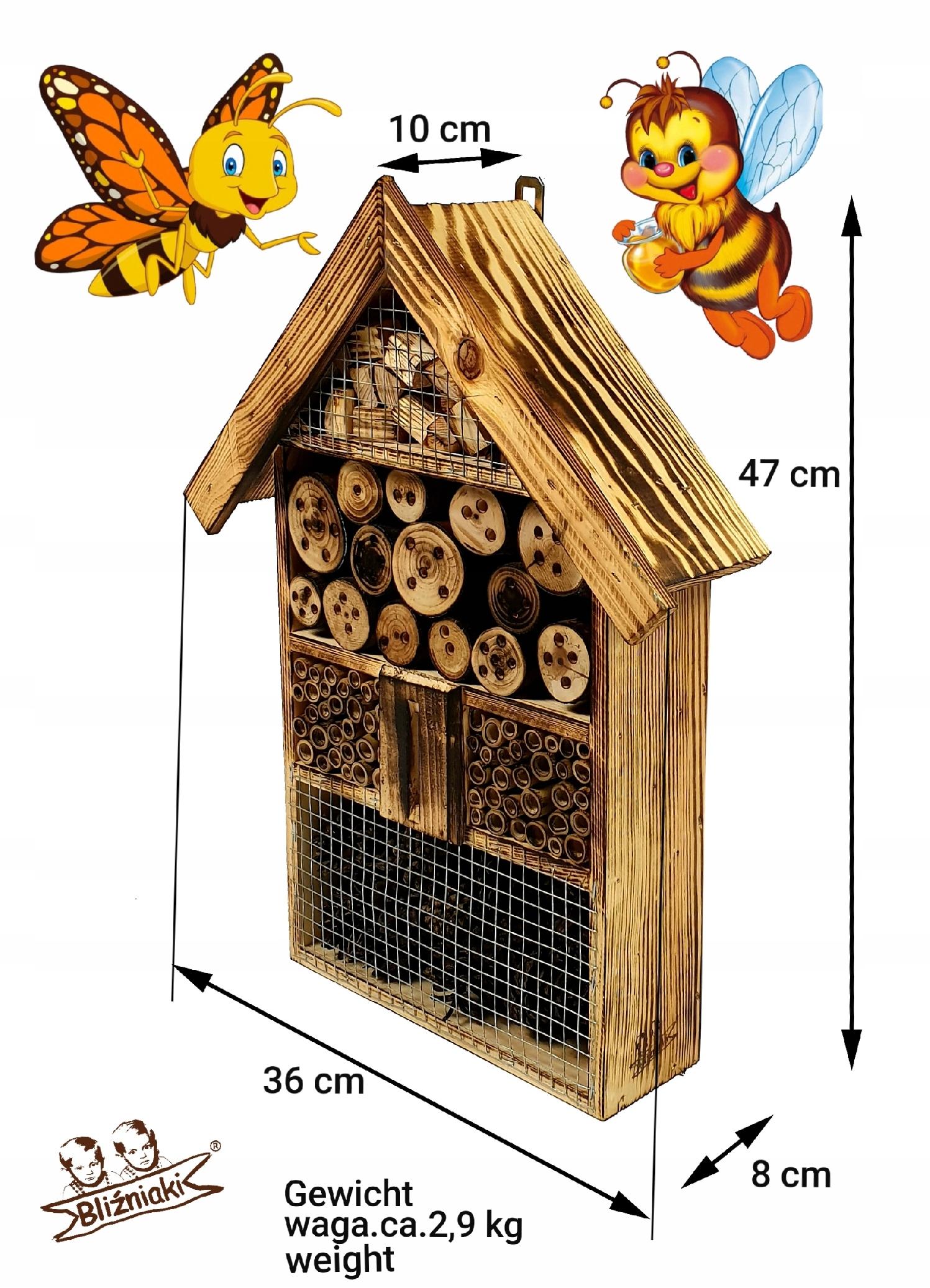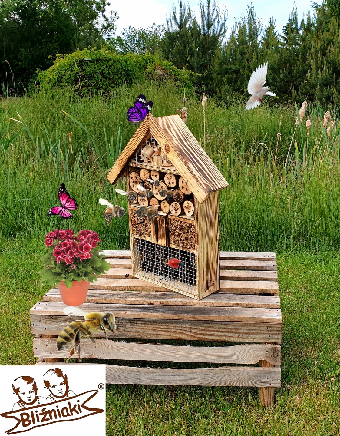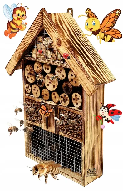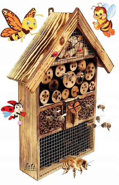 Pożyteczne owady, takie jak pszczoły murarki, biedronki, pszczoły porobnice włochatki, owady z rodziny złotookowatych, motyle, ważki, chrząszcze, błonkówki, bzygi i inne znajdują w nim idealne warunki do składania jaj, budowy gniazd i przetrwania zimy. W ten sposób domek wspomaga naturalne procesy zapylania roślin, zwalczania szkodników i utrzymania równowagi ekosystemu.