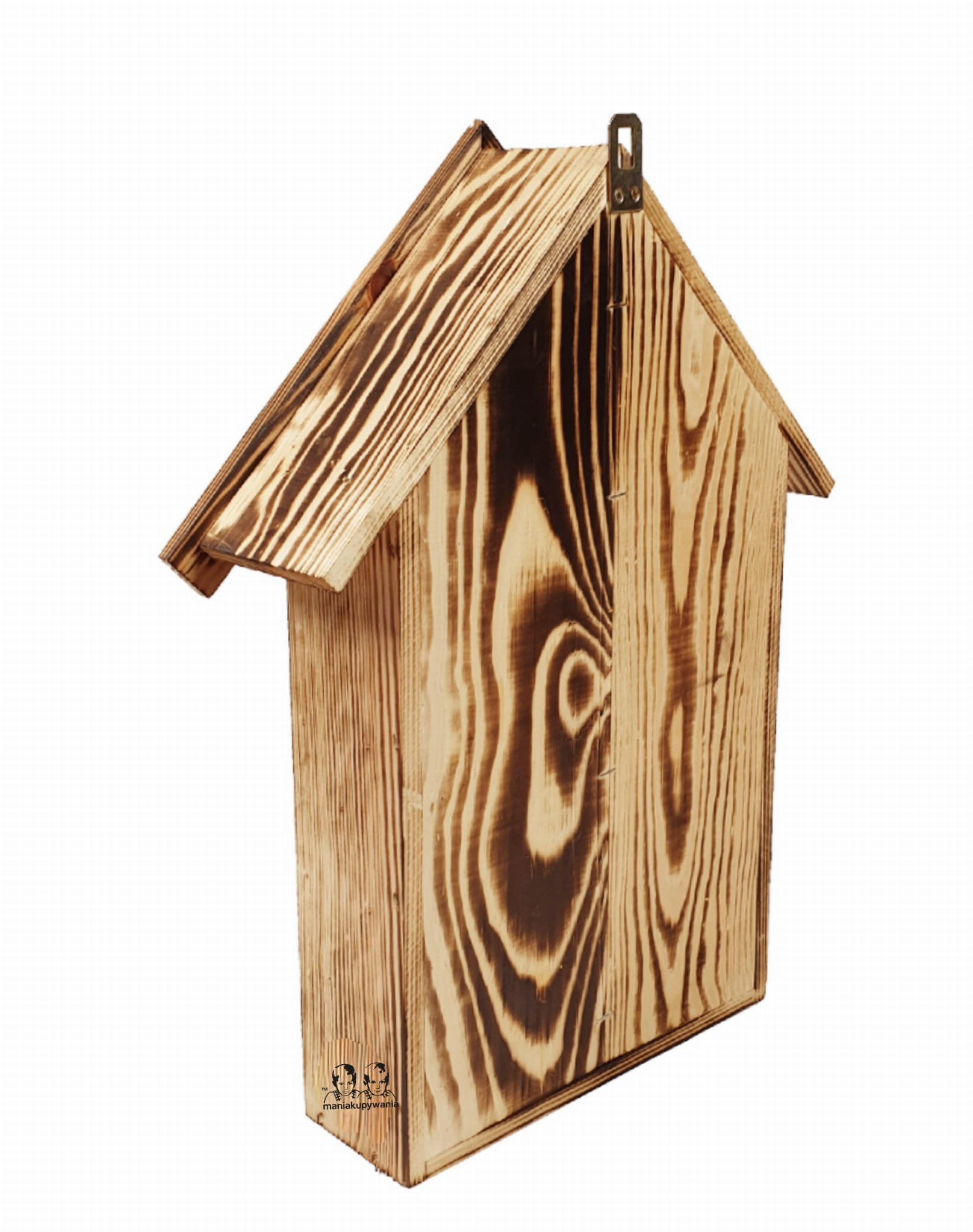 - Posiada zawieszkę dzięki której, domek można umieścić na drzewie, ścianie altanki, domu lub bloku