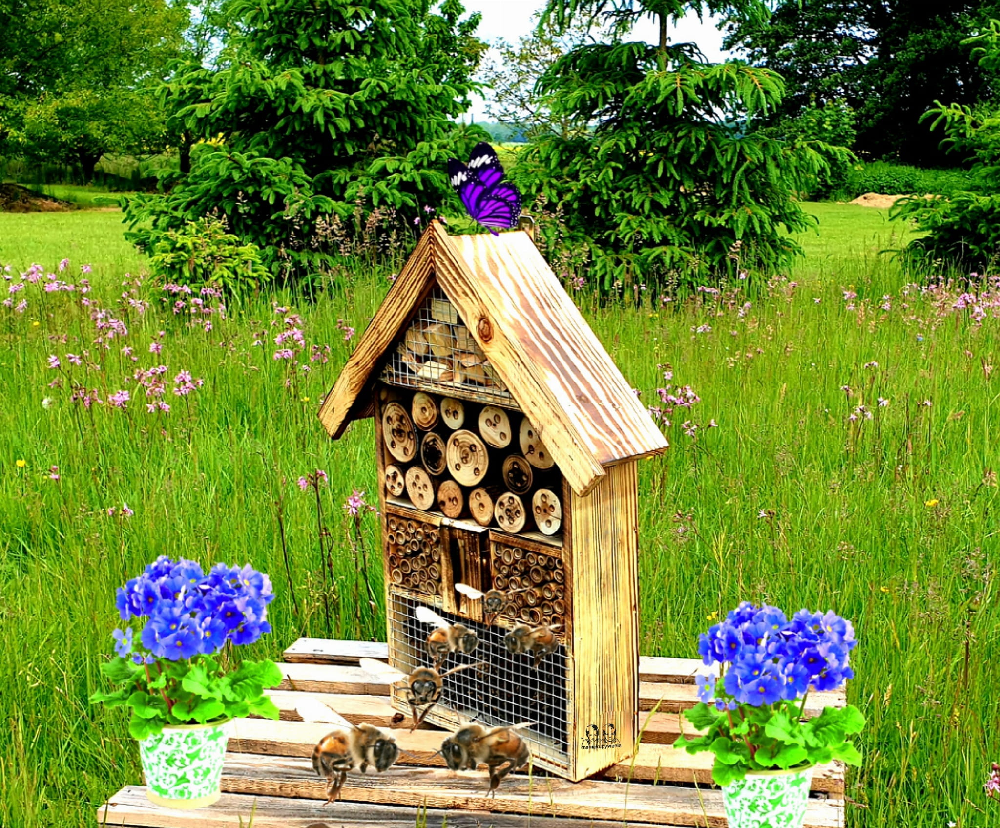 Często nie mamy na tyle metrów kwadratowych, aby pozwolić sobie na taki ekologiczny sposób zagospodarowania terenu. Wtedy z pomocą owadom przychodzą domki dla owadów. Umieszczone w pobliżu kwitnących kwiatów, krzewów czy drzew, będą imitować naturalne warunki życia naszych ogrodowych sprzymierzeńców.