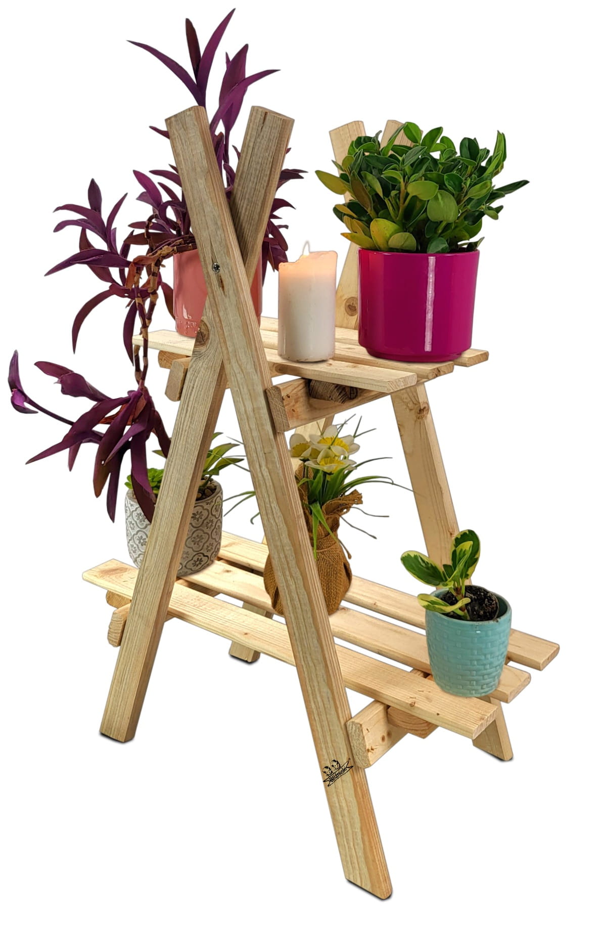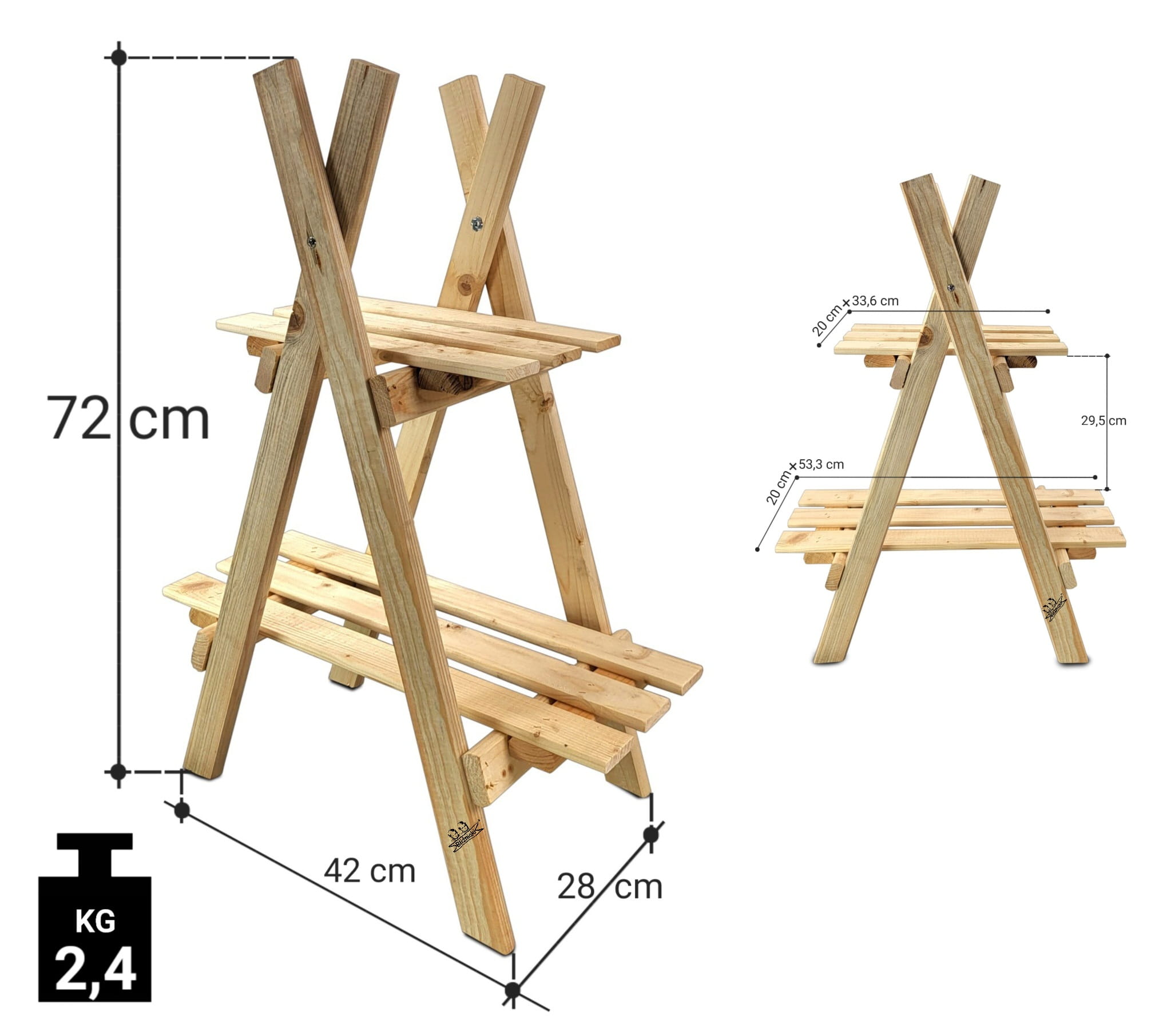 Regał został wykonany z solidnego drewna sosnowego, w kolorze NATURALNYM. To bardzo praktyczny i stylowy element wyposażenia nowoczesnego domu pozwalający zadbać o należny porządek w pomieszczeniach jak i na zewnątrz. Nasz stojak może również pełnić rolę ozdobnego kwietnika do ustawienia na nim doniczek z Twoimi ulubionymi kwiatami na tarasie lub balkonie.