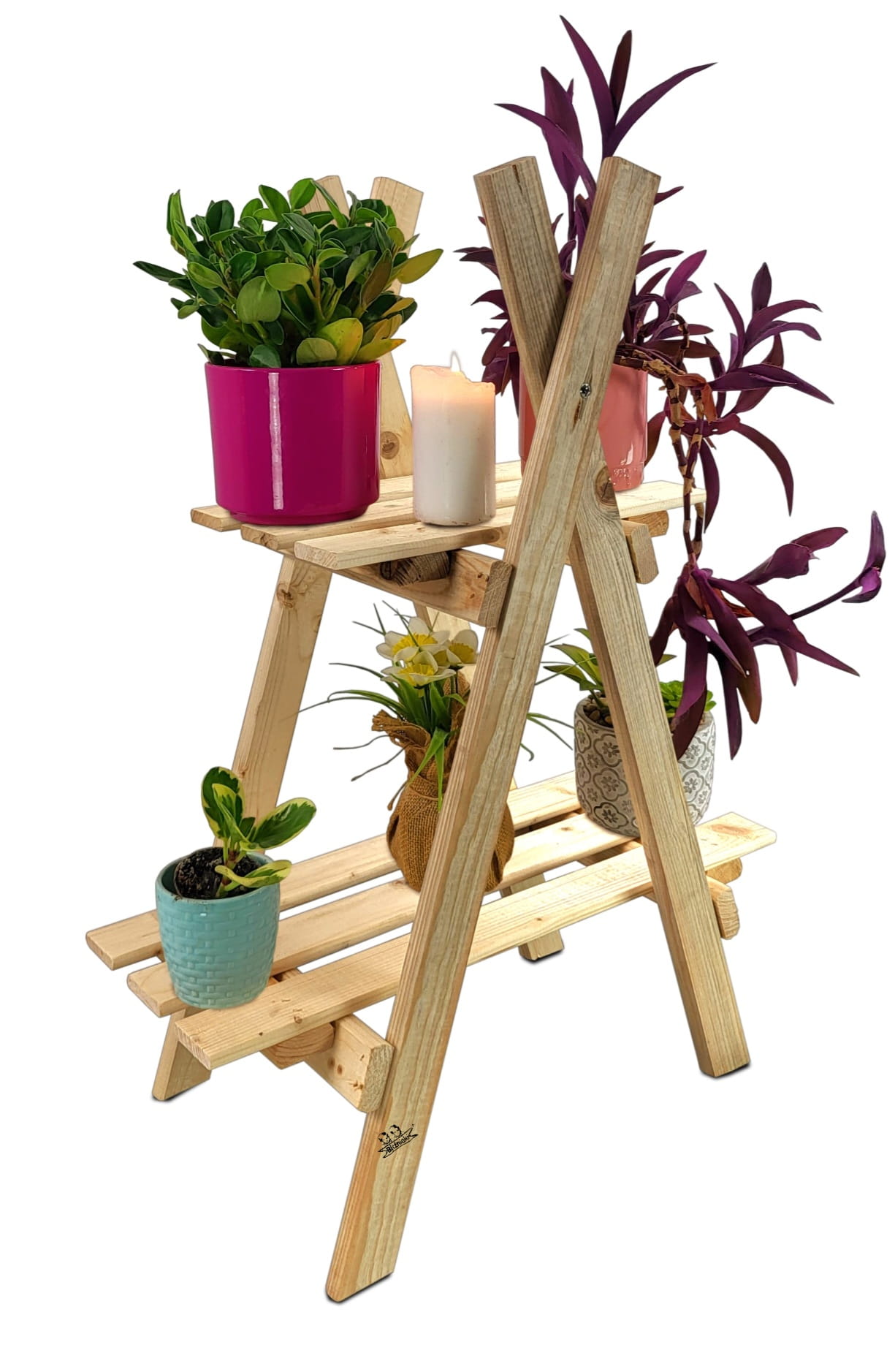 DREWNIANY NATURALNY ROZKŁADANY STOJAK,REGAŁ Z PÓŁKAMI NA KWIATY W DONICZKACH NA ZIOŁA , WIELOFUNKCYJNY KWDR5 N