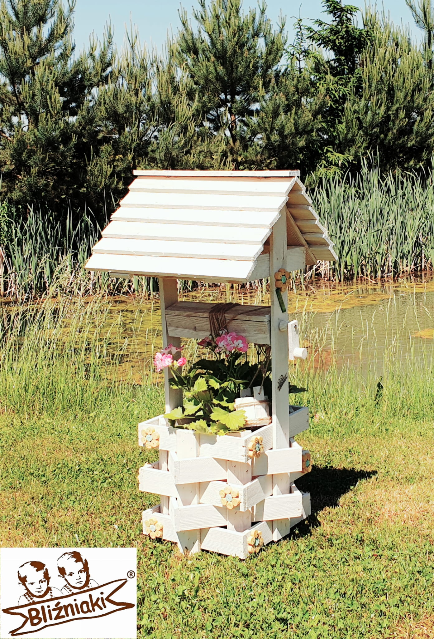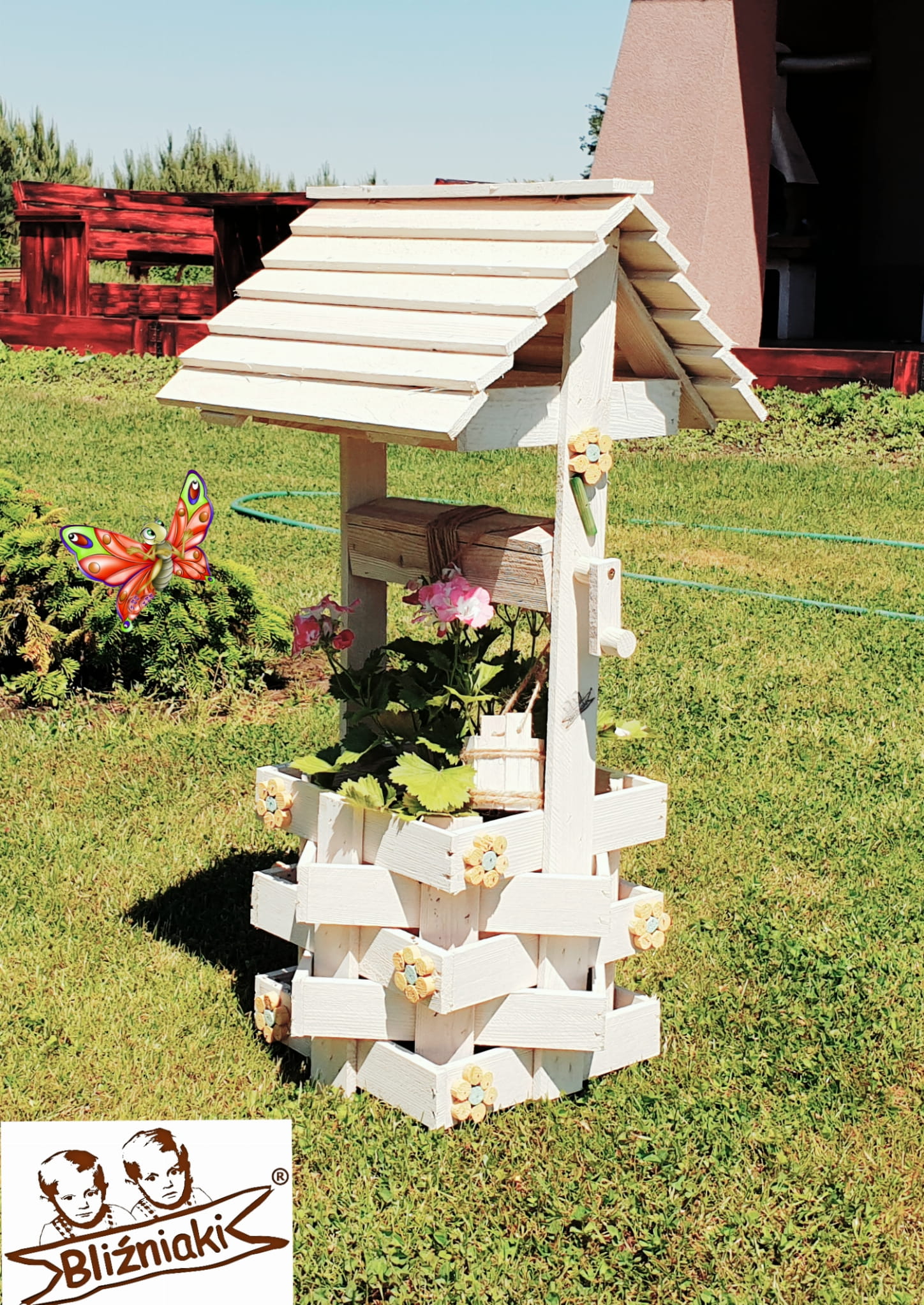 - Studnia została wzbogacona o drewnianą donicę, w której można dodatkowo storzyć miniogródek