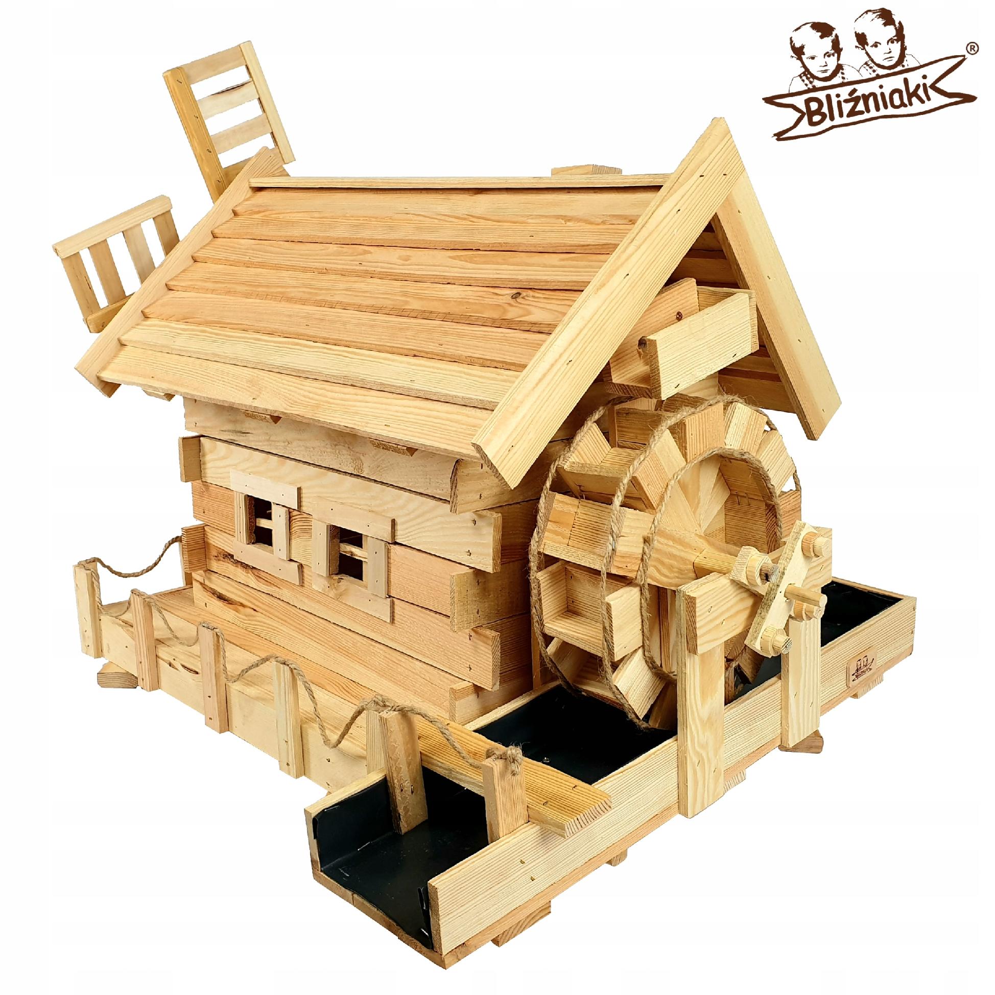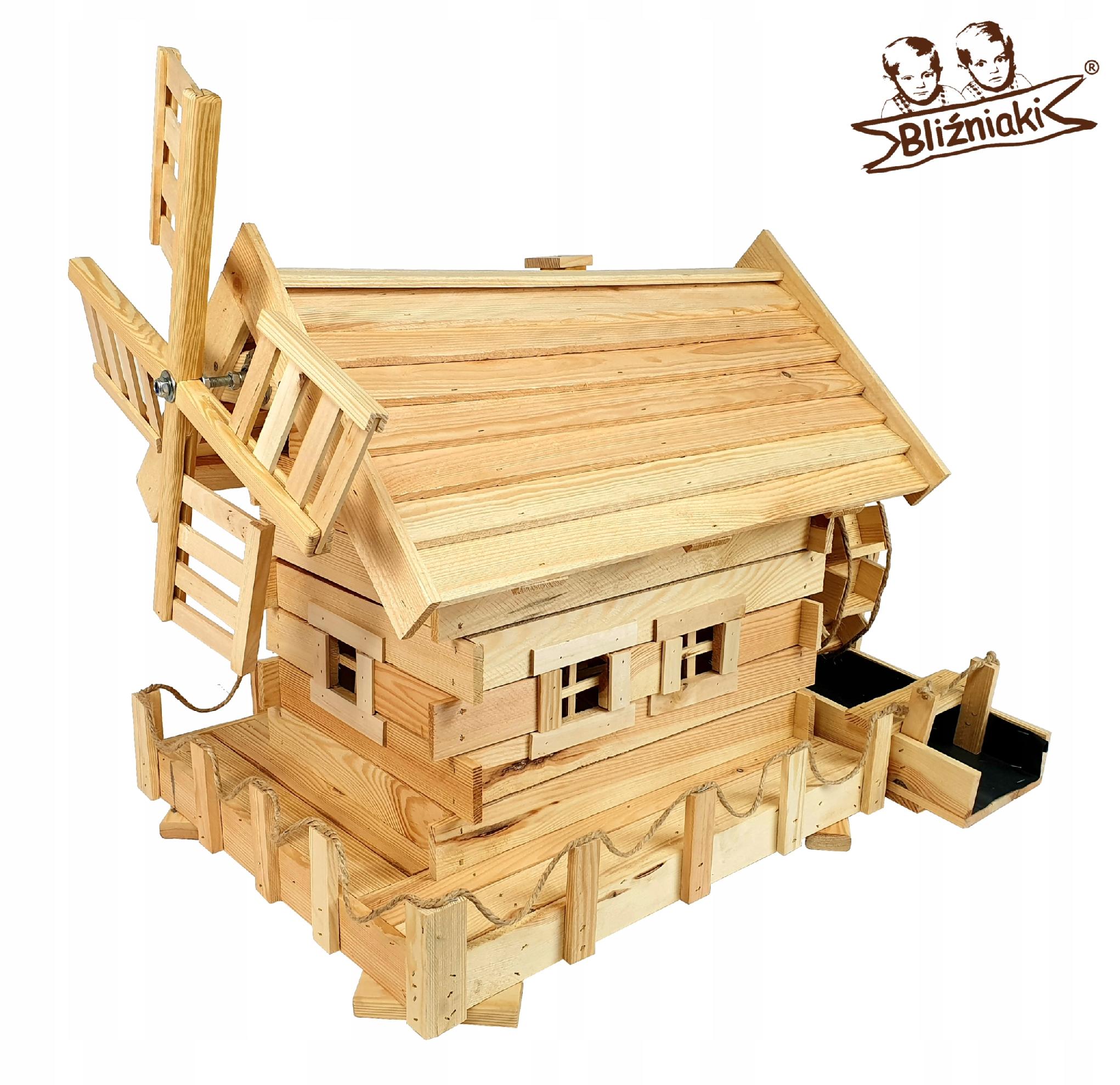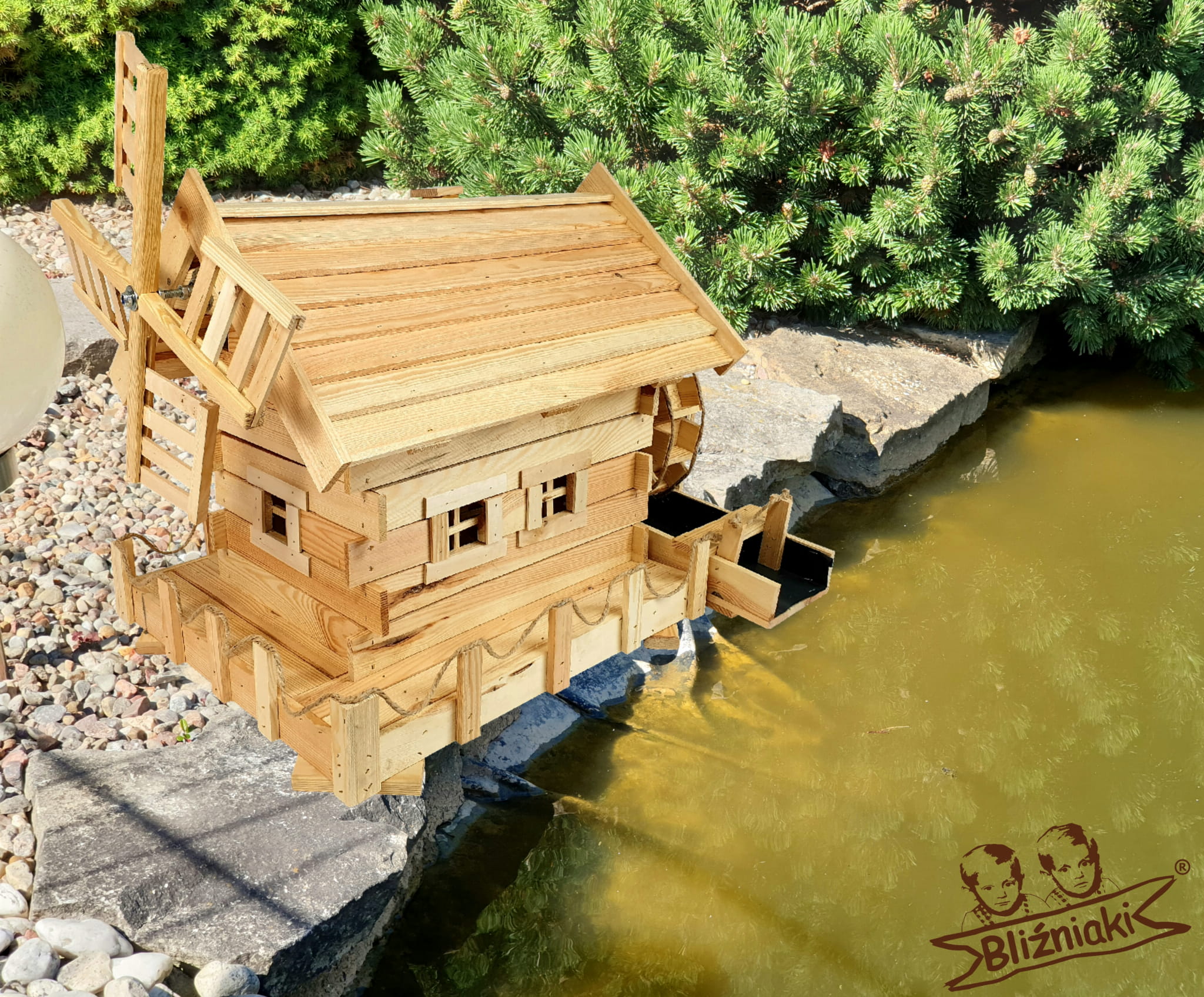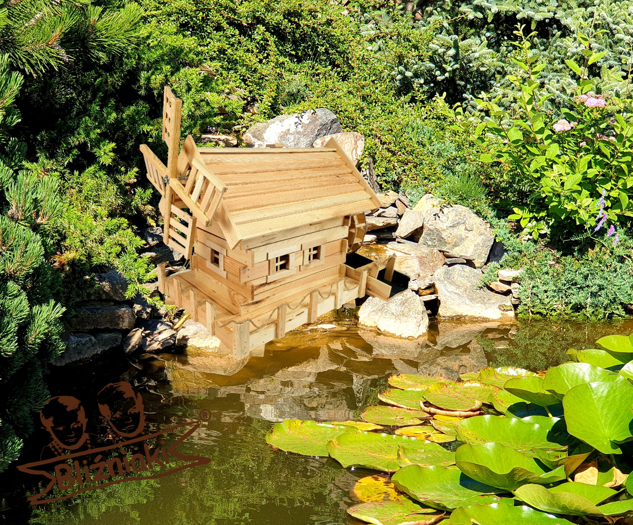 DREWNIANY MŁYN WODNY - DEKORACYJNY WIATRAK OGRODOWY